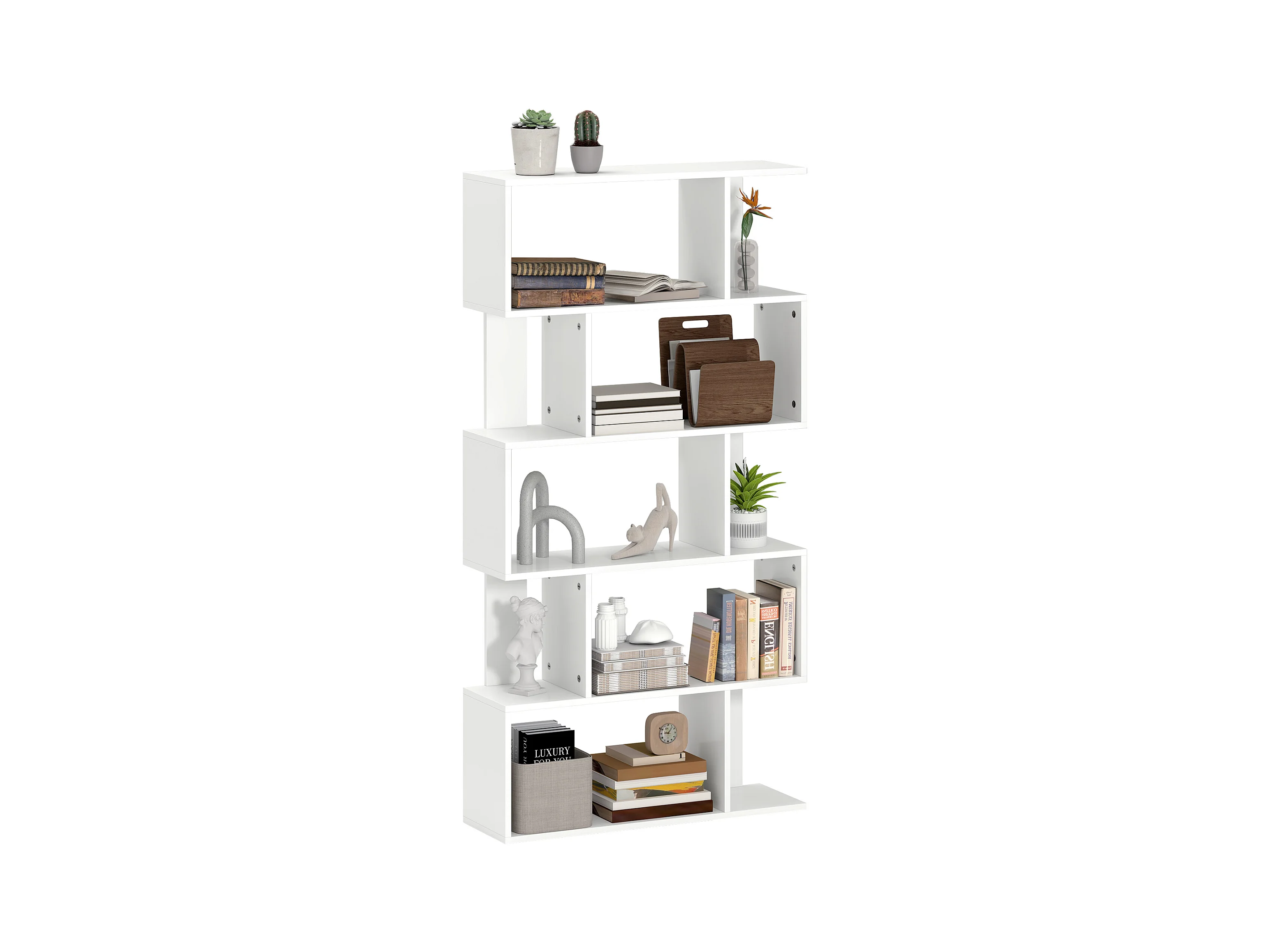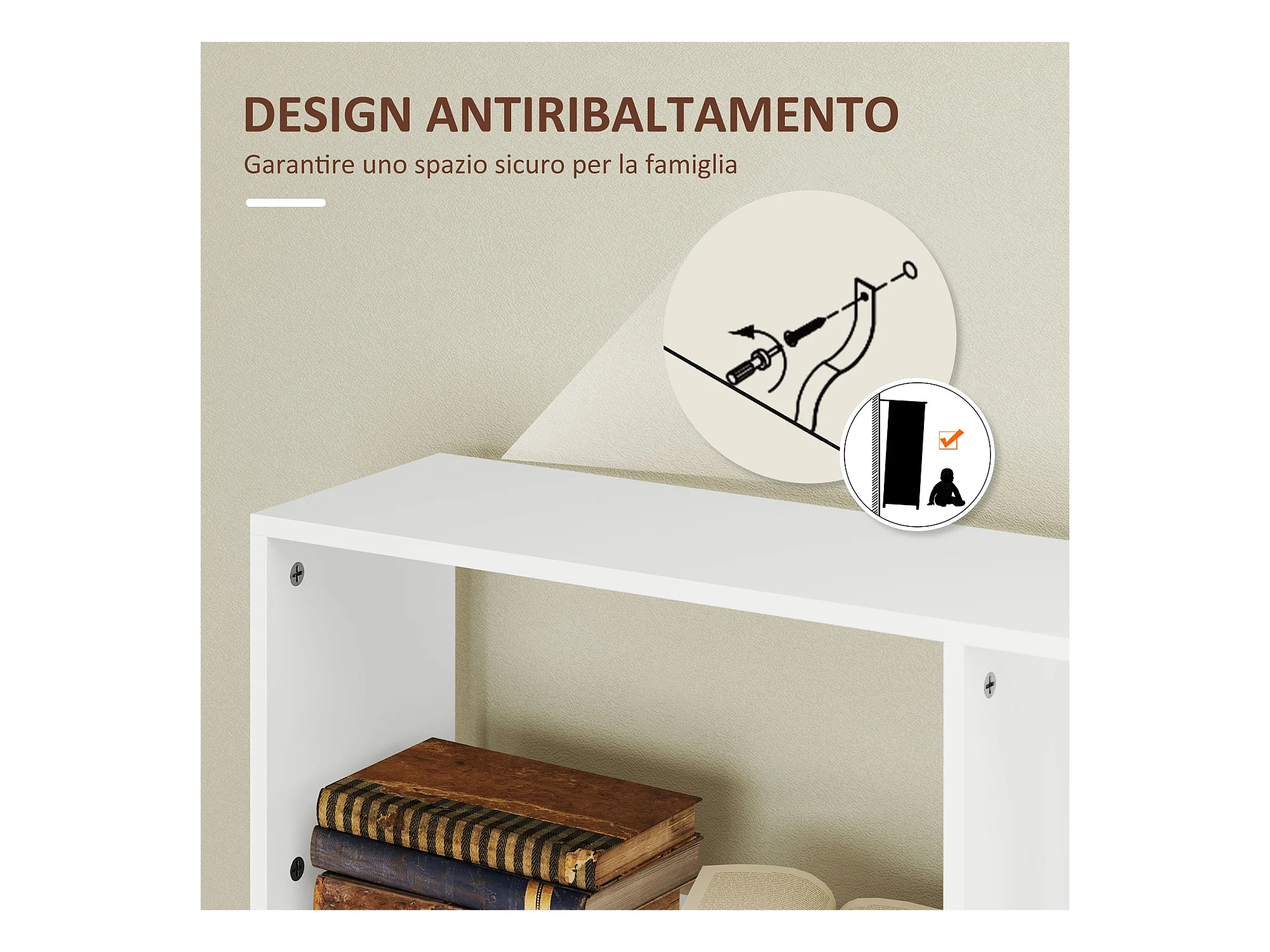 Mobile libreria a 5 ripiani con 3 scaffali flessibili in legno bianco