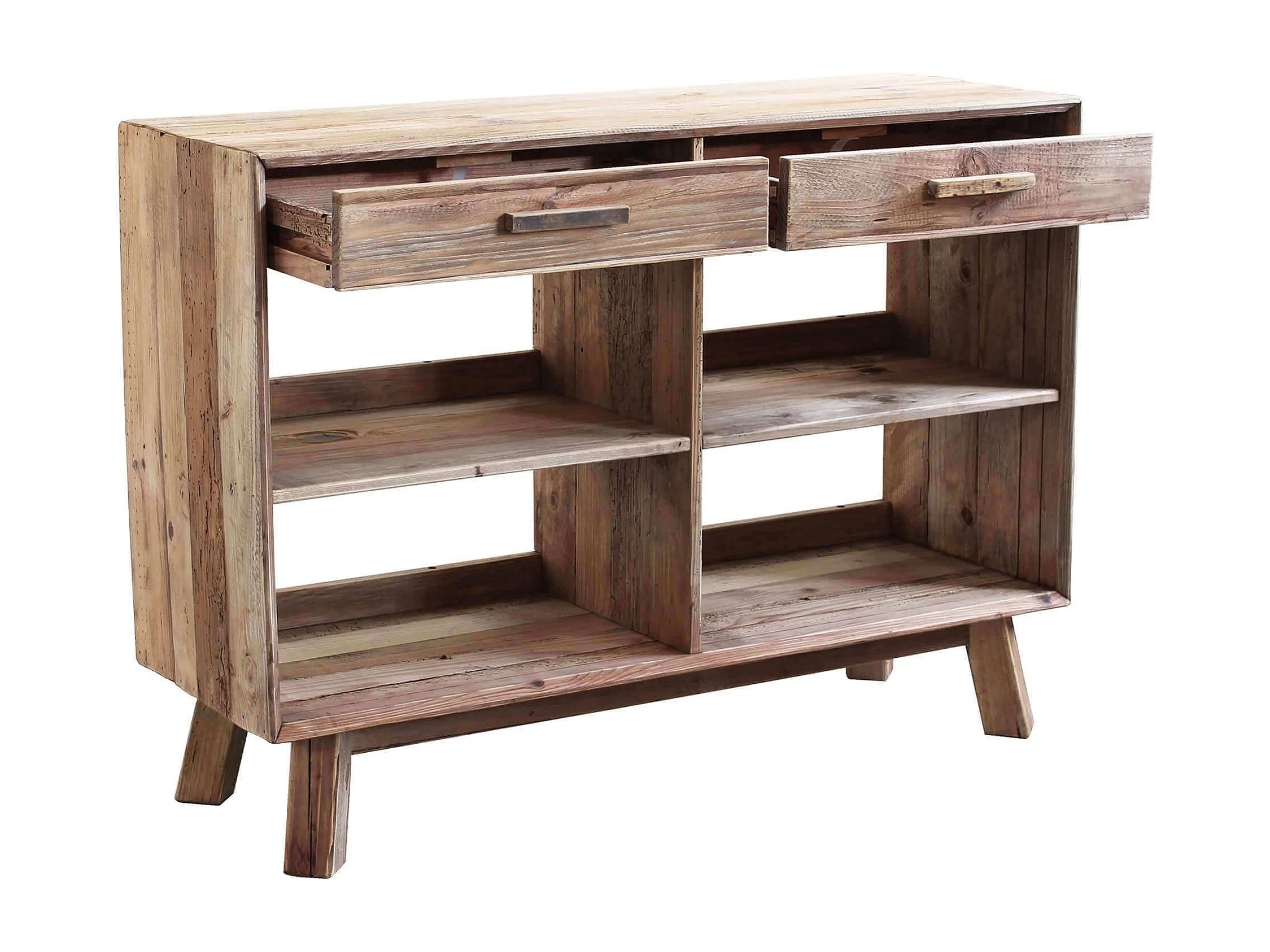 MilaniHome.it - madia 2 ante 3 cassetti di design moderno in legno di pino riciclato massiccio stile moderno vintagedi coloreMarrone