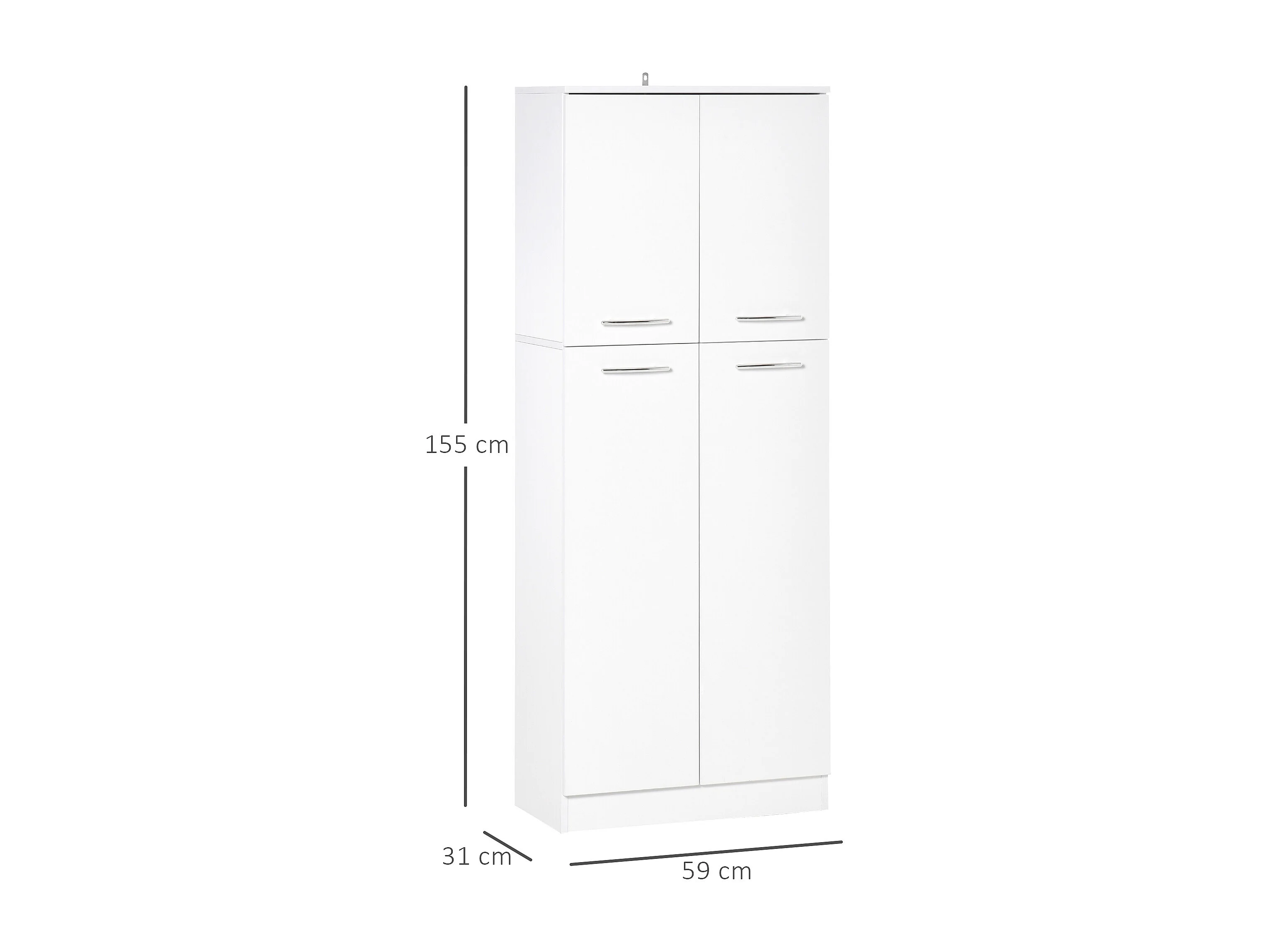 Mobile dispensa cucina con armadietti e cassetto in legno bianco