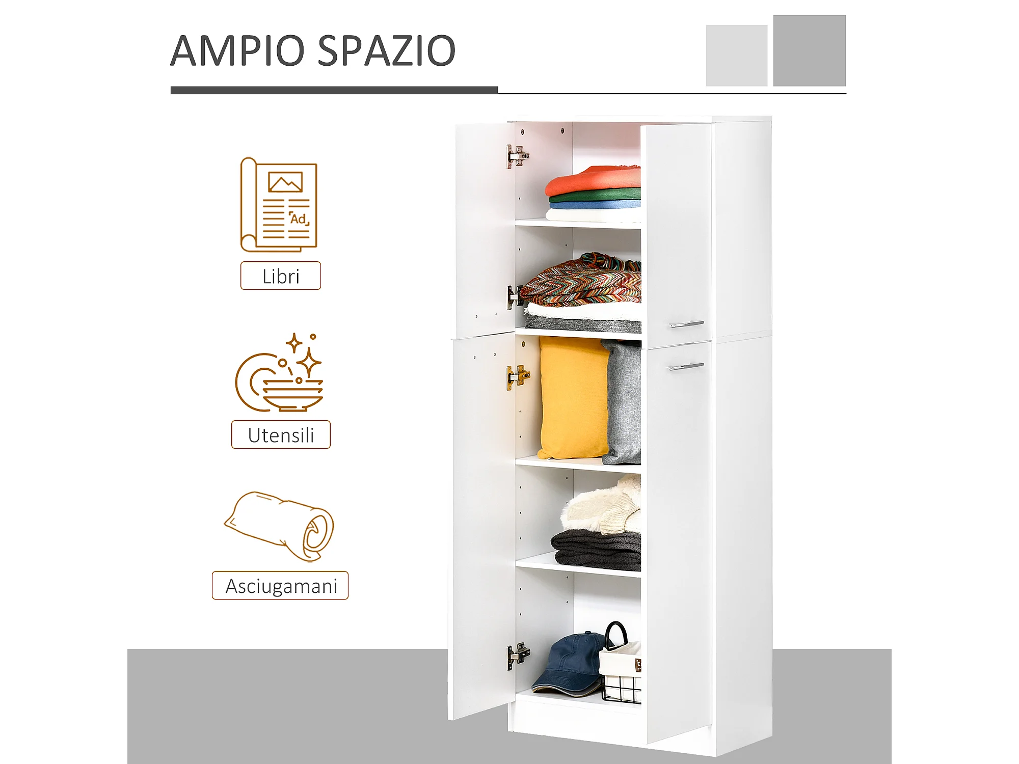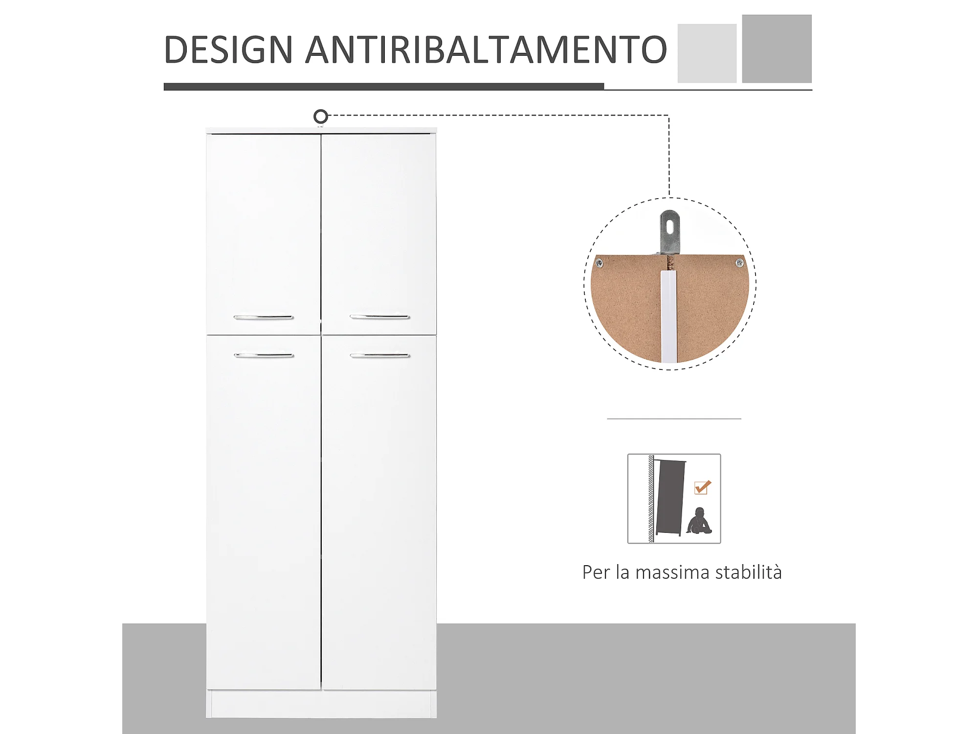 Mobile dispensa con 2 ripiani aperti e 2 armadietti in mdf bianco