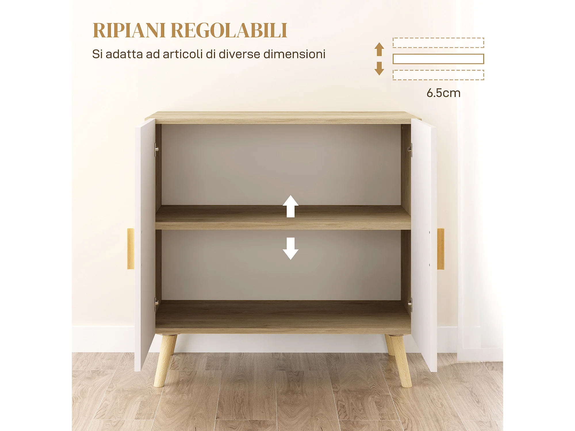 Credenza cucina a 2 ante con ripiano regolabile in legno bianco