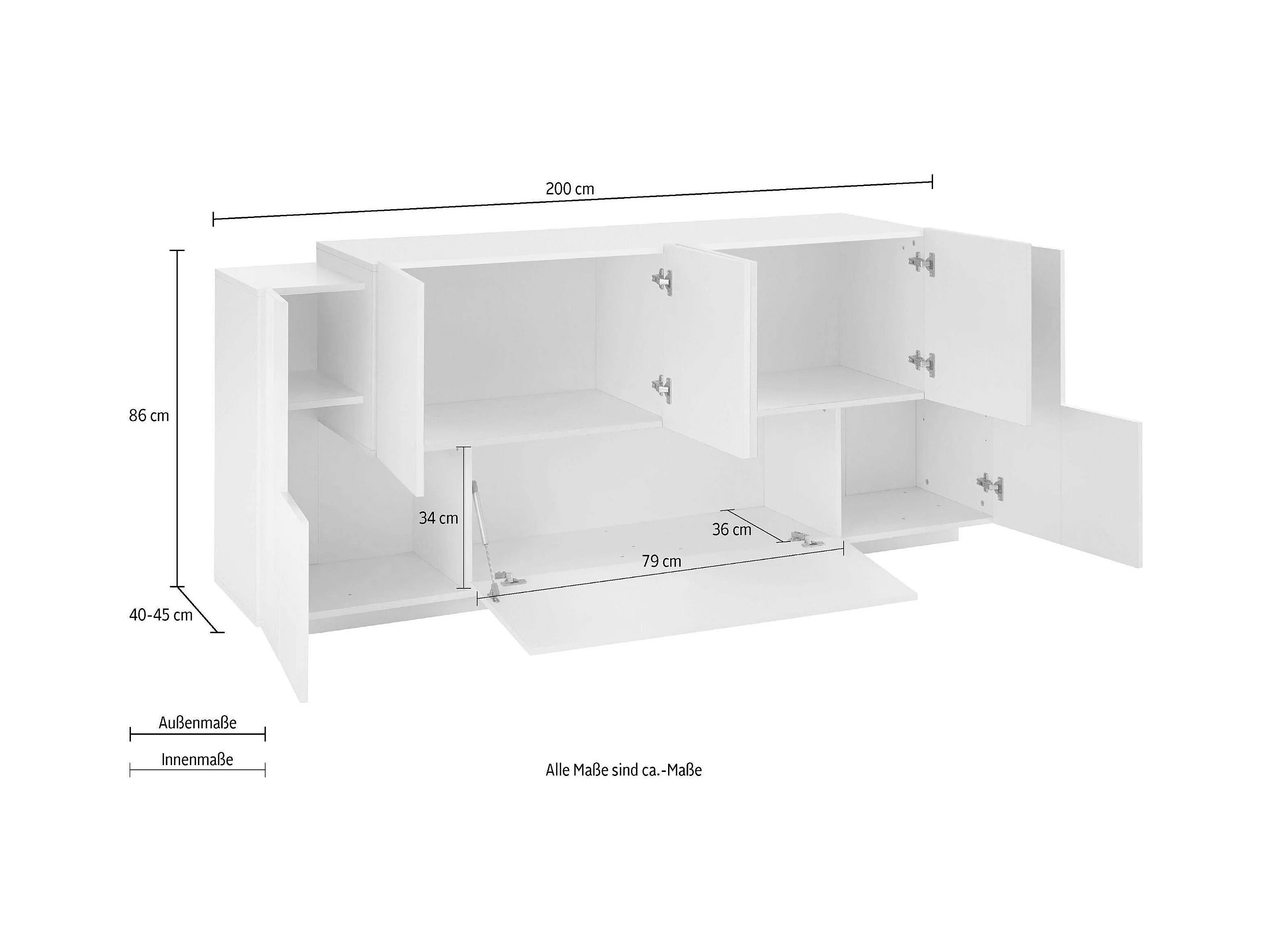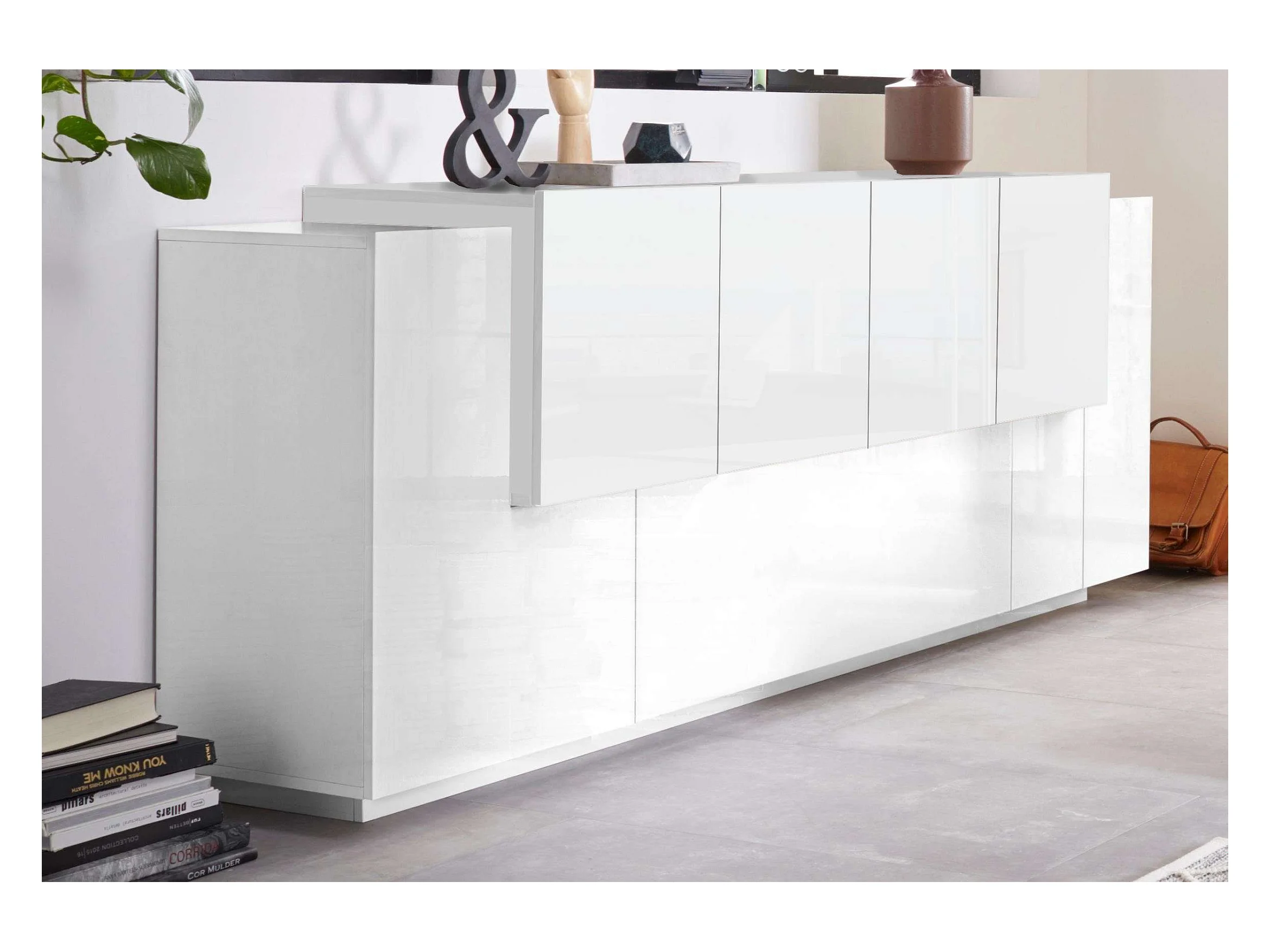 Credenza soggiorno madia con anta e 3 cassetti bianco lucido Metis Three