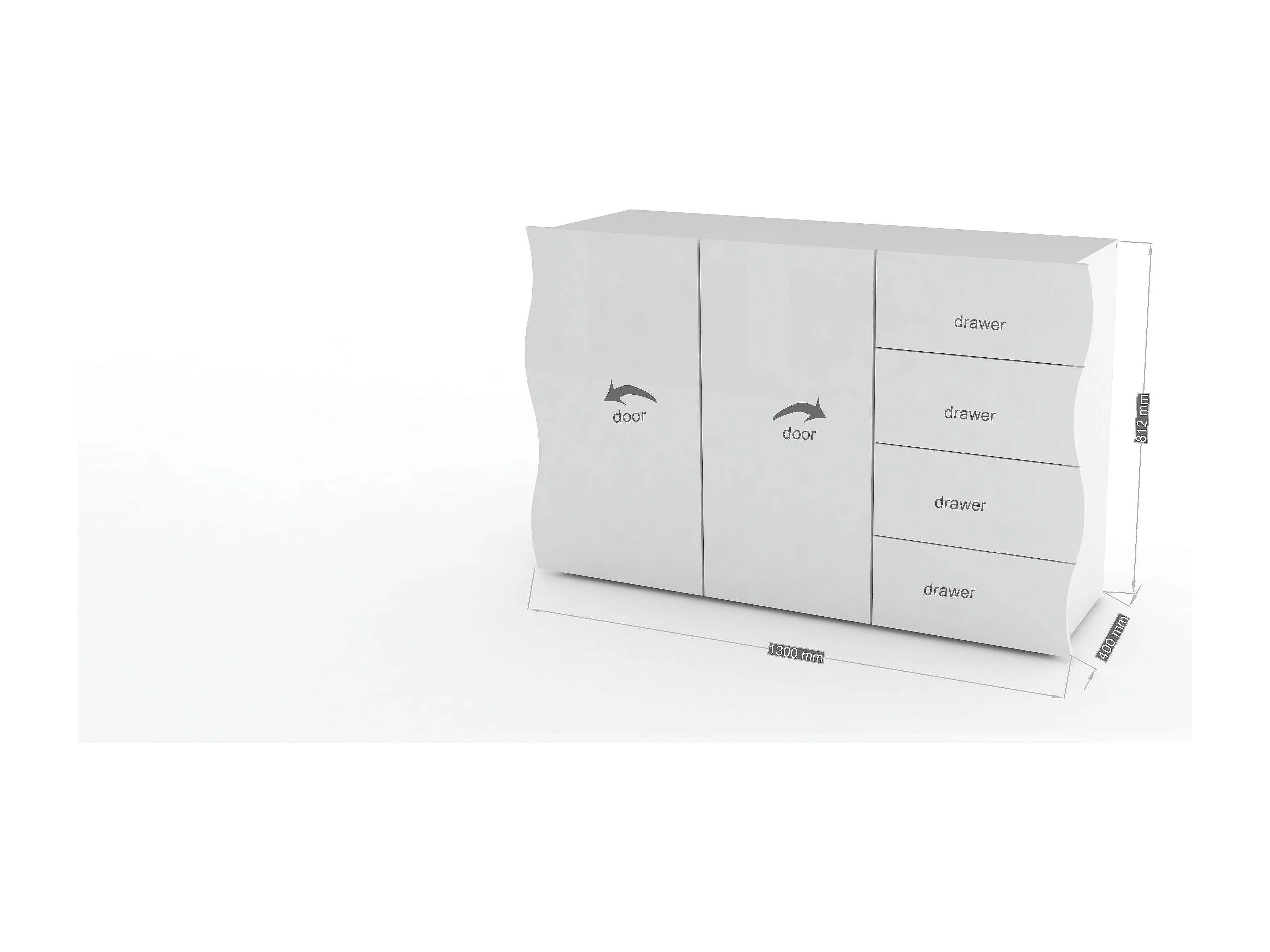 Credenza bianca con 3 cassetti e 4 ante, 160 cm - Stile moderno con ripiani regolabili - Ideale per sala da pranzo, cucina o soggiorno