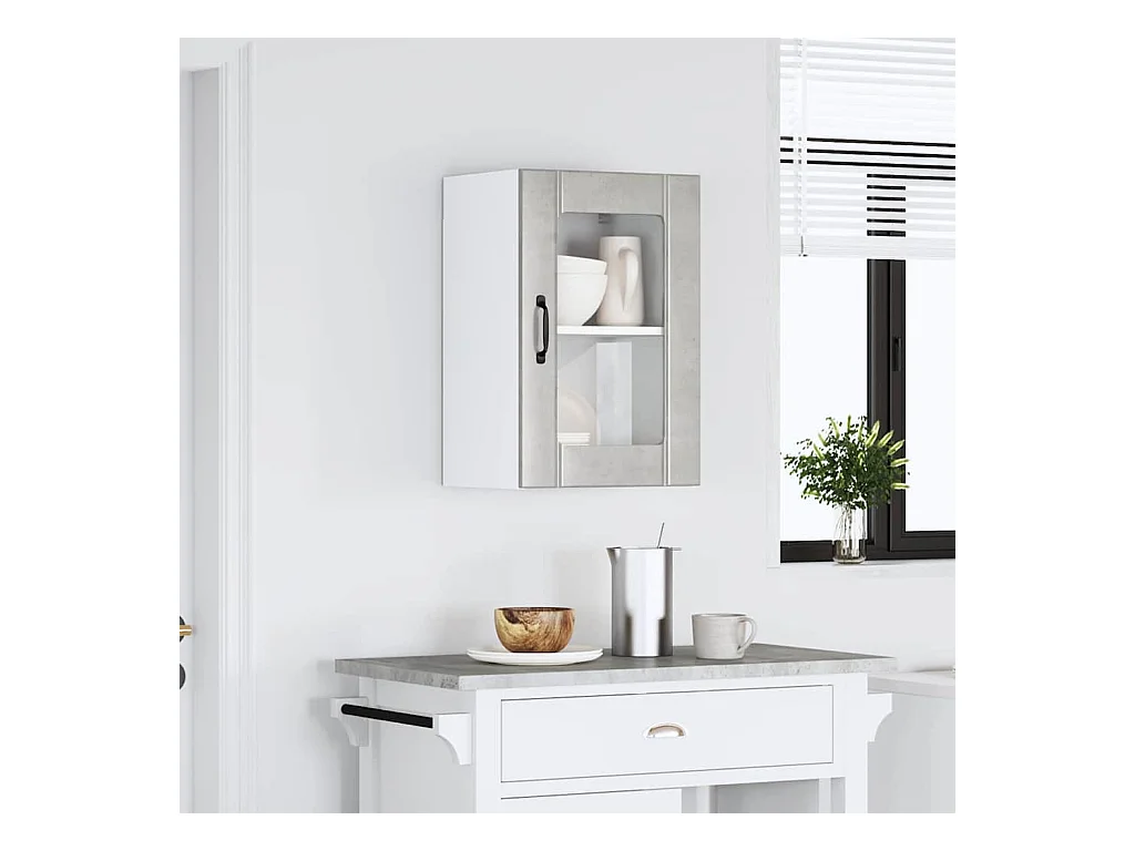 Mobile pensile da cucina grigio cemento con anta in vetro