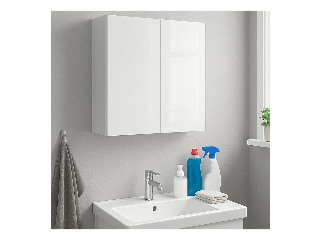 Pensile Con Ante Mobile Da Parete Da Bagno Mobile Porta Medicinali Elegante Armadietto Sospeso Per Il Bagno Bianco 60x30x60cm BZR84-W