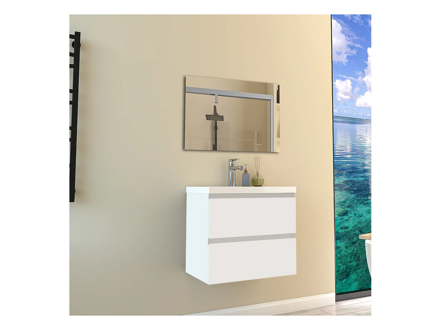 Mobile per bagno sospeso con lavabo da incasso 60 cm bianco