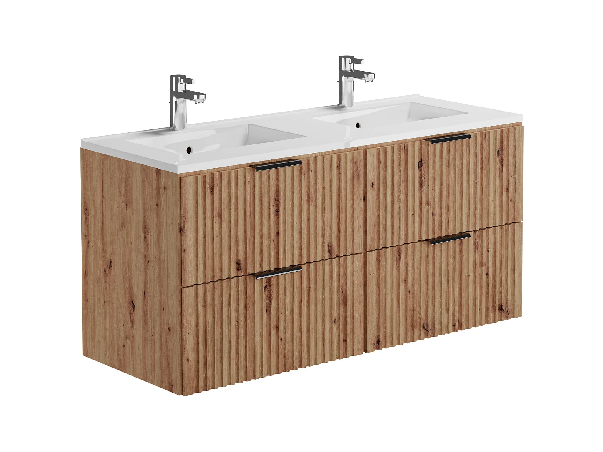 Mobile per bagno sospeso con scanalature e lavabo da incasso 120 cm Naturale chiaro - ZEVARA