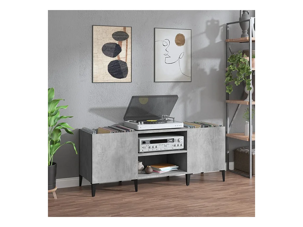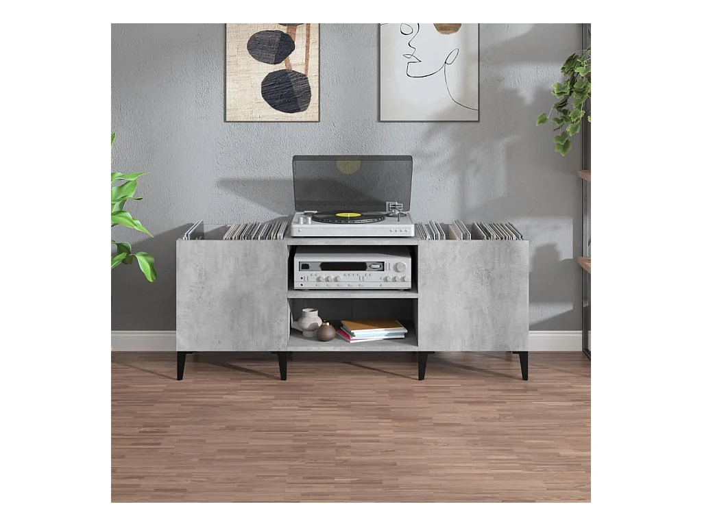 Mobile per dischi grigio cemento 121x38x48 cm in multistrato
