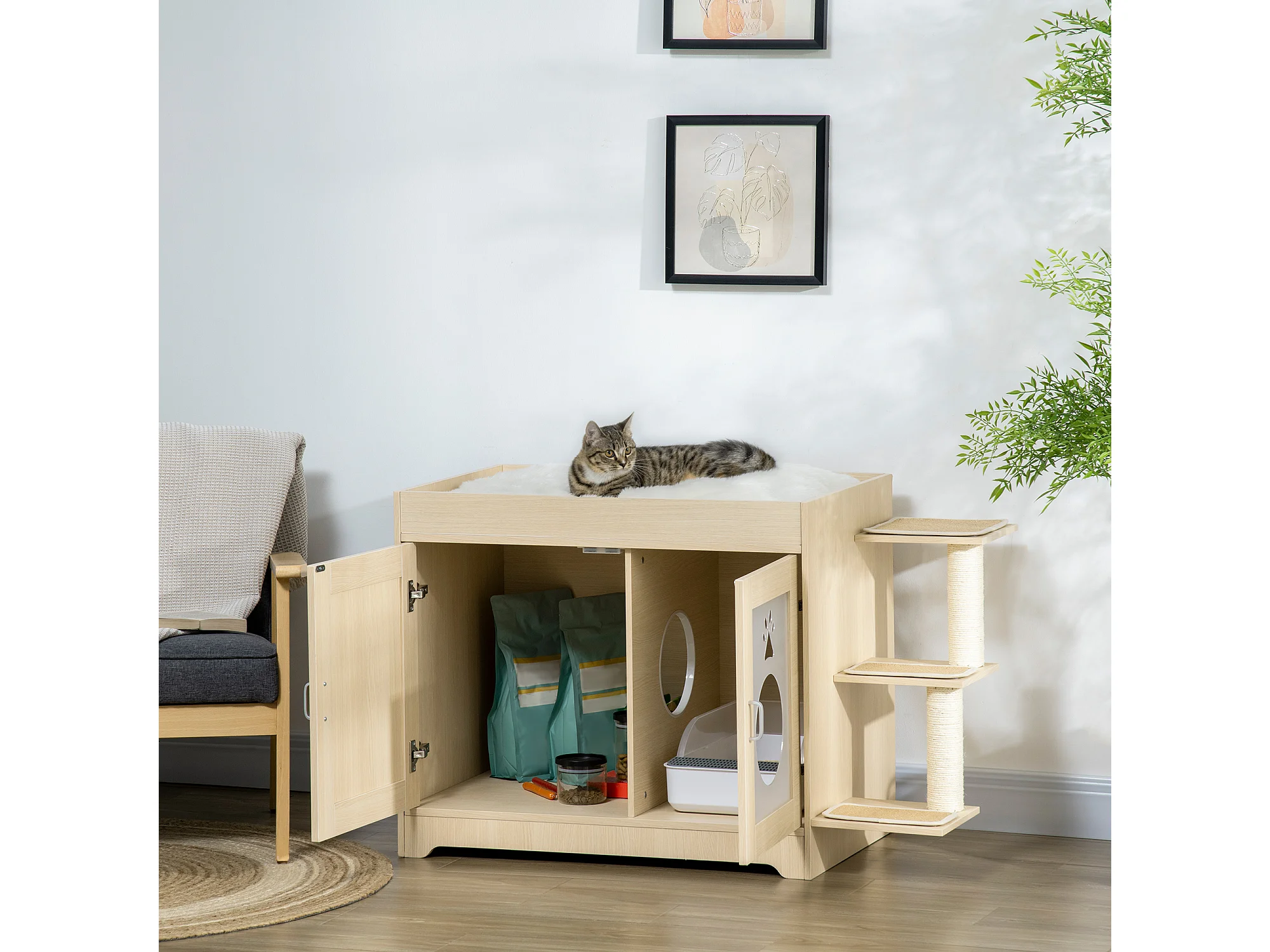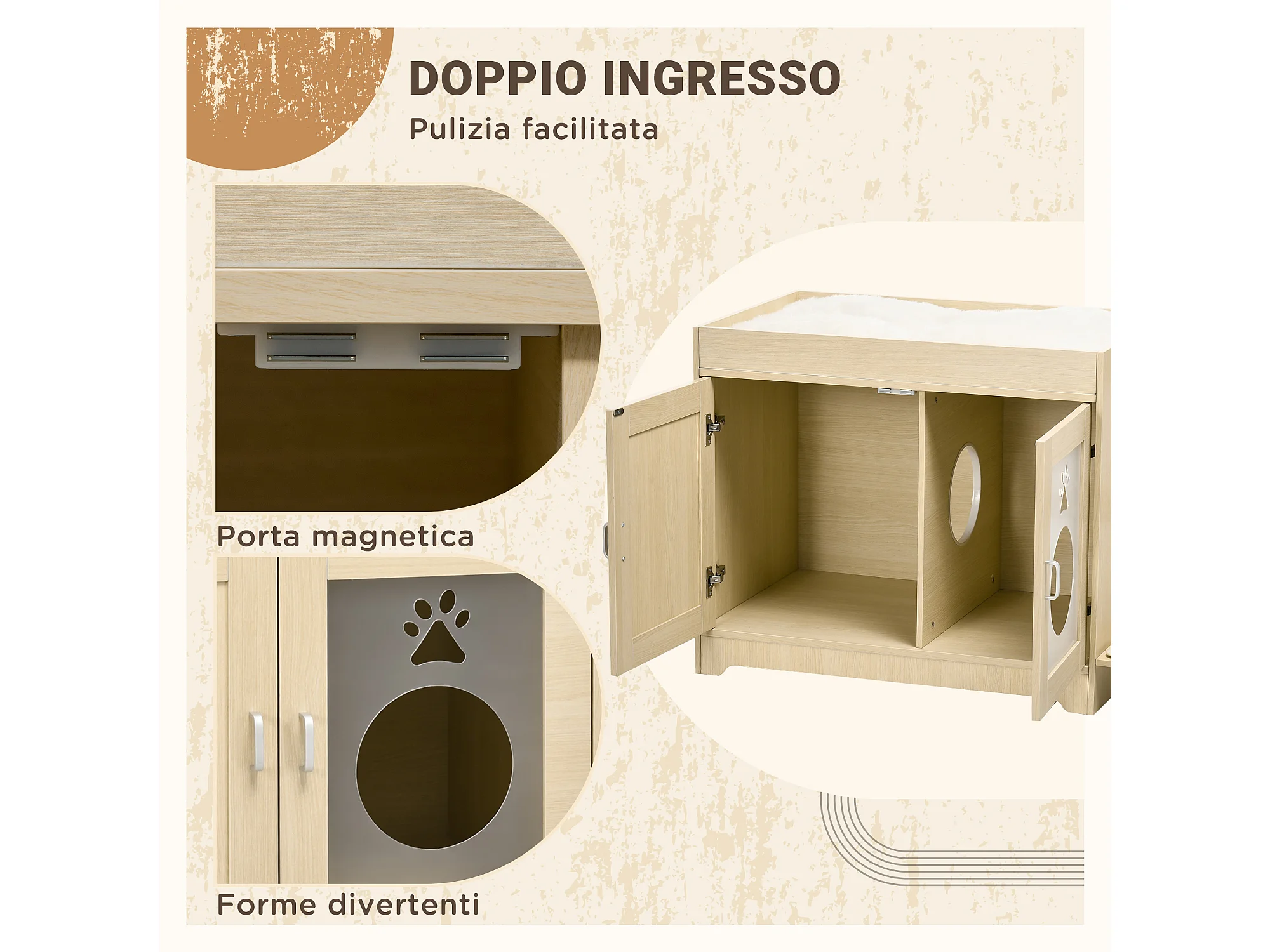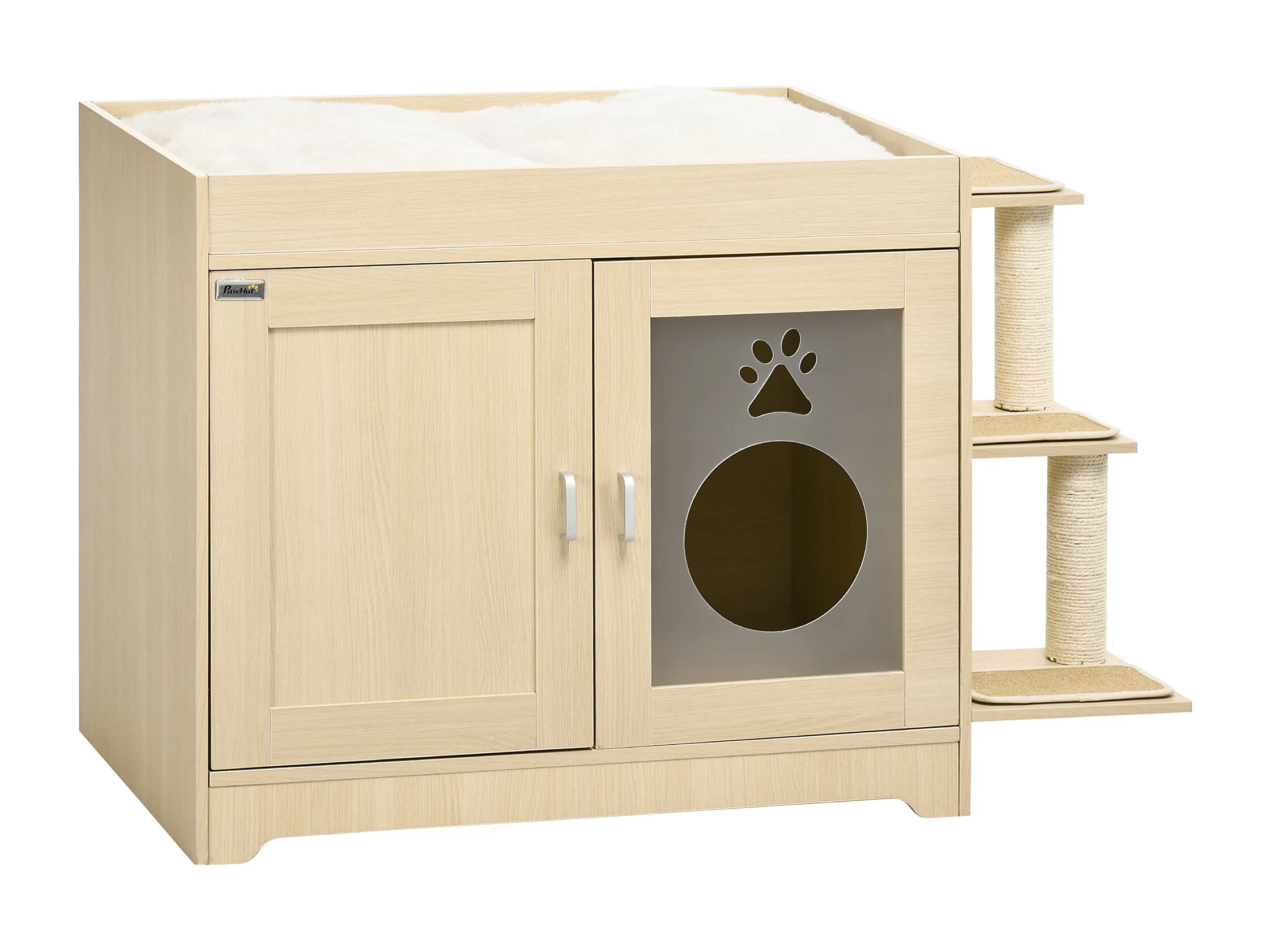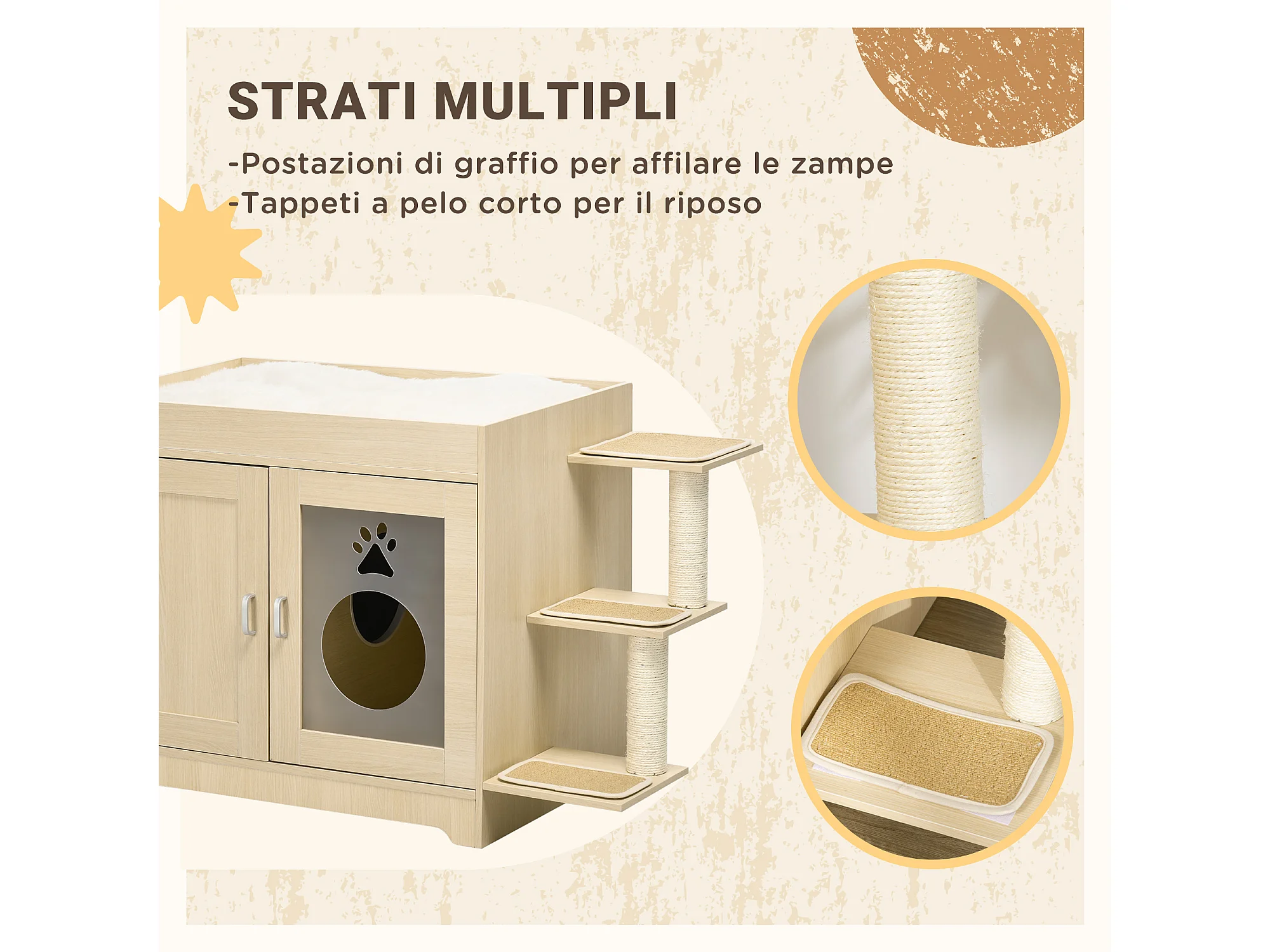 Mobile per lettiera casetta per gatti 2 in 1 con pali tiragraffi