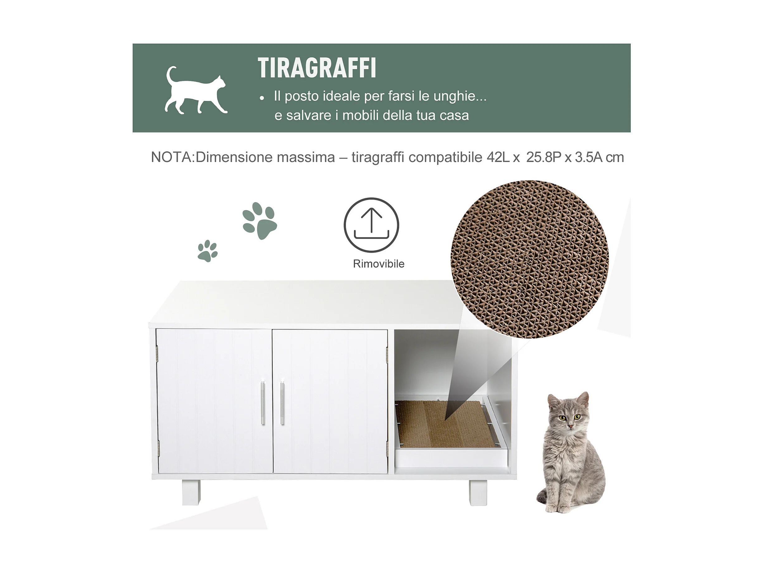 Mobile per lettiera gatti con 2 ante e apertura laterale in legno