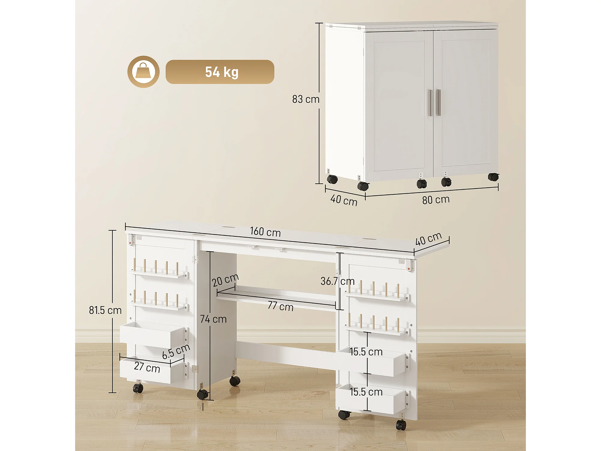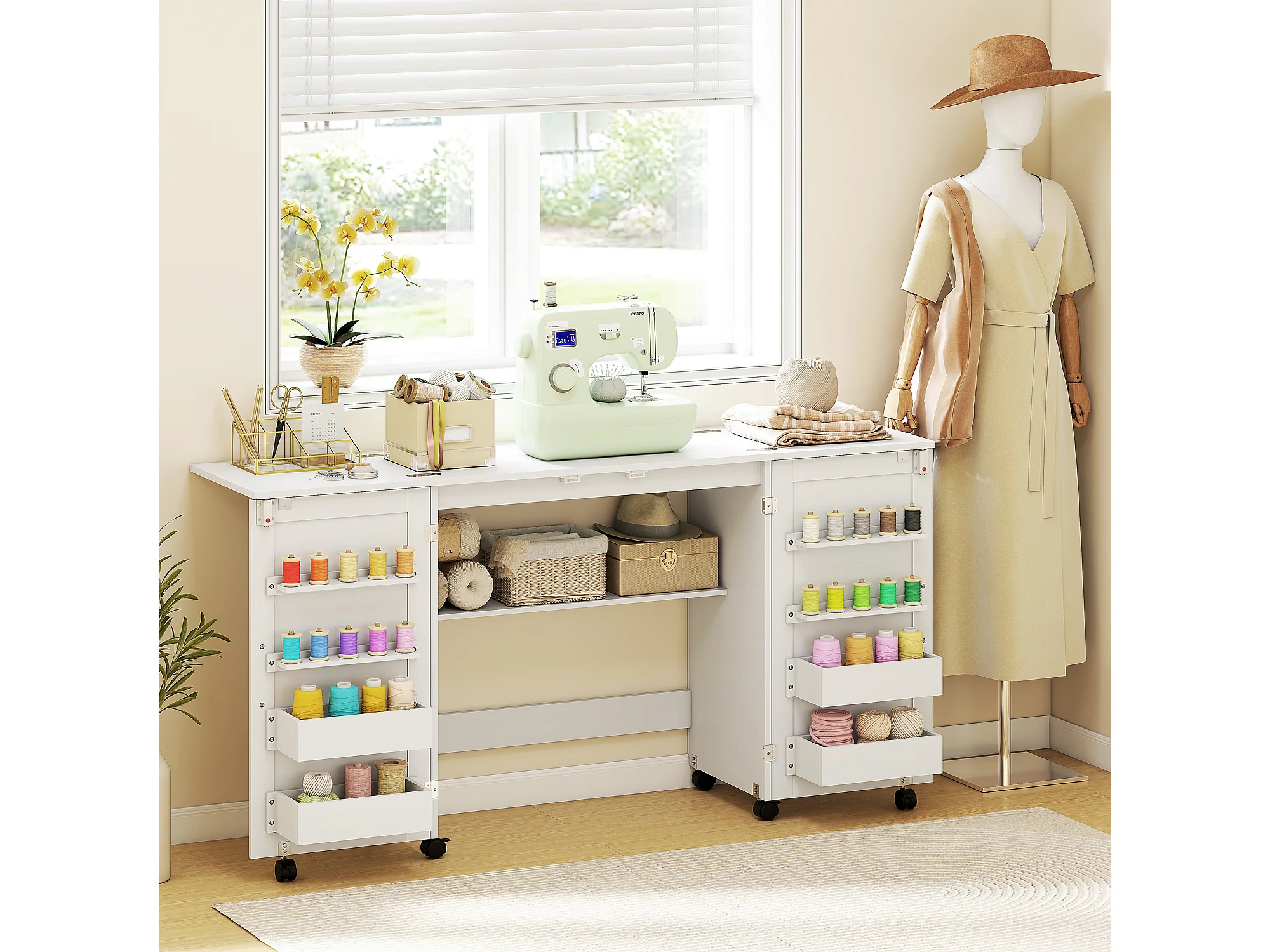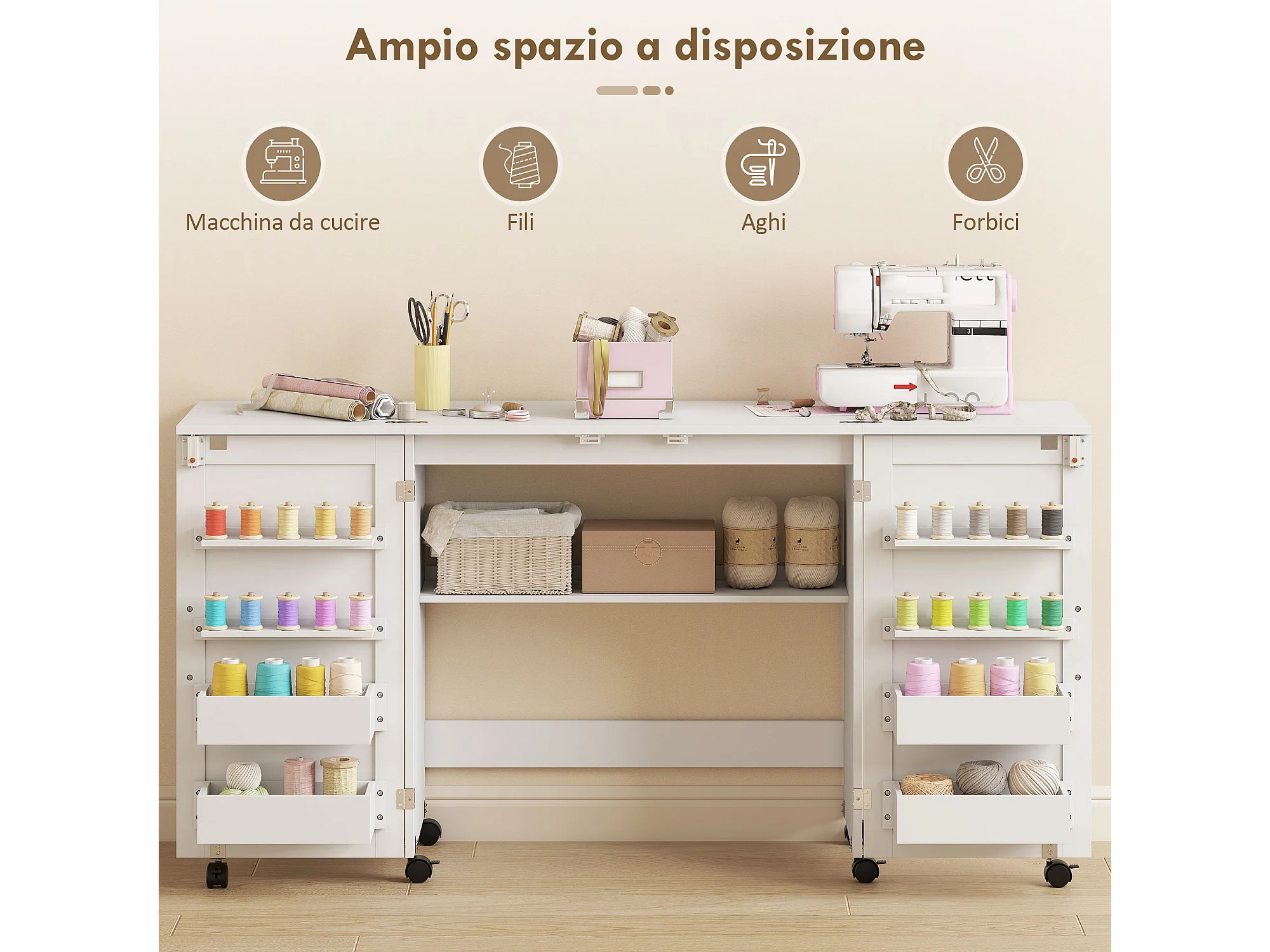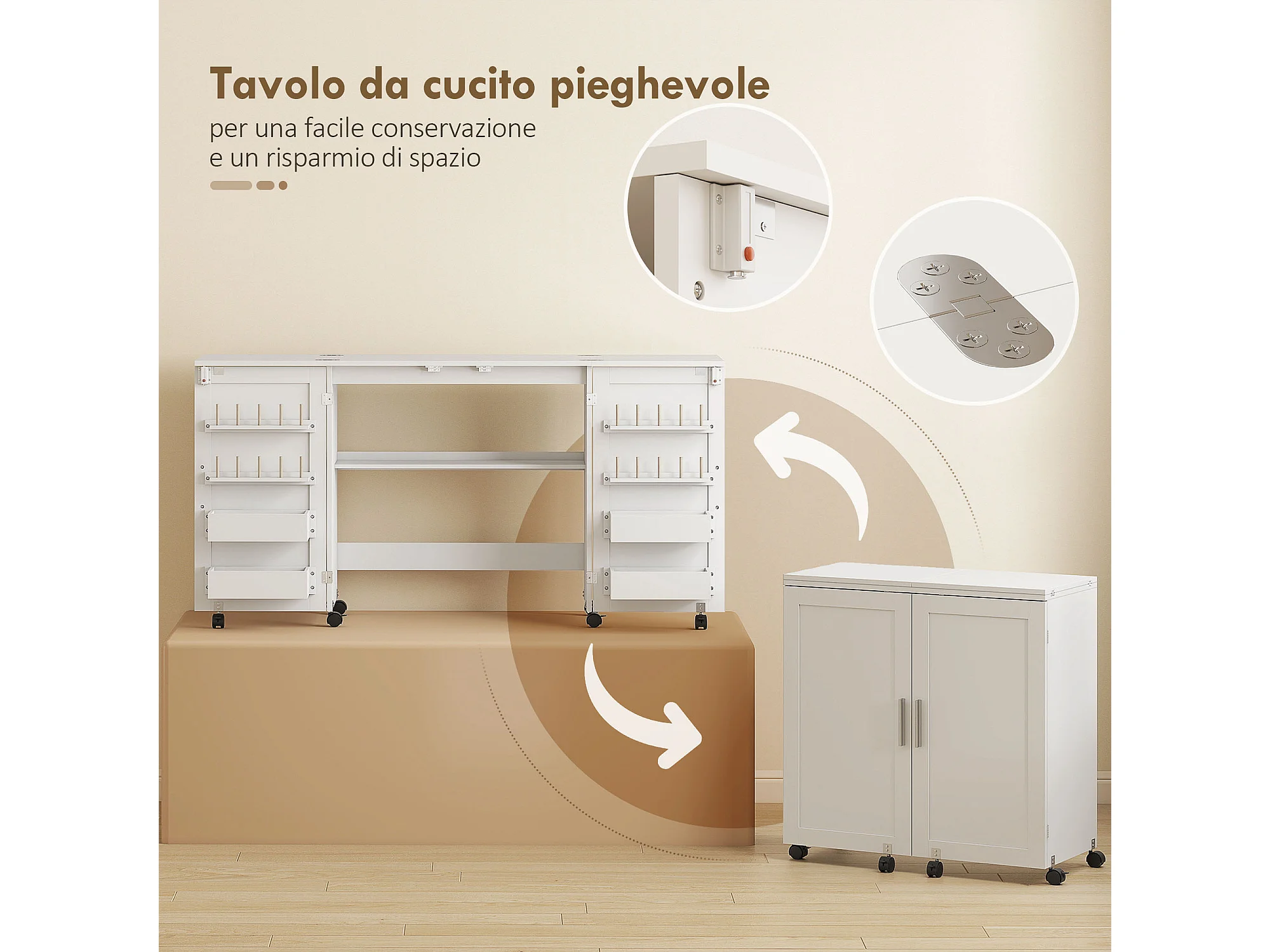 Mobile per macchina da cucire pieghevole a 2 ante magnetiche