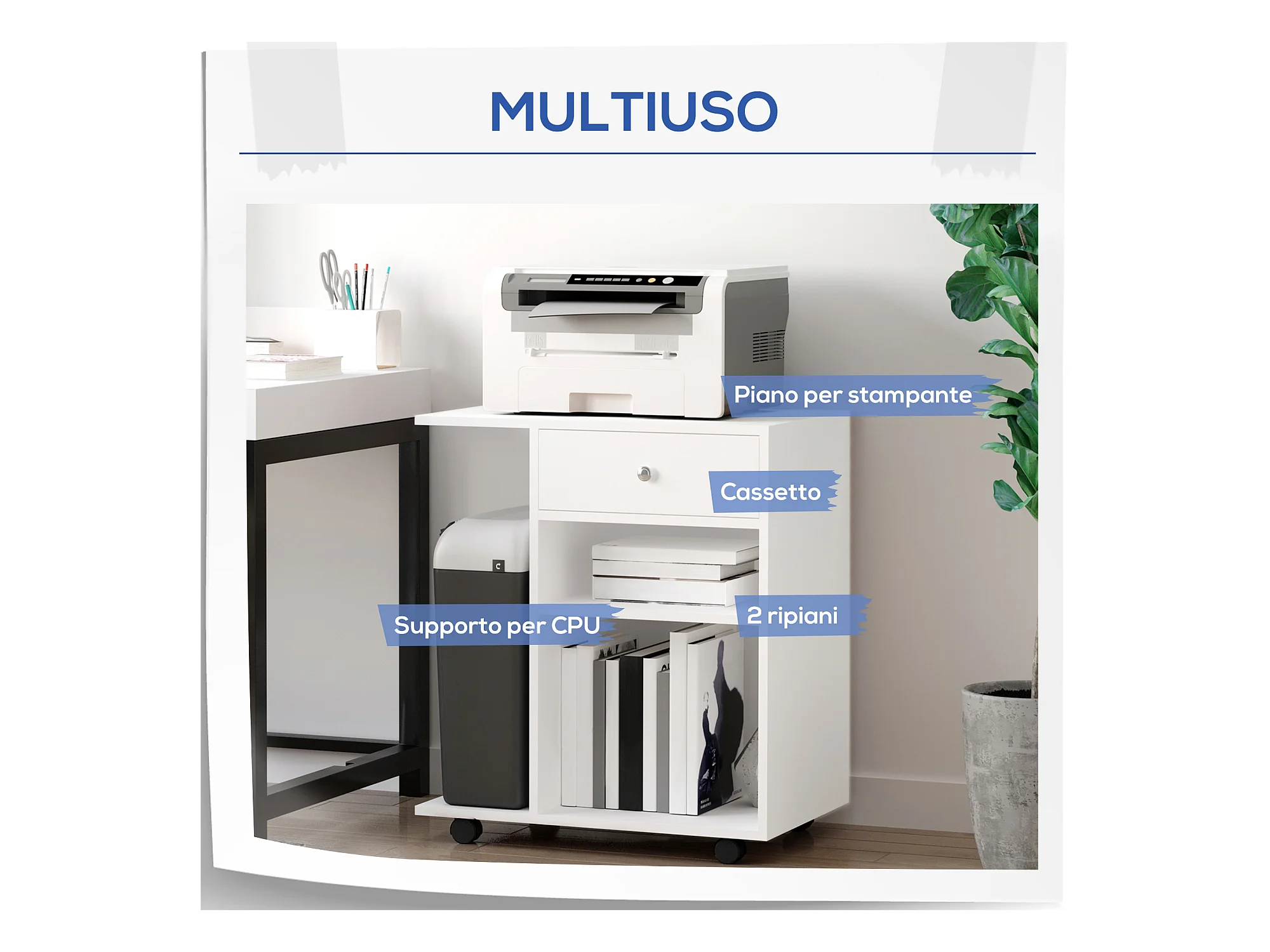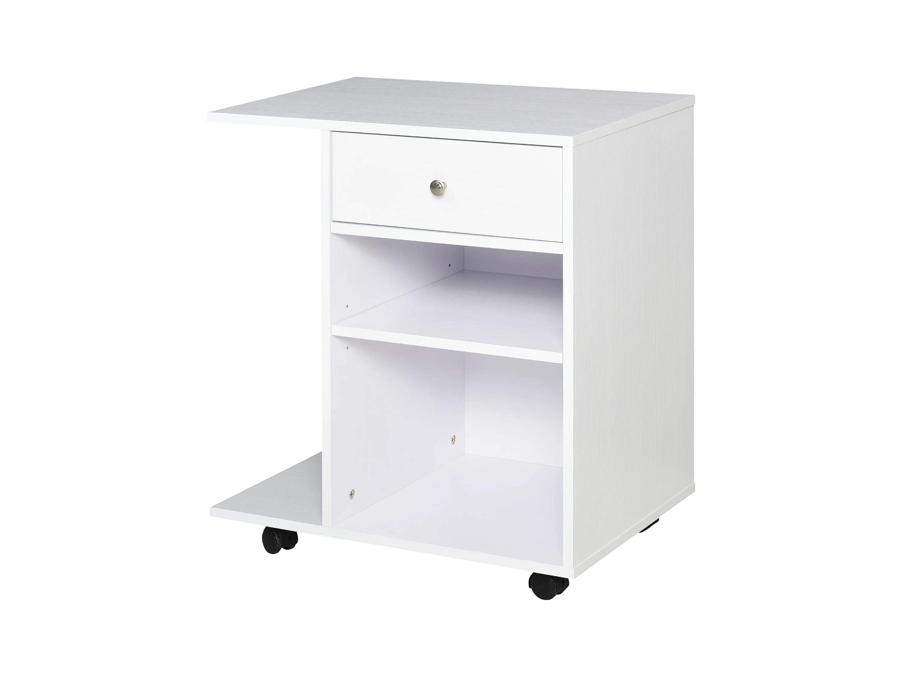 Mobile per stampante con 4 ruote e mensola in legno bianco