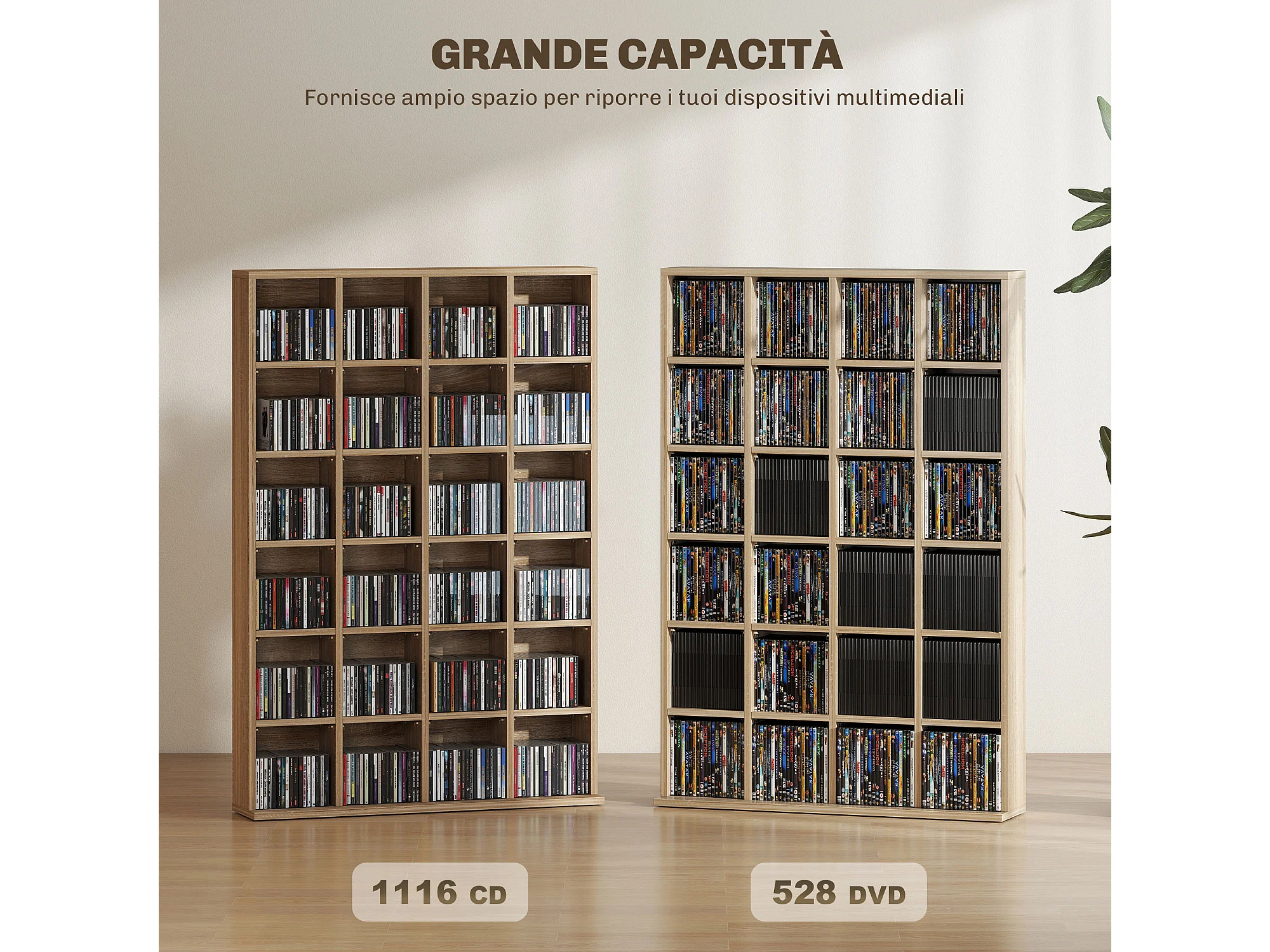 Mobile porta cd con ripiani regolabili, scaffale porta 456cd/336dvd salvaspazio in legno