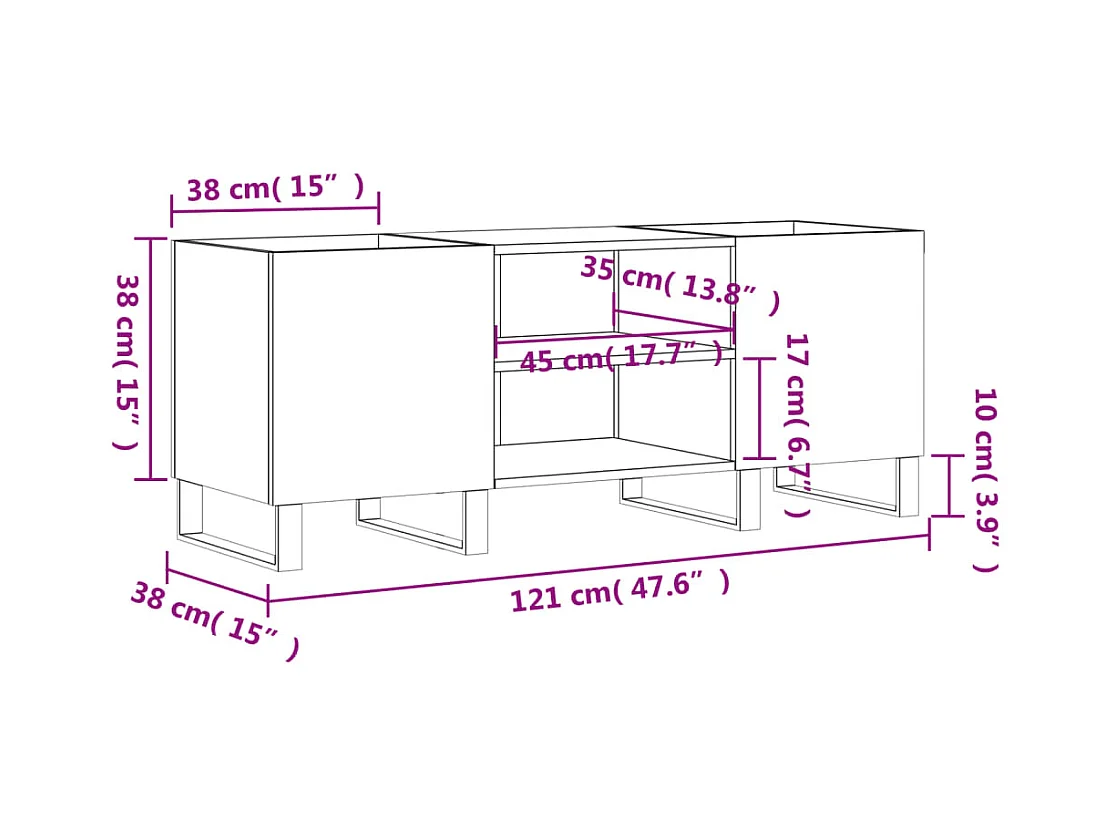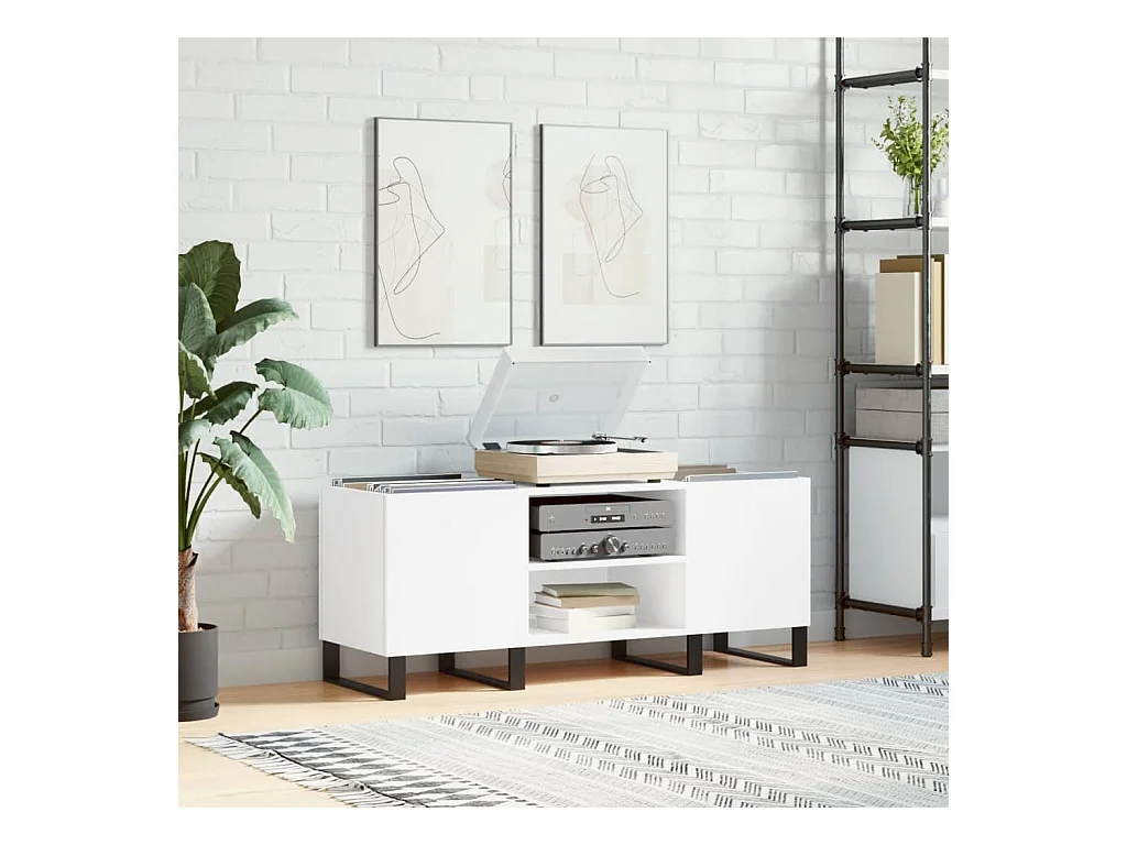 Mobile Porta Dischi Bianco 121x38x48 cm in Legno Multistrato