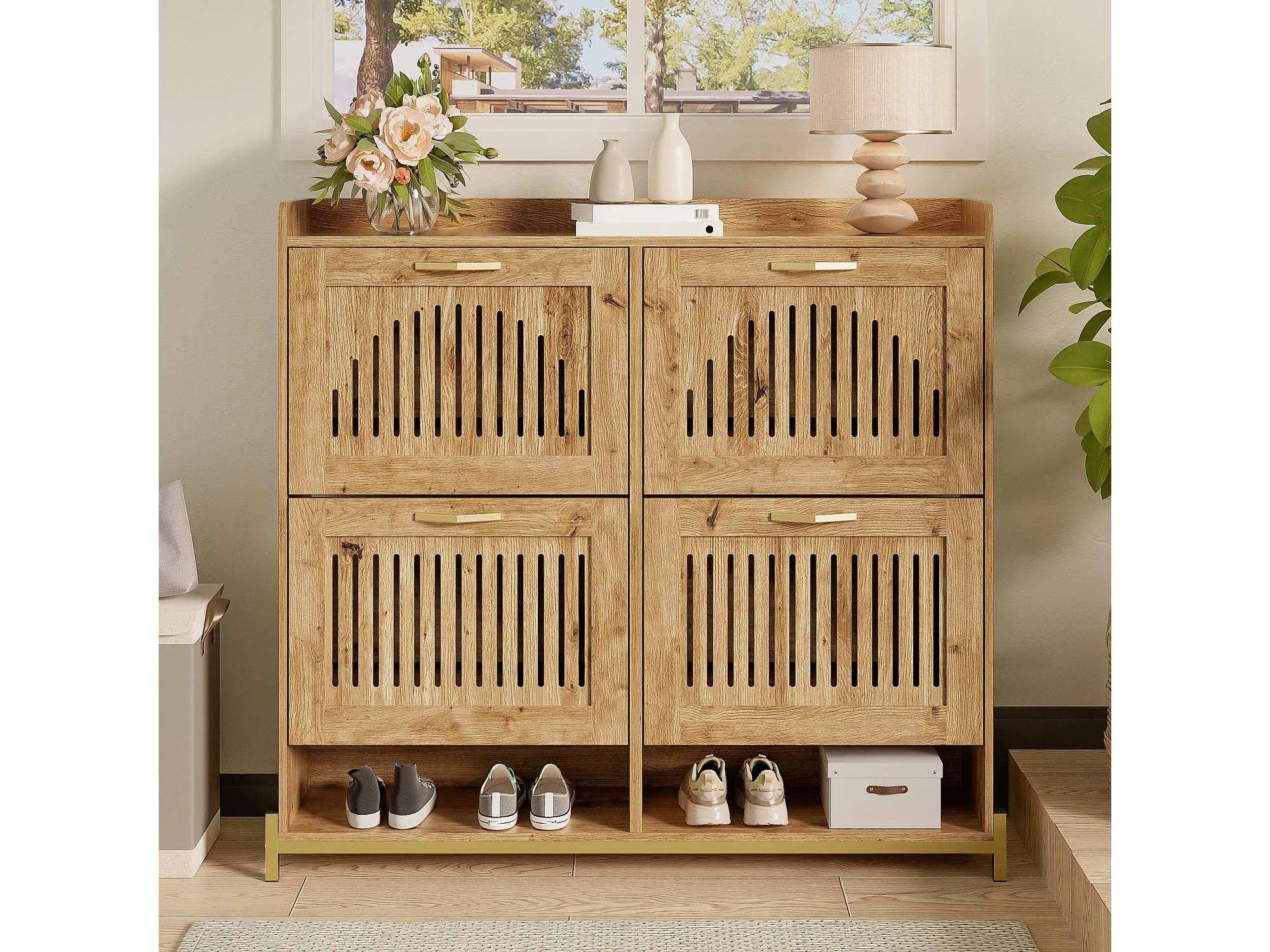 Mobile per scarpe moderno 108.5×24×100 cm - con 4 ante - MDF - naturale