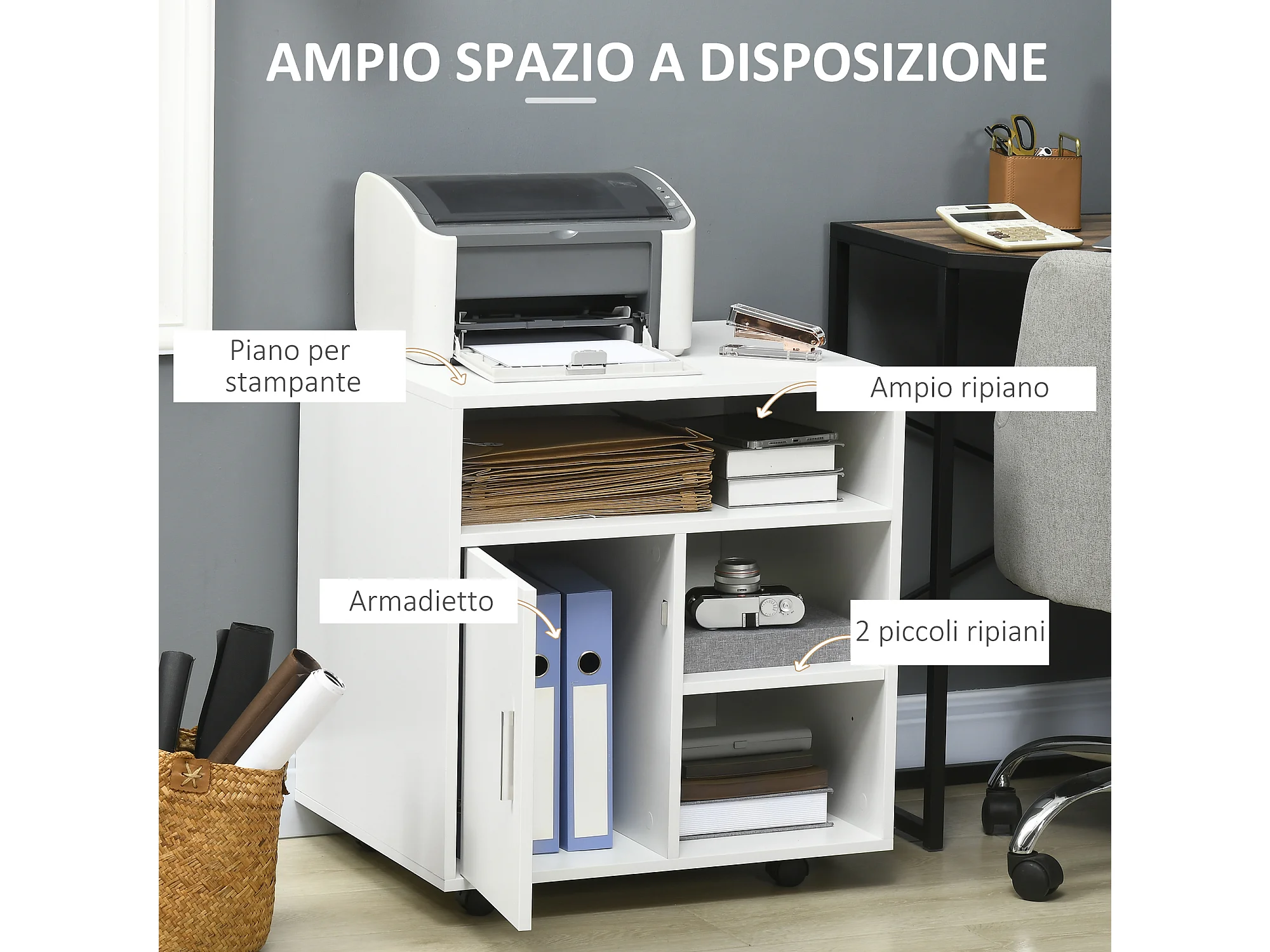 ARMADIO MULTIFUNZIONALE TAVOLINO PER STAMPANTE SCAFFALE MODERNO