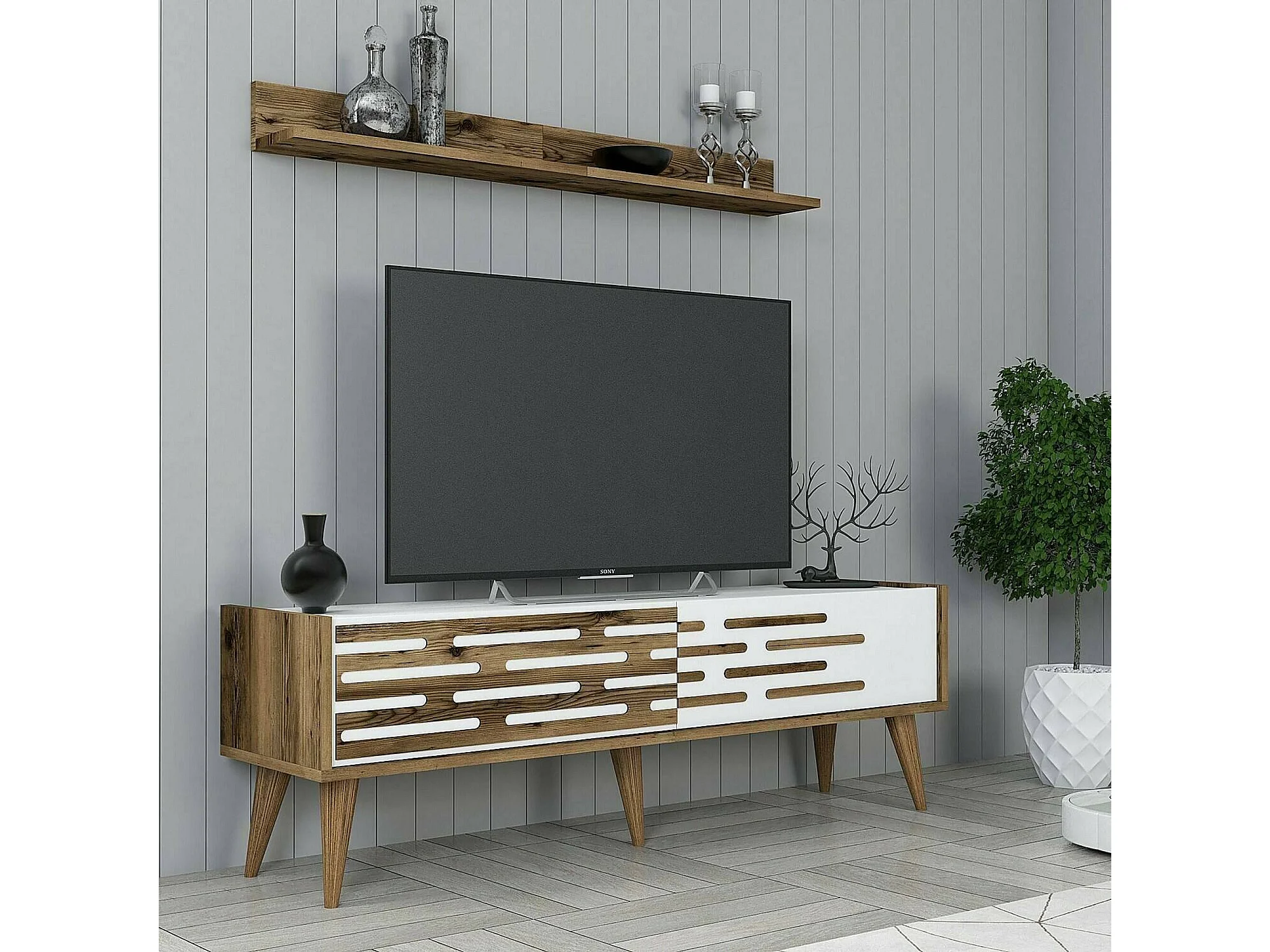 Mobile Porta tv Arsiero, un Ripiano, 45x140x35h cm Bianco