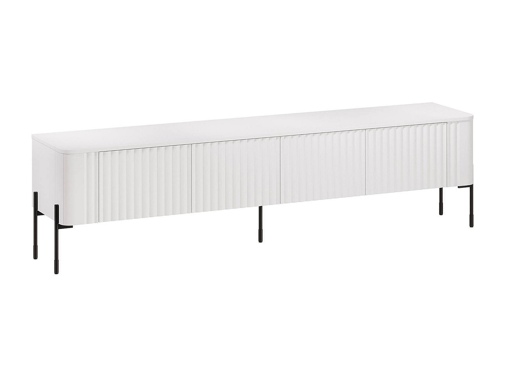 MOBILE PORTA TV - Madia da salotto con quattro ante battenti e quattro vani interni, Rialzata da terra, Perfetta per contenere oggetti, documenti e libri - Il suo stile minimalista e il design moderno lo rende ideale per arredare qualsiasi ambiente - 190x40 h50 cm, Bianco. STRUTTURA E UTILIZZO - Rendi la tua area living elegante e ordinata con questo mobile TV dal design essenziale e contemporaneo - Linee pulite e finitura moderna lo rendono perfetto per ambienti raffinati - Offre ampio spazio per riporre dispositivi multimediali, telecomandi, console o altri accessori, mantenendo l'ambiente sempre in perfetto ordine - Mobile multifunzione ideale per arredare ambienti con esigenze di spazio, salotto, soggiorno, camera, stanza. DIMENSIONI IN CM - Mobile porta TV: Lunghezza: 190 Larghezza: 39,6 Altezza: 50. CARATTERISTICHE TECNICHE - Questo armadio funzionale ha una finitura effetto cannettato, con quattro ante battenti e quattro vani interni spaziosi - Pratico: Le ante battenti sono dotate di sistema push pull, per facilitare l'apertura del mobile - I piedini alti color nero donano stabilità e consentono una facile pulizia - Solido e robusto: il prodotto viene realizzato interamente in Mdf - Imballaggio resistente, progettato per l'eCommerce. QUALITÀ E DESIGN - Arricchisci la tua casa con questo mobile, perfetto per arredare un ambiente contemporaneo e luminoso - Ideale per chi cerca funzionalità, questo prodotto è perfetto per appartamenti di ogni dimensione - Garanzia di due anni dalla data di acquisto