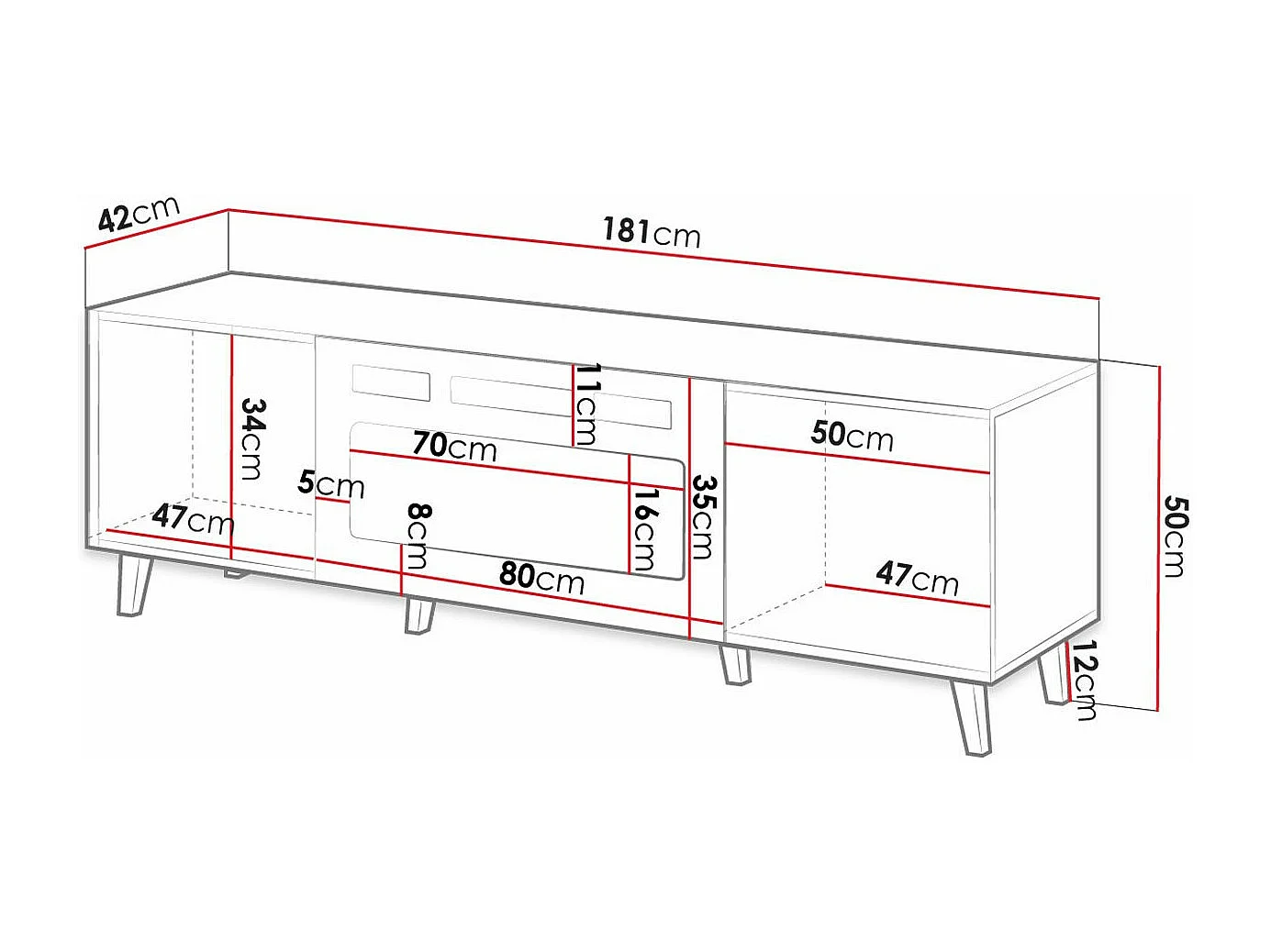 Mobile porta TV Levmari 106, Nero|Bianco|D'oro, Il numero di porte: 2.00, 181x49x40cm