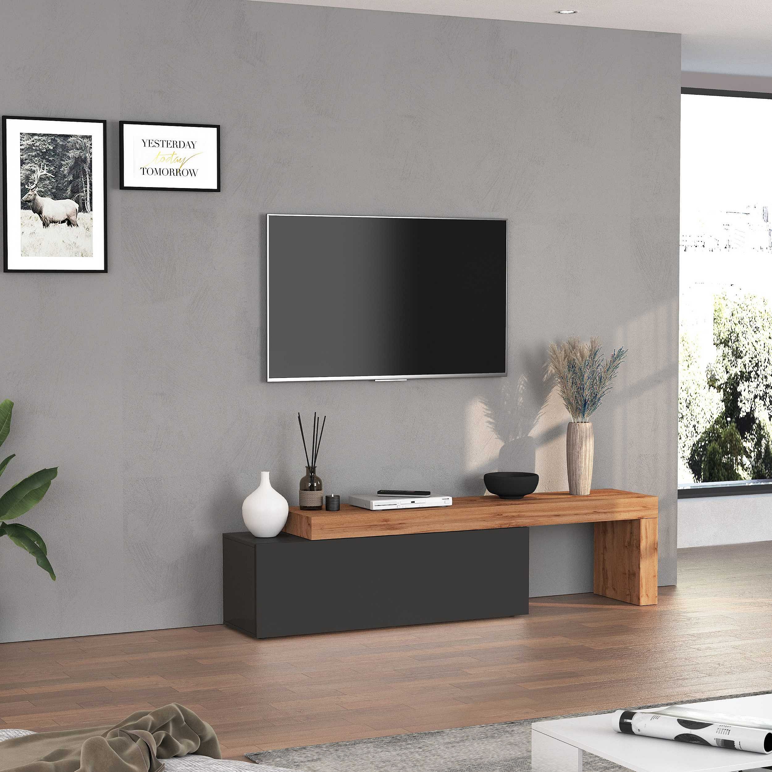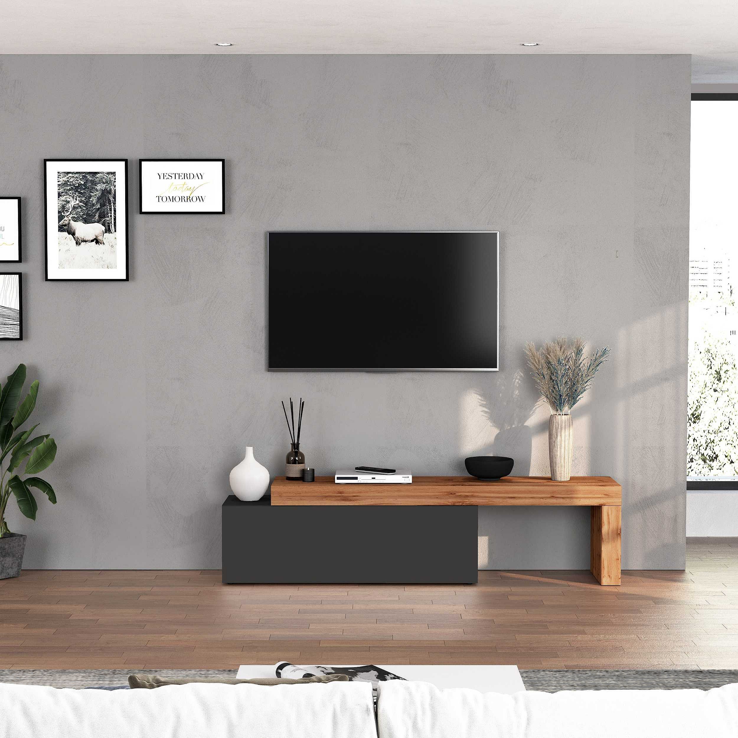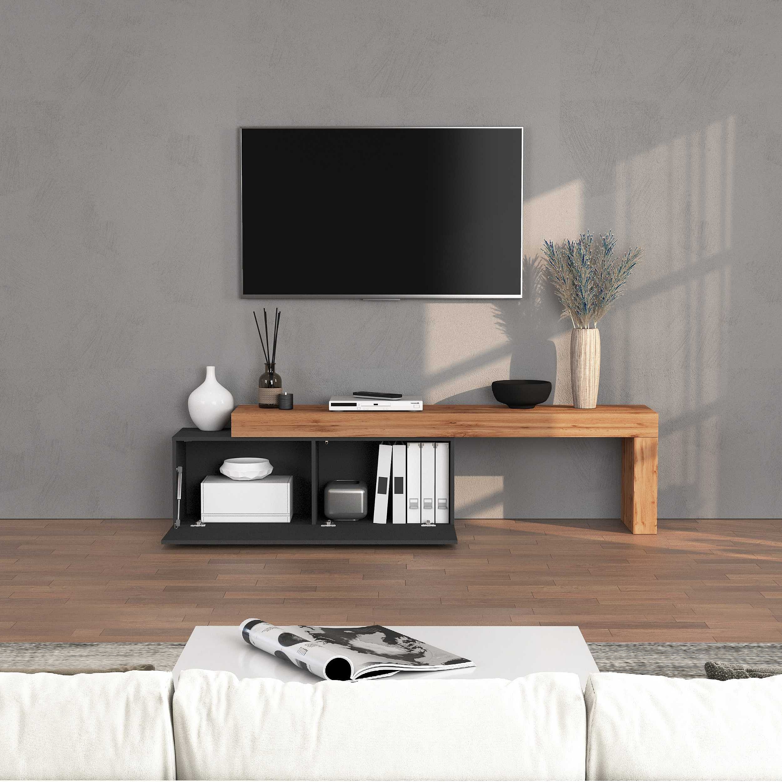 Mobile porta tv Chronos estensibile con 1 anta a ribalta antracite/rovere 180/290x40x51 cm