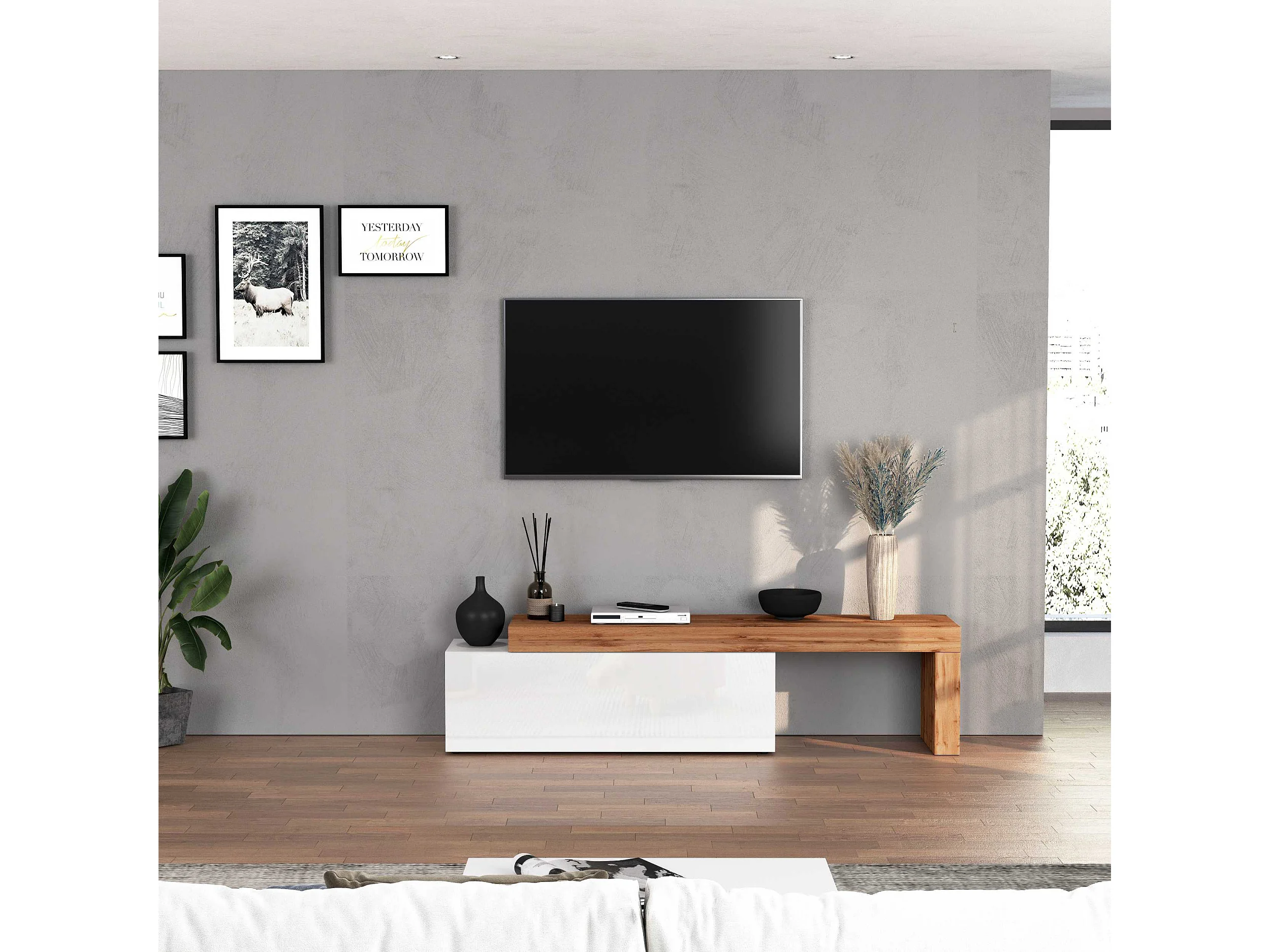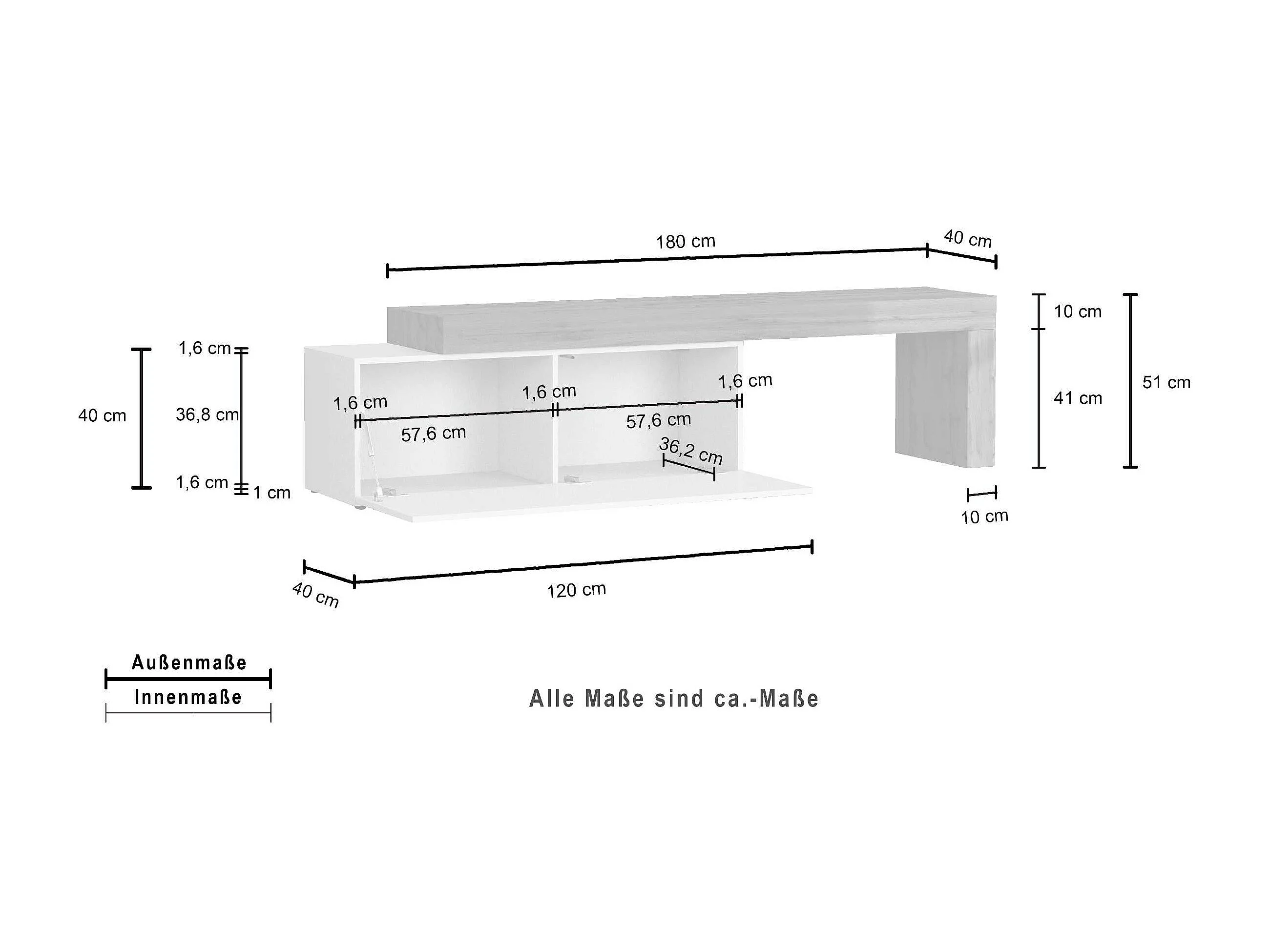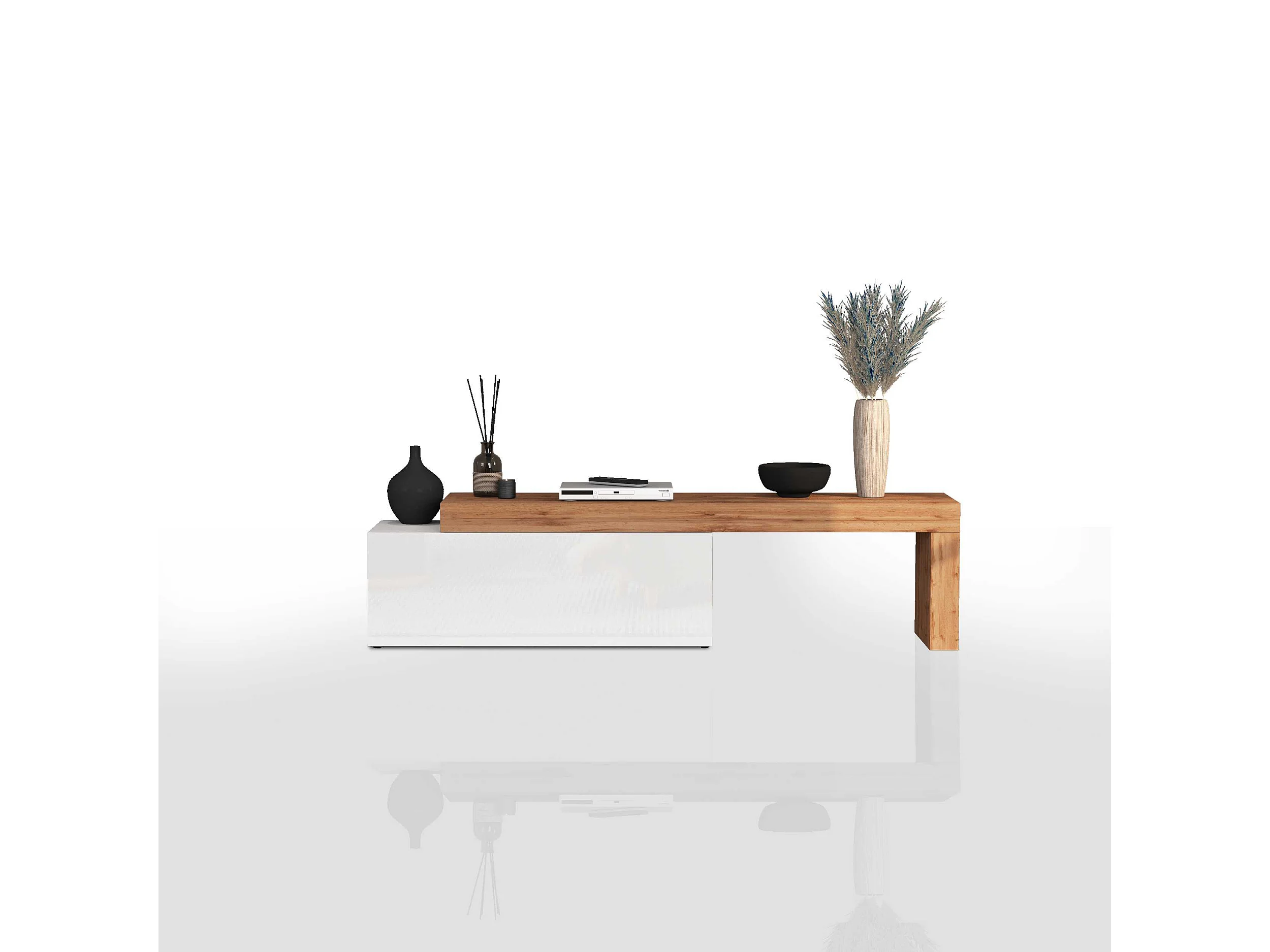 Mobile porta tv Chronos estensibile con 1 anta a ribalta bianco/rovere 180/290x40x51 cm