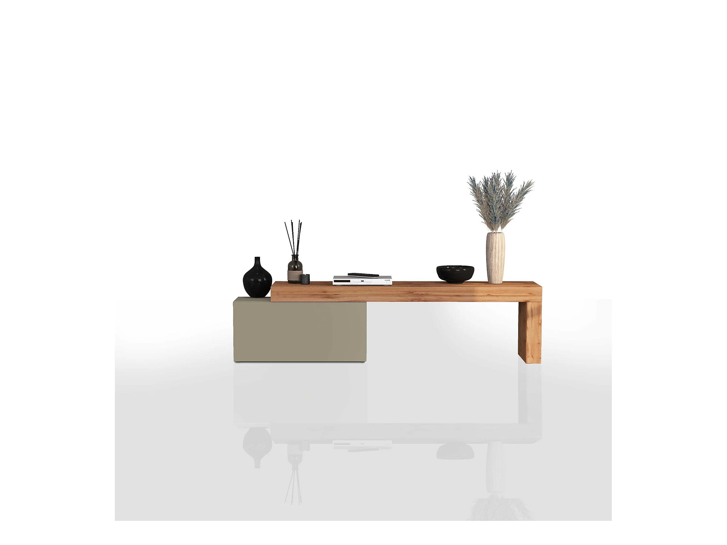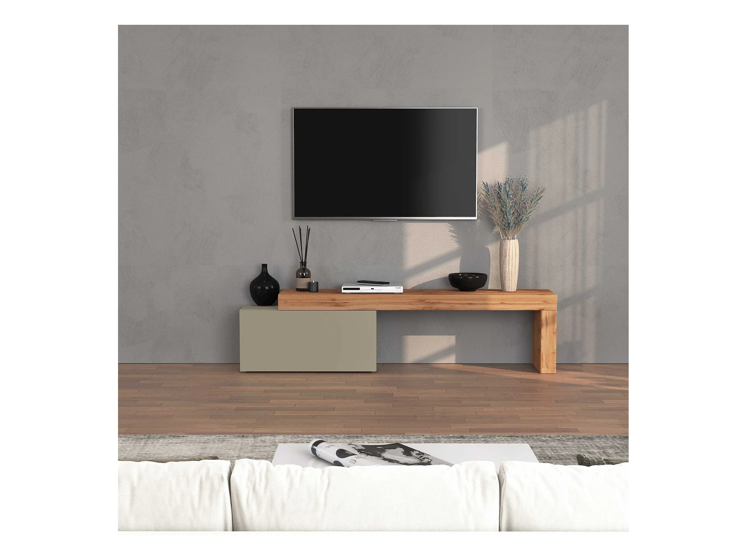 Mobile porta tv Chronos estensibile con 1 anta a ribalta tortora/rovere 180/260x40x51 cm