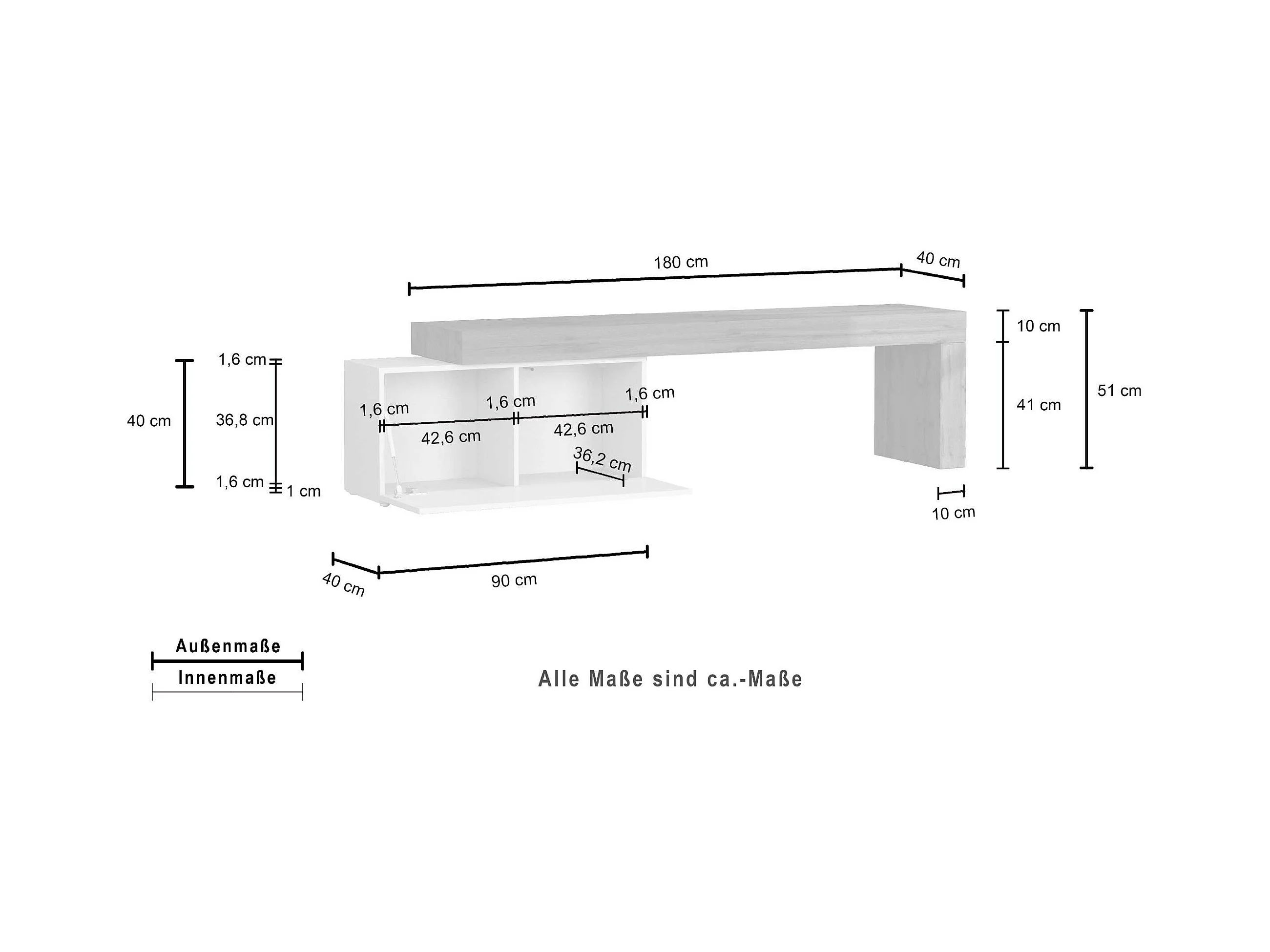 Elegante mobile porta TV – 180 cm – Atlas e Nero – Pannello truciolare rivestito in melaminico