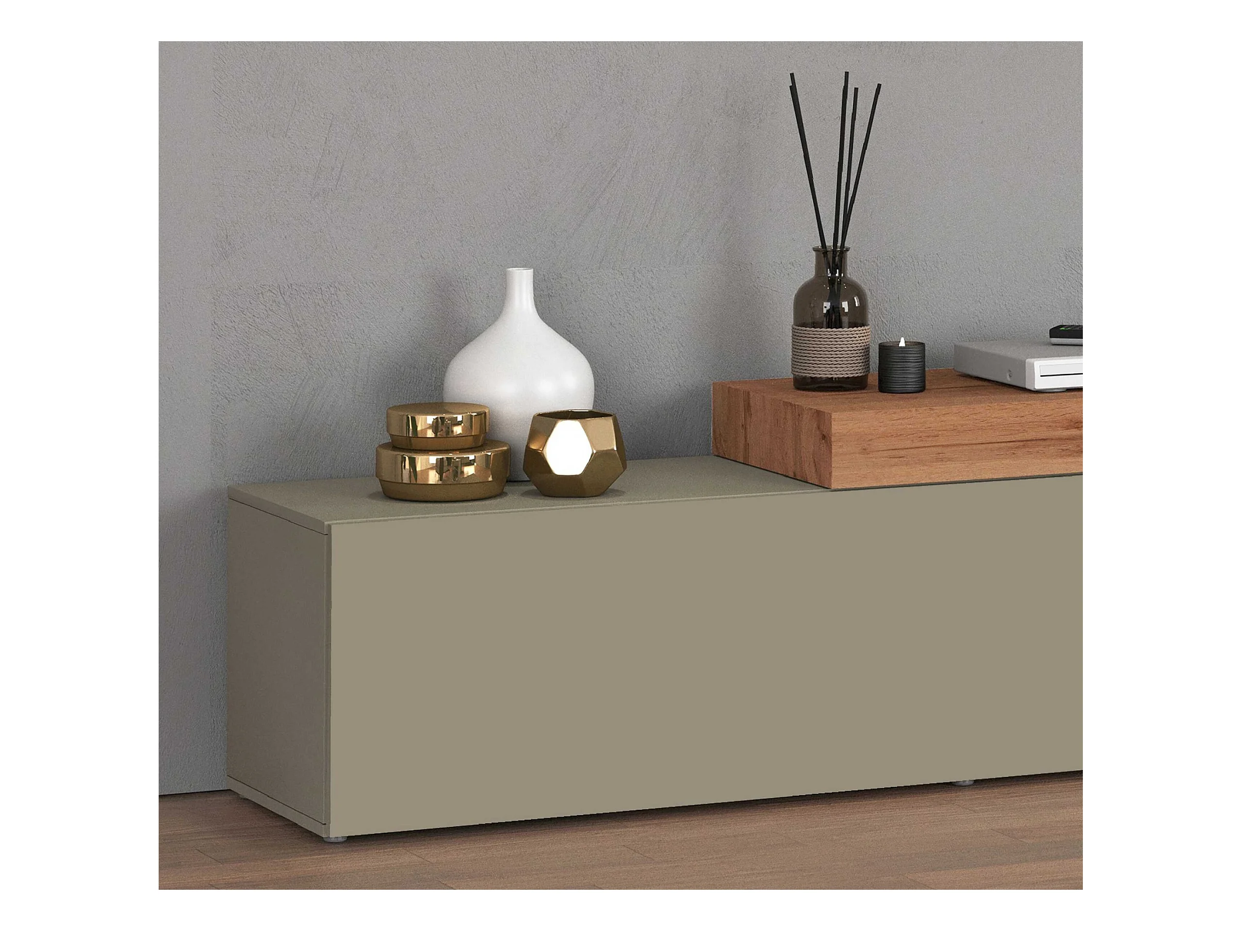 Mobile porta tv Chronos a 2 ante e 1 cassetto tortora opaco e rovere 155x40x51 cm