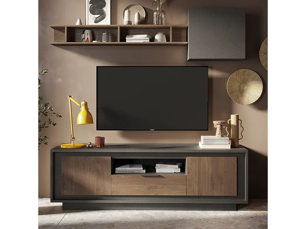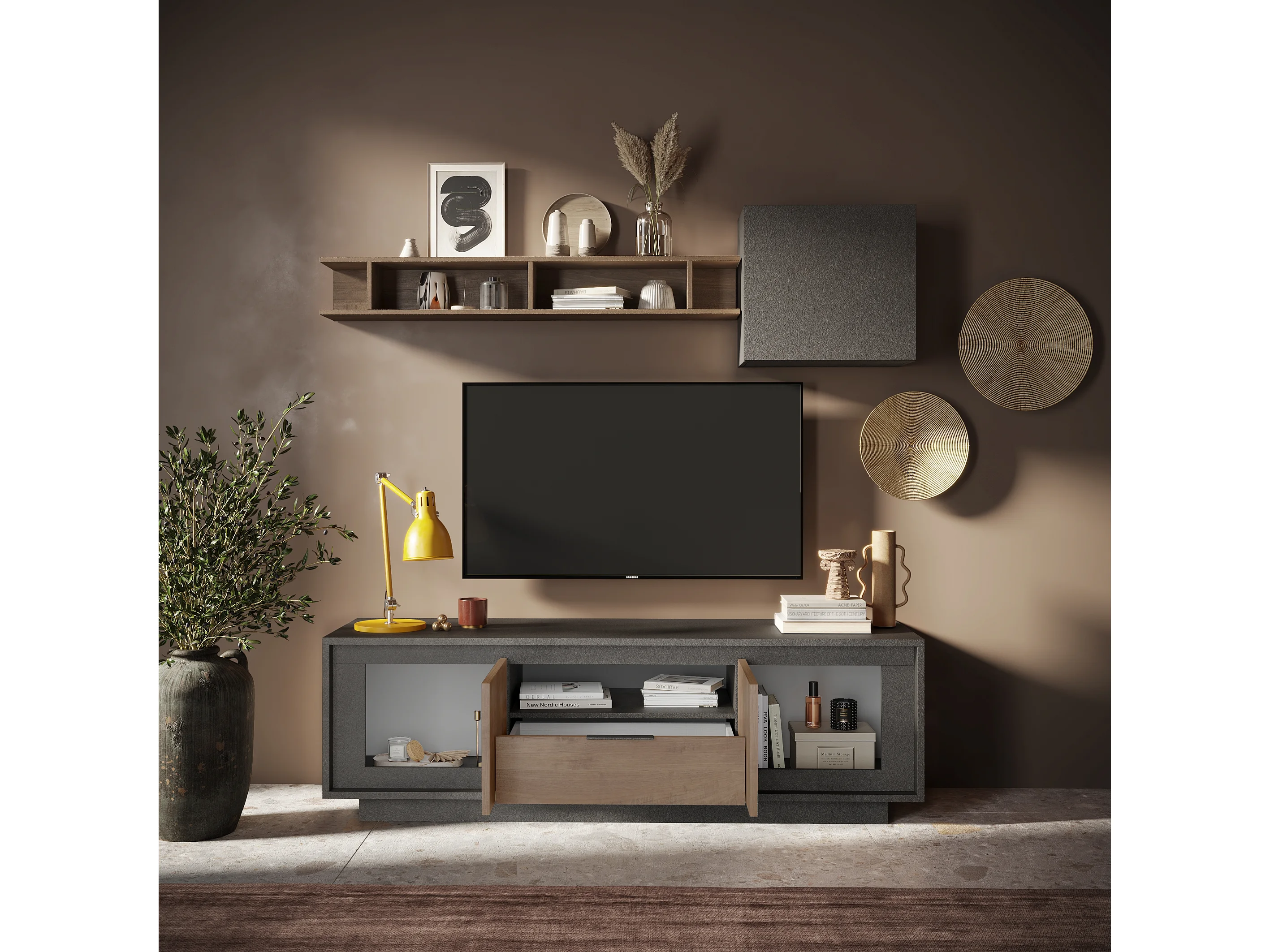 Mobile porta TV con 2 ante e un cassetto 184x58 cm grafite e rovere scuro PTL24