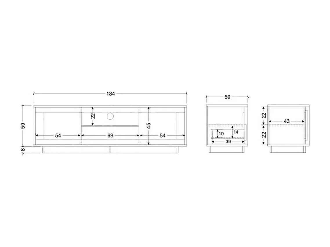 Mobile porta TV con anta a ribalta e vani a giorno design moderno 184x58 PTL9 bianco e ossido