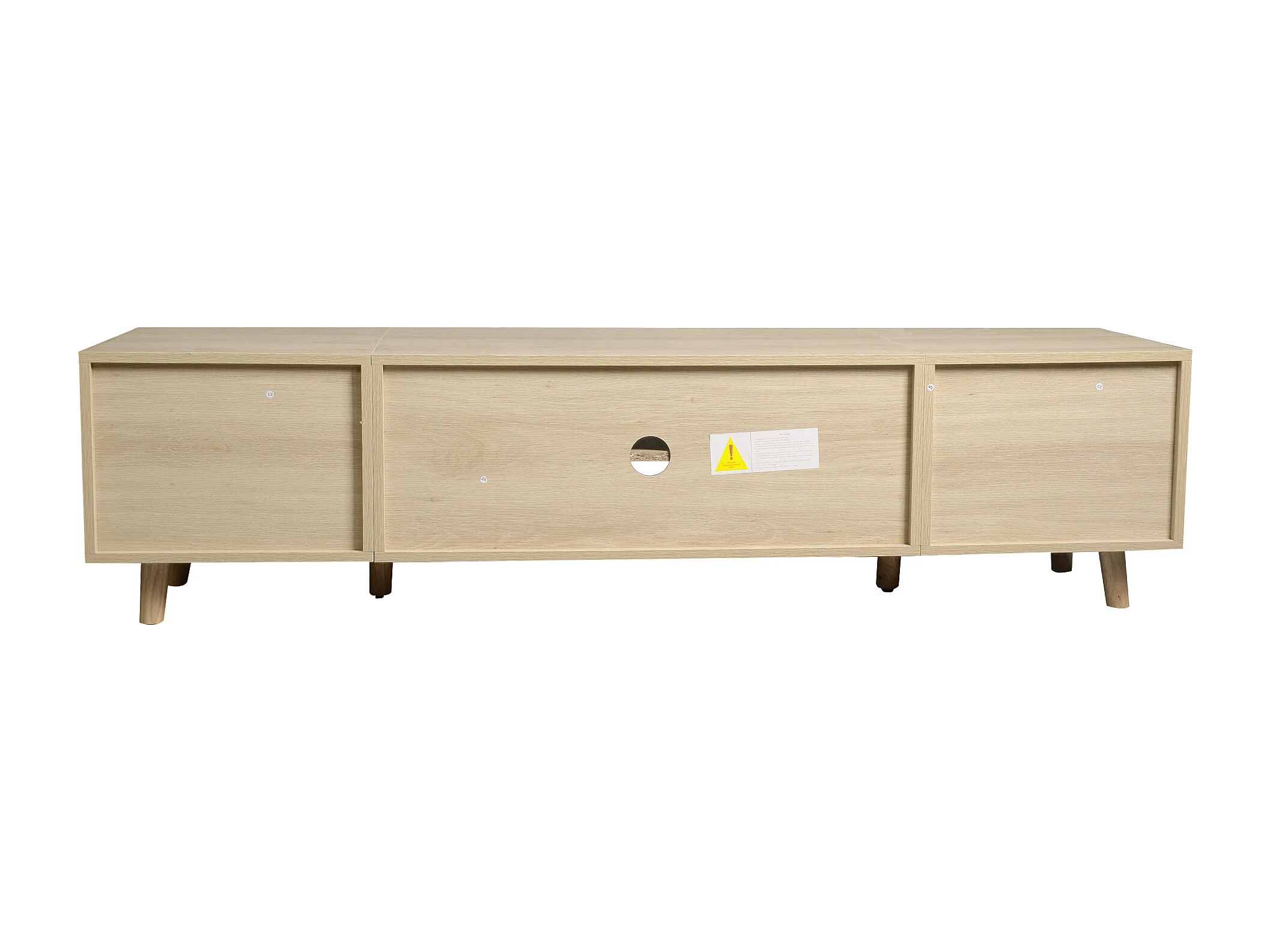 Mobile TV color naturale con 4 ante e passacavi, design ondulato 155x36x47cm