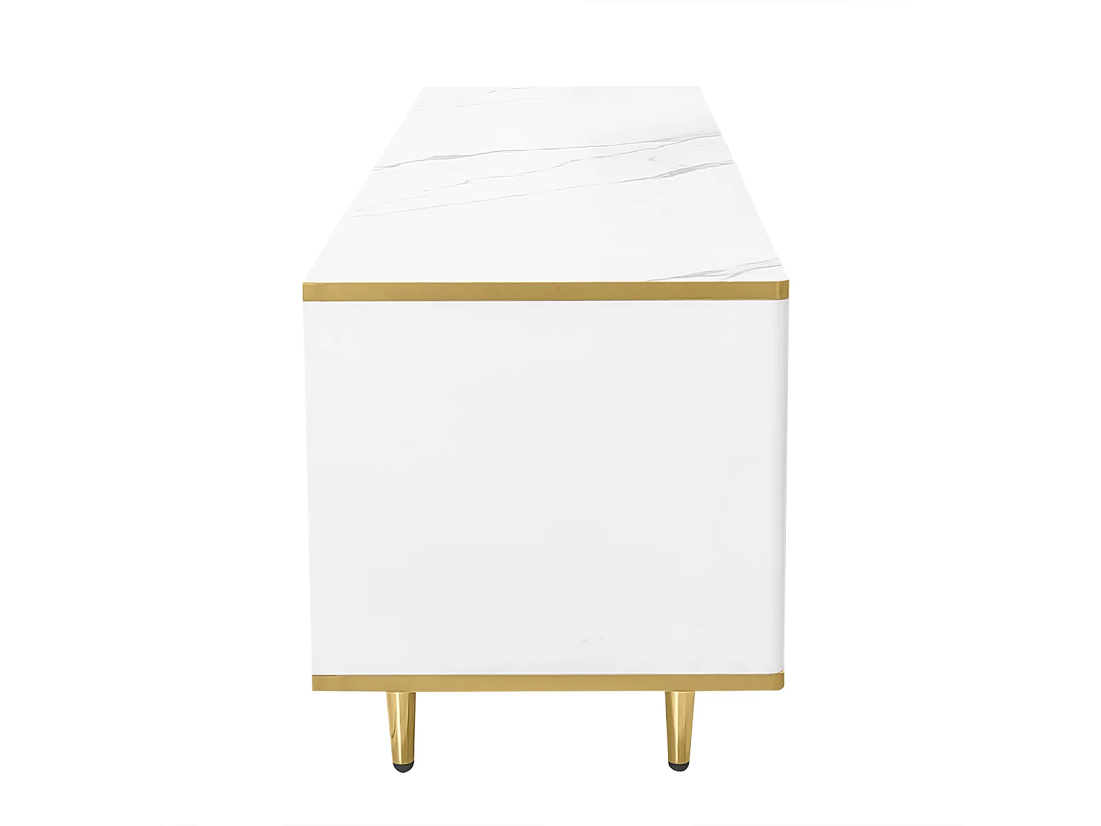 Mobile TV basso con anta texturizzata, maniglie e gambe dorate, credenza bassa per soggiorno, 170x40x45 cm, bianco