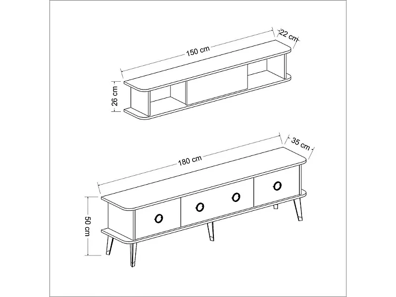 Mobile porta Tv con pensile effetto marmo nero particolari argento Bientv 180