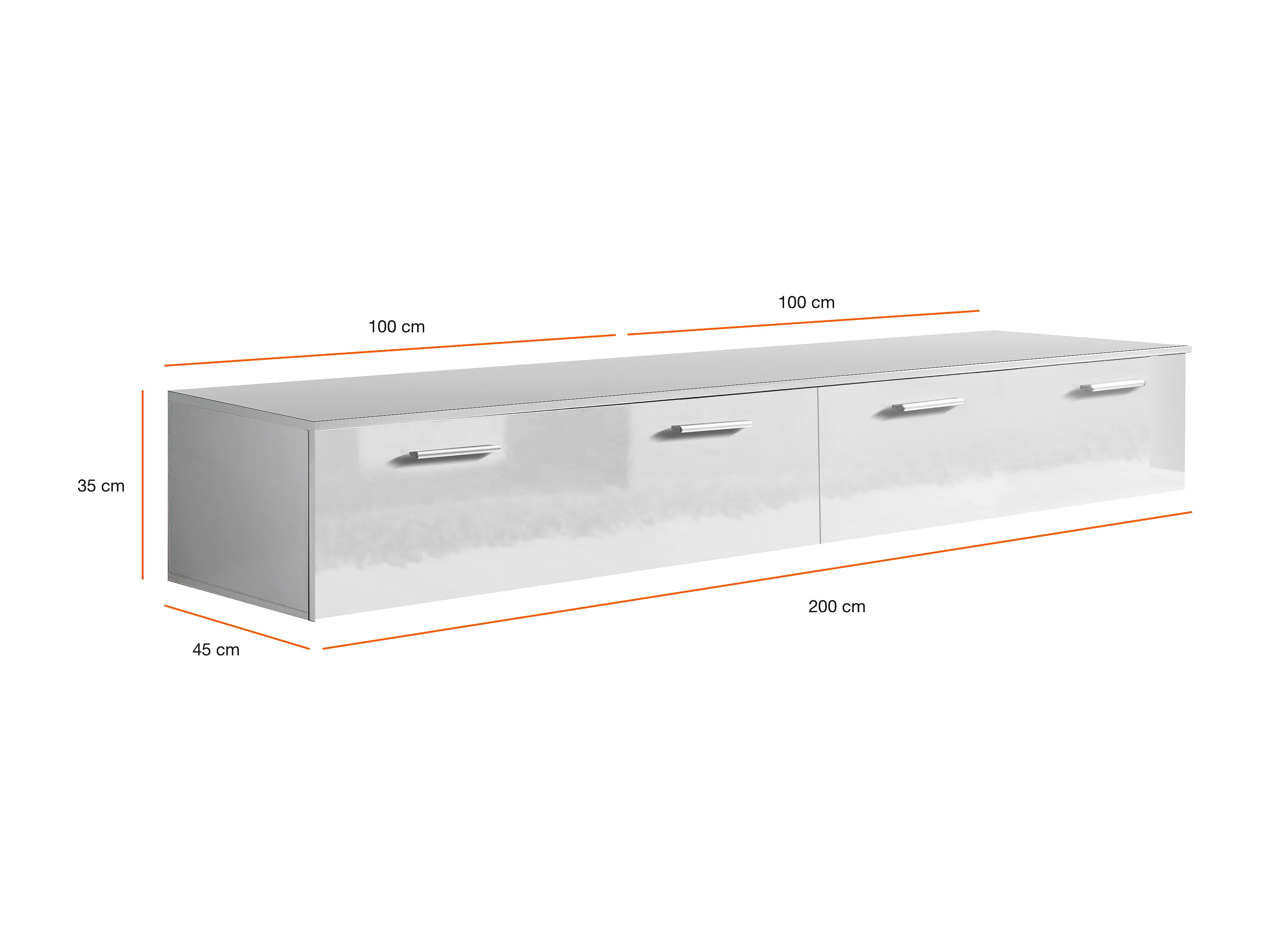 Mobile porta TV contemporanea per salotto con due ante 200x35 nero e bianco lucido PTVP1