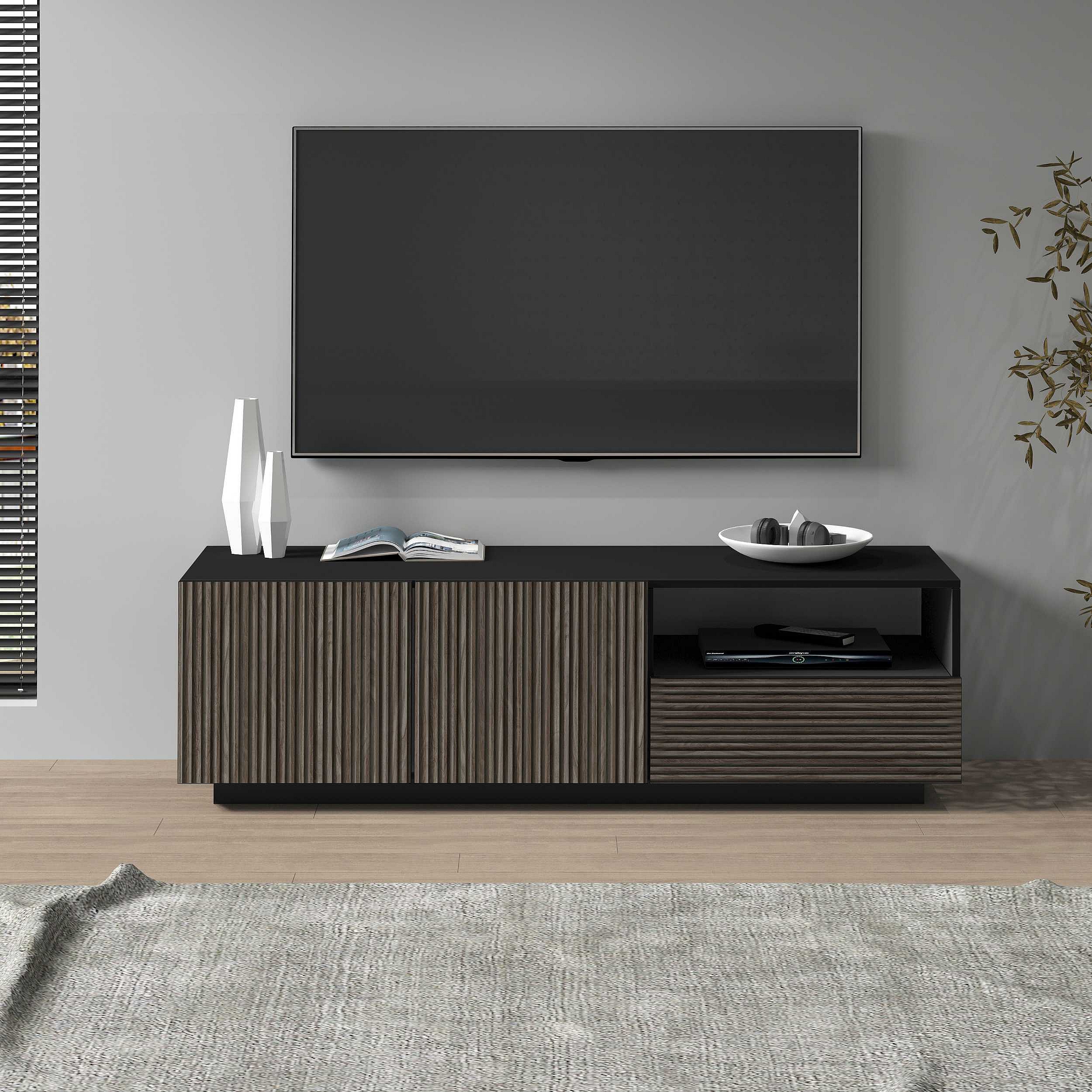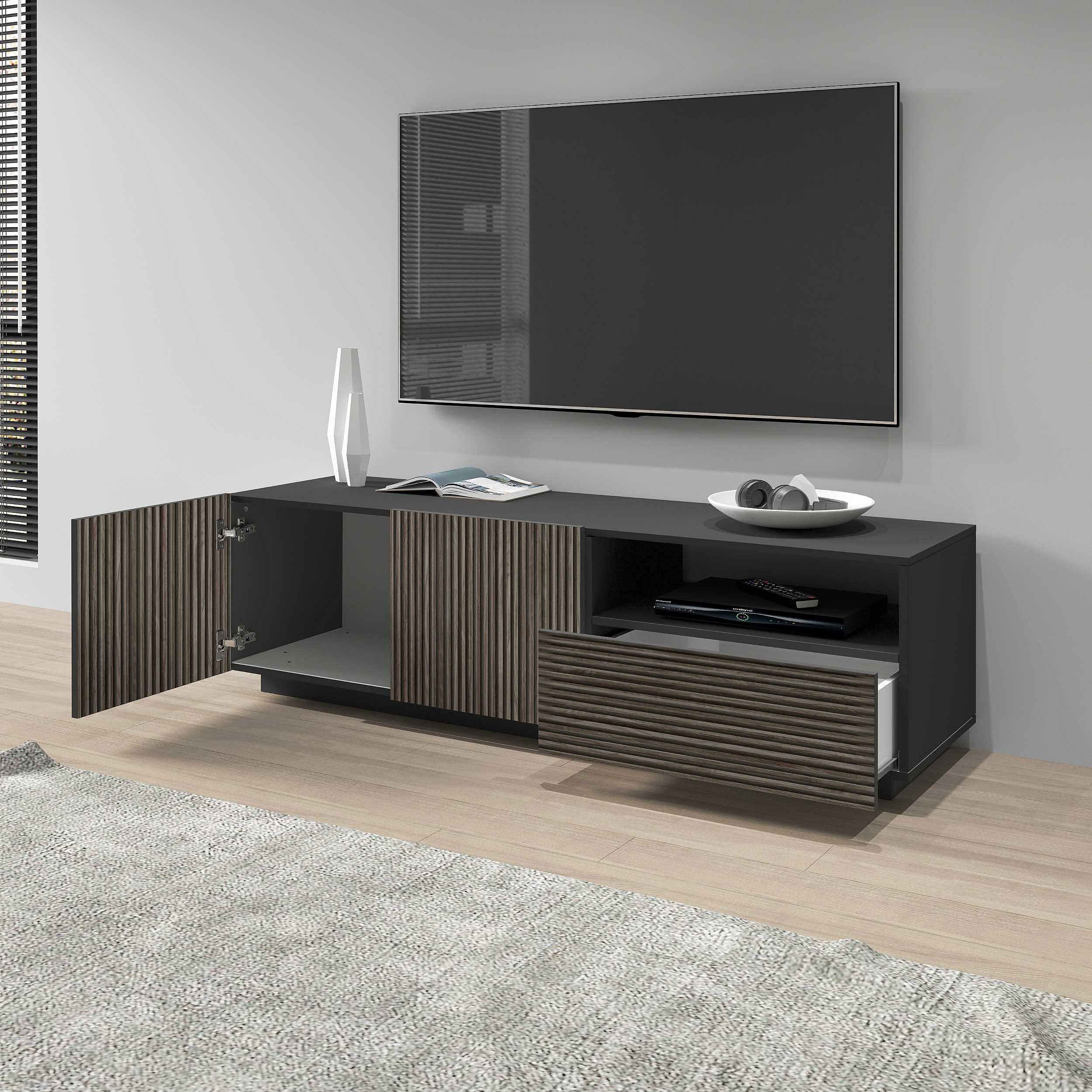 Mobile porta tv Coste a 2 ante 1 cassetto e 1 vano antracite/legno scuro 150x43x46 cm