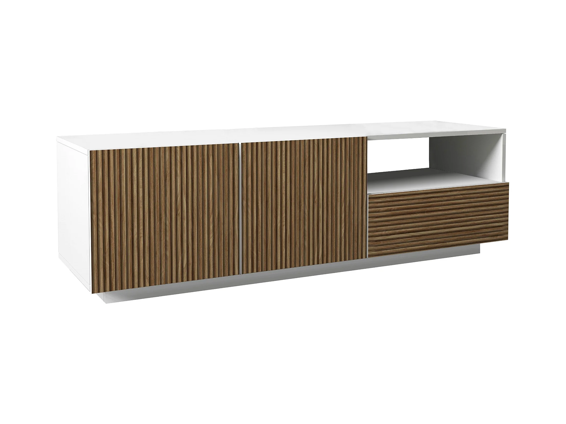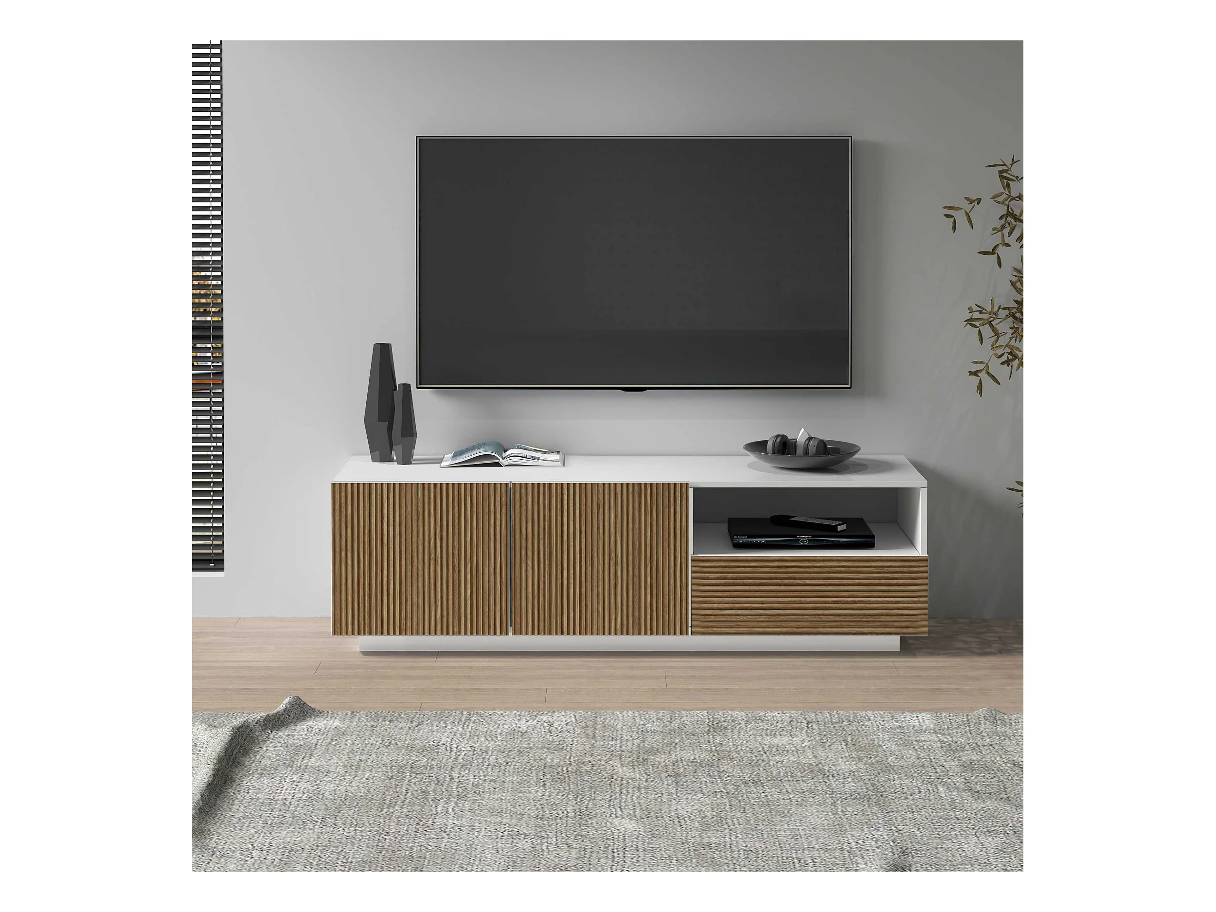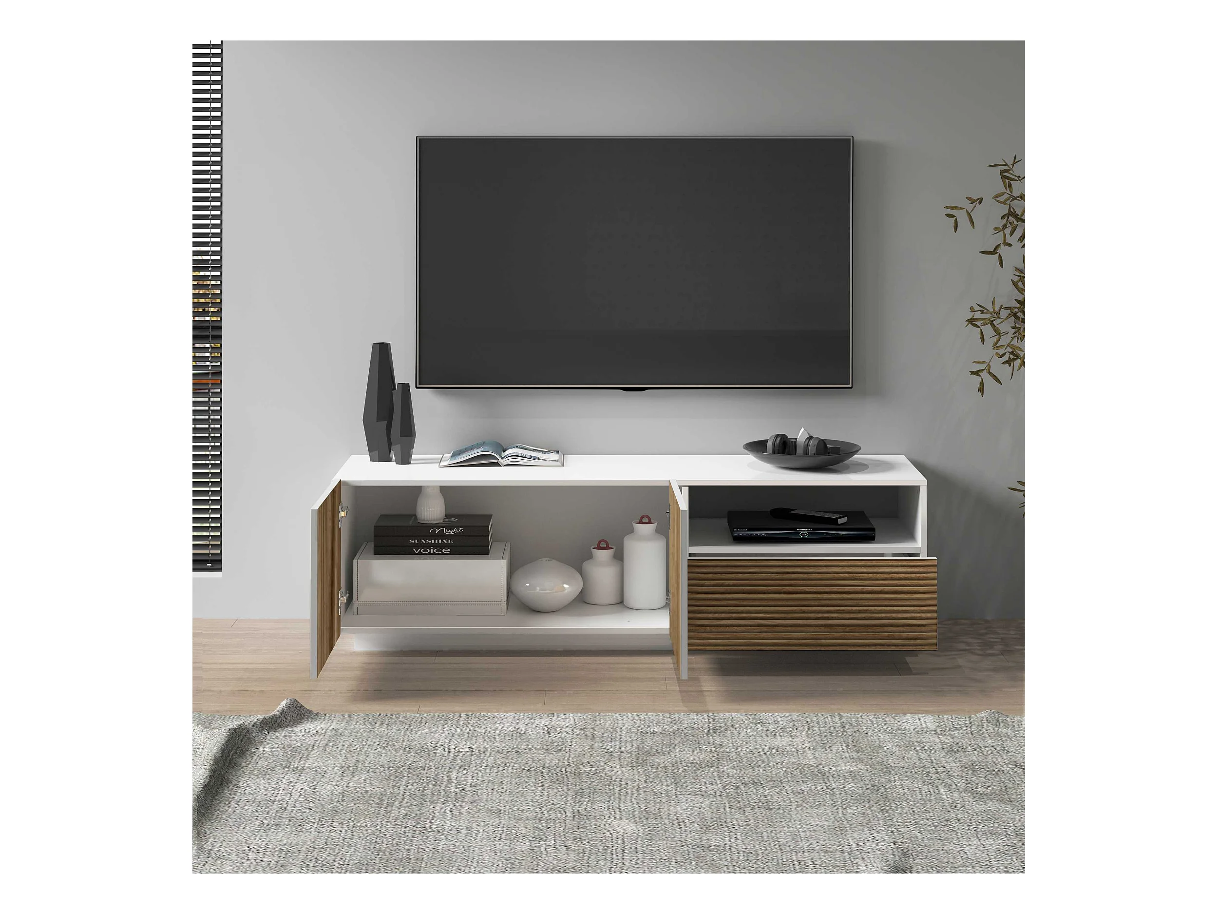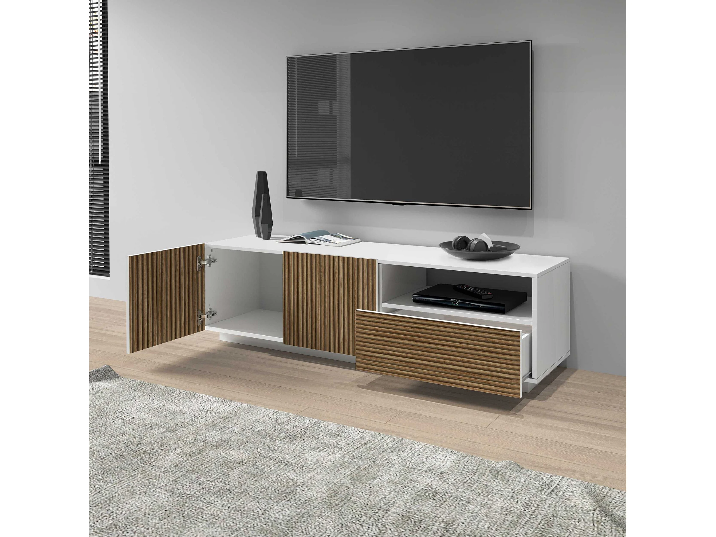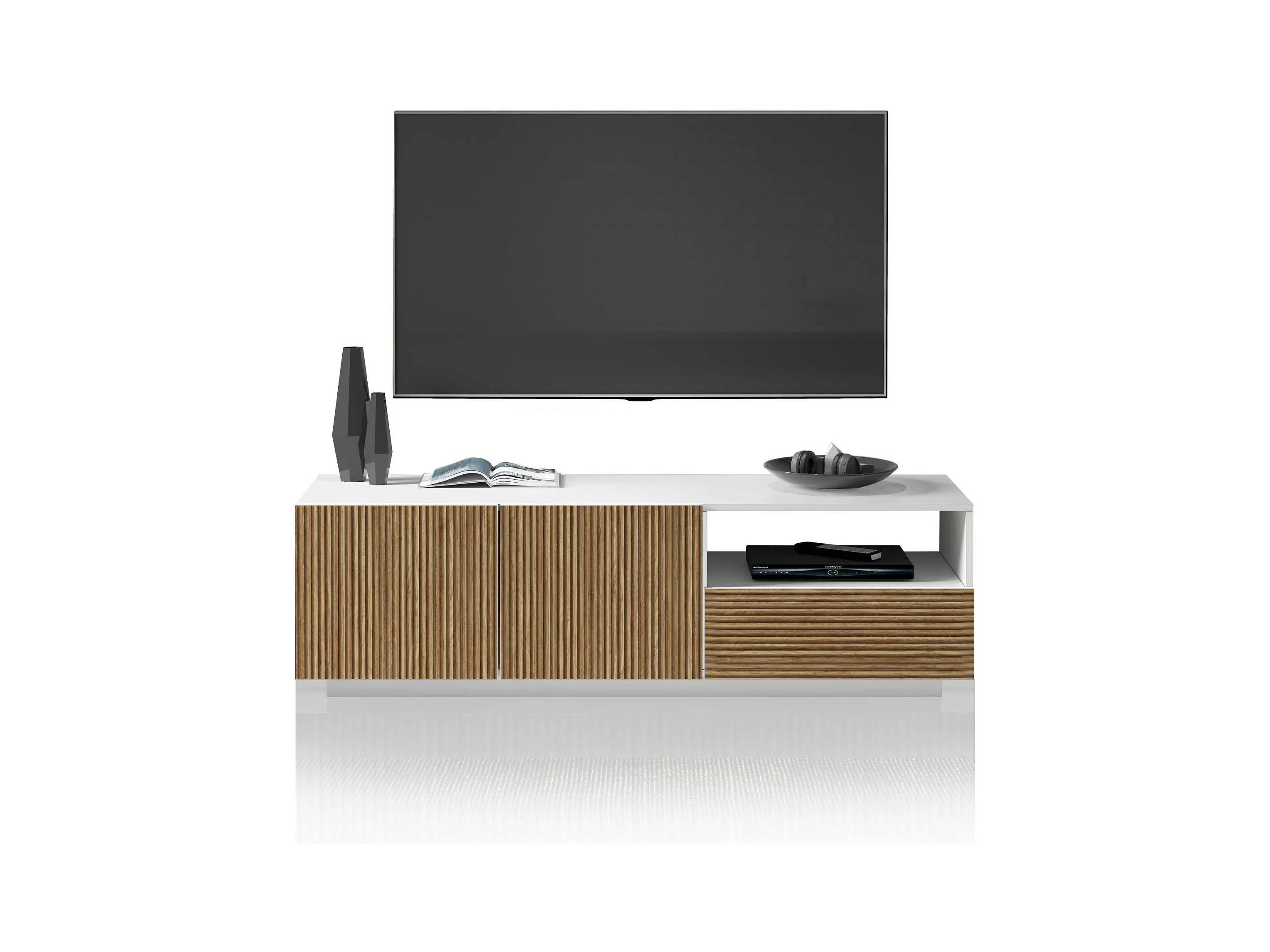 Mobile porta tv Coste a 2 ante 1 cassetto e 1 vano aperto bianco/legno chiaro 150x43x46 cm