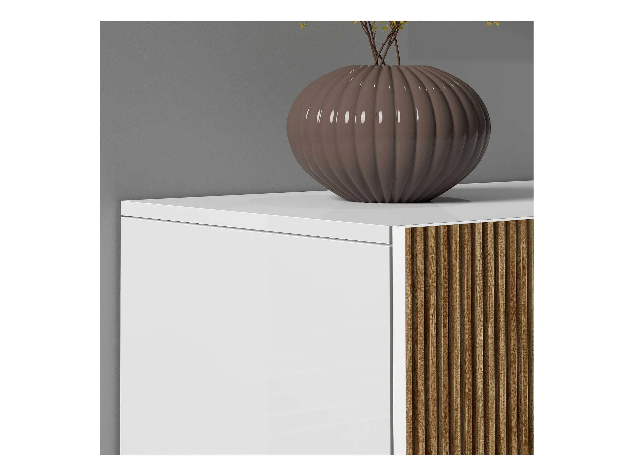 Mobile porta tv Coste a 4 ante 1 cassetto e 1 vano bianco/legno chiaro 220,1x43x46 cm