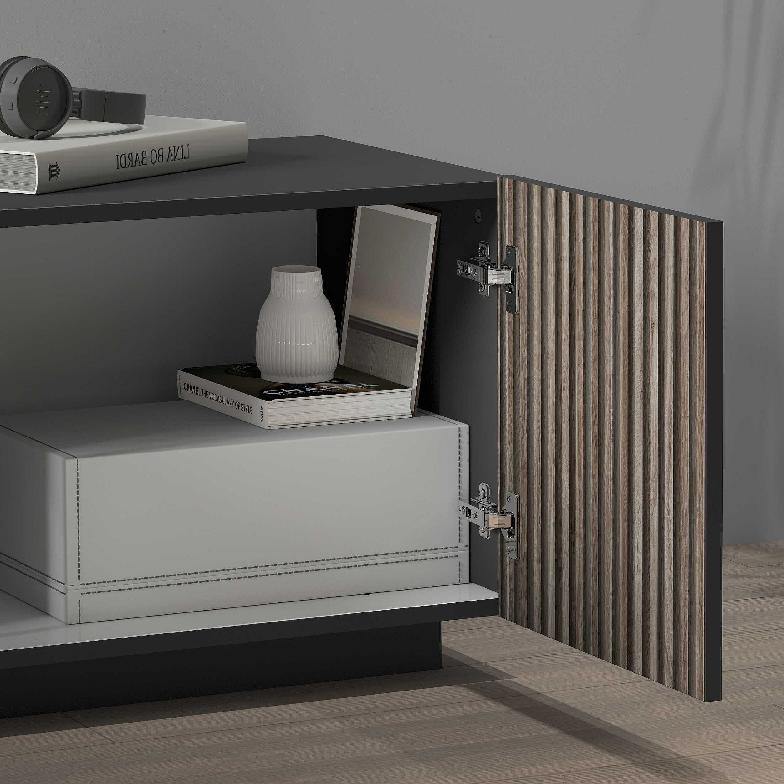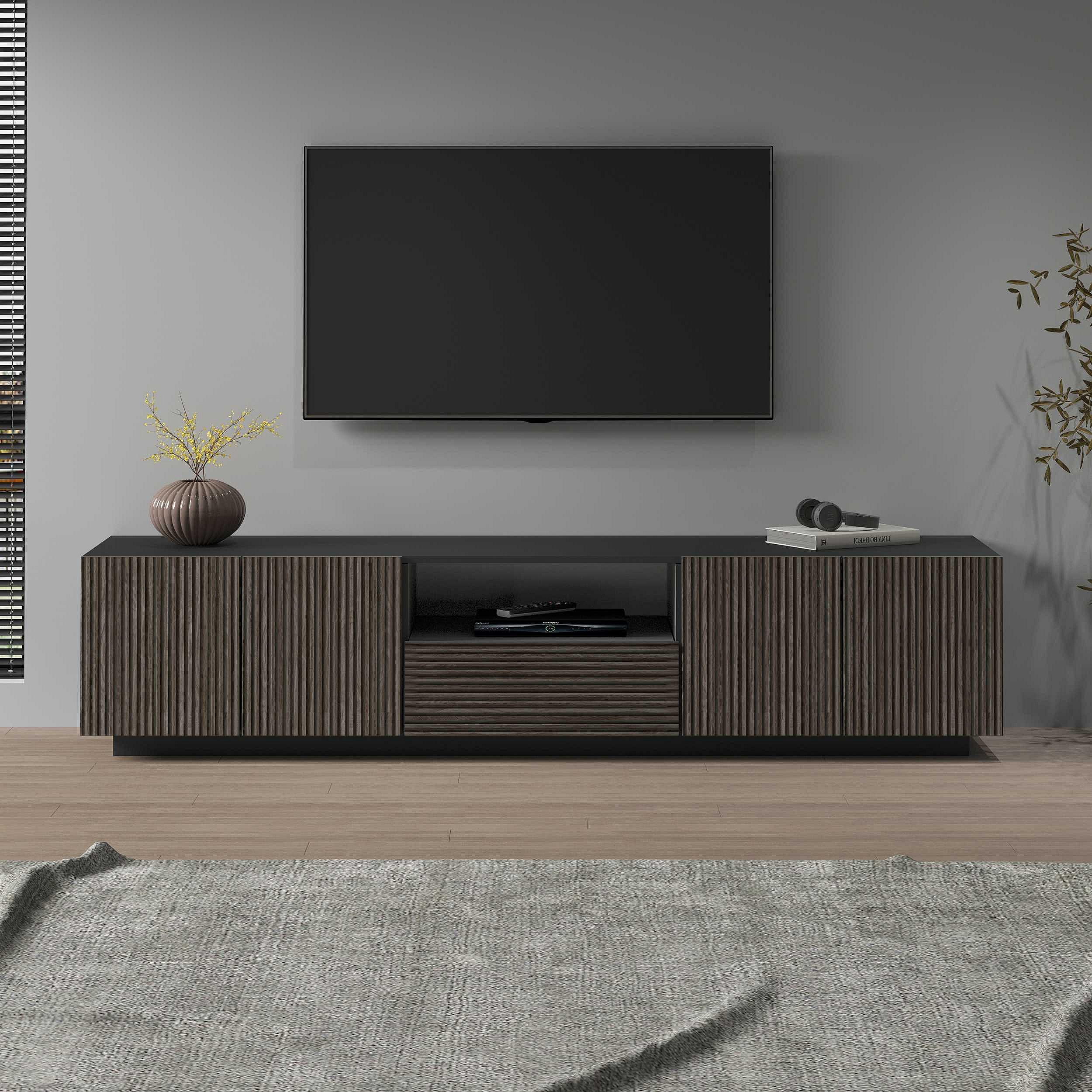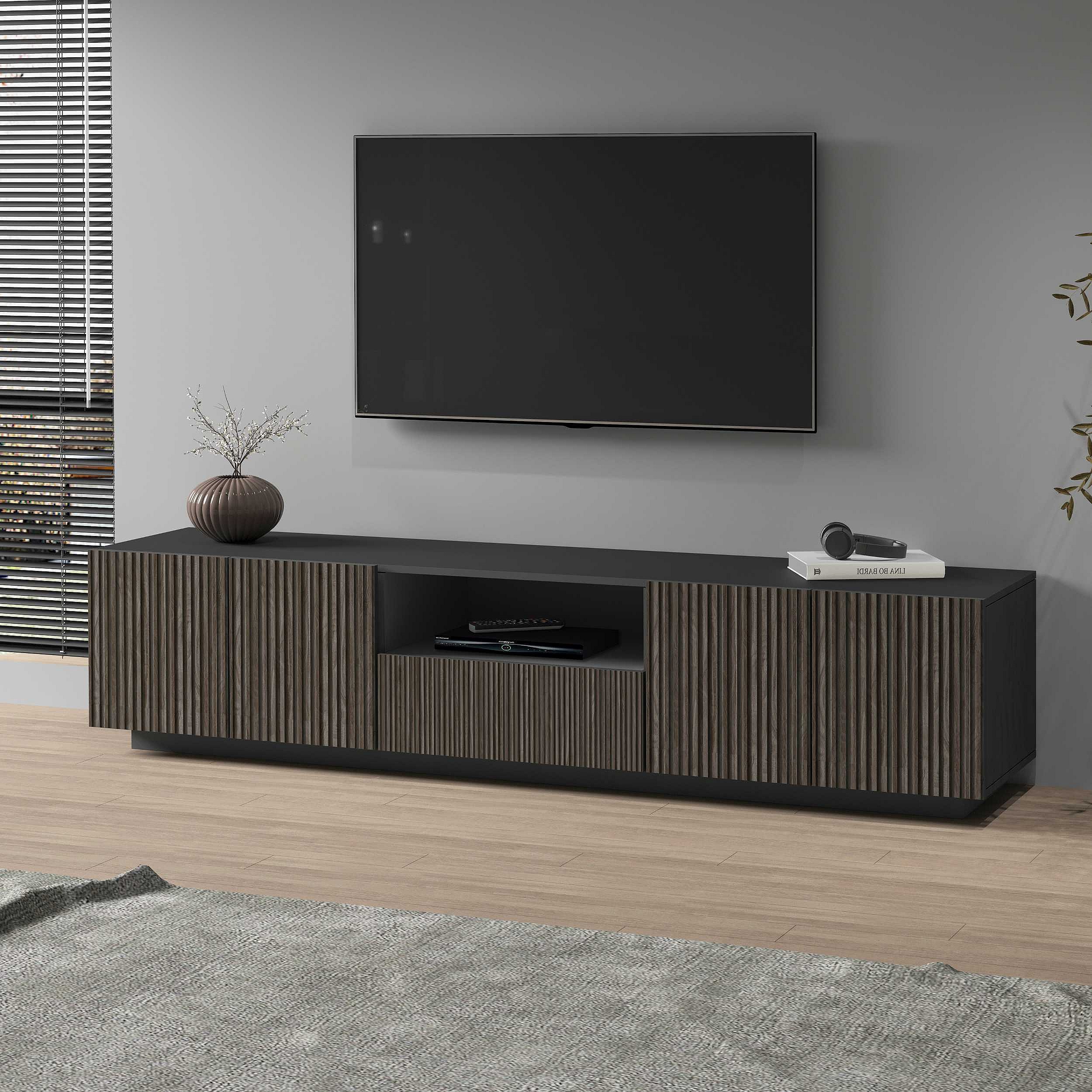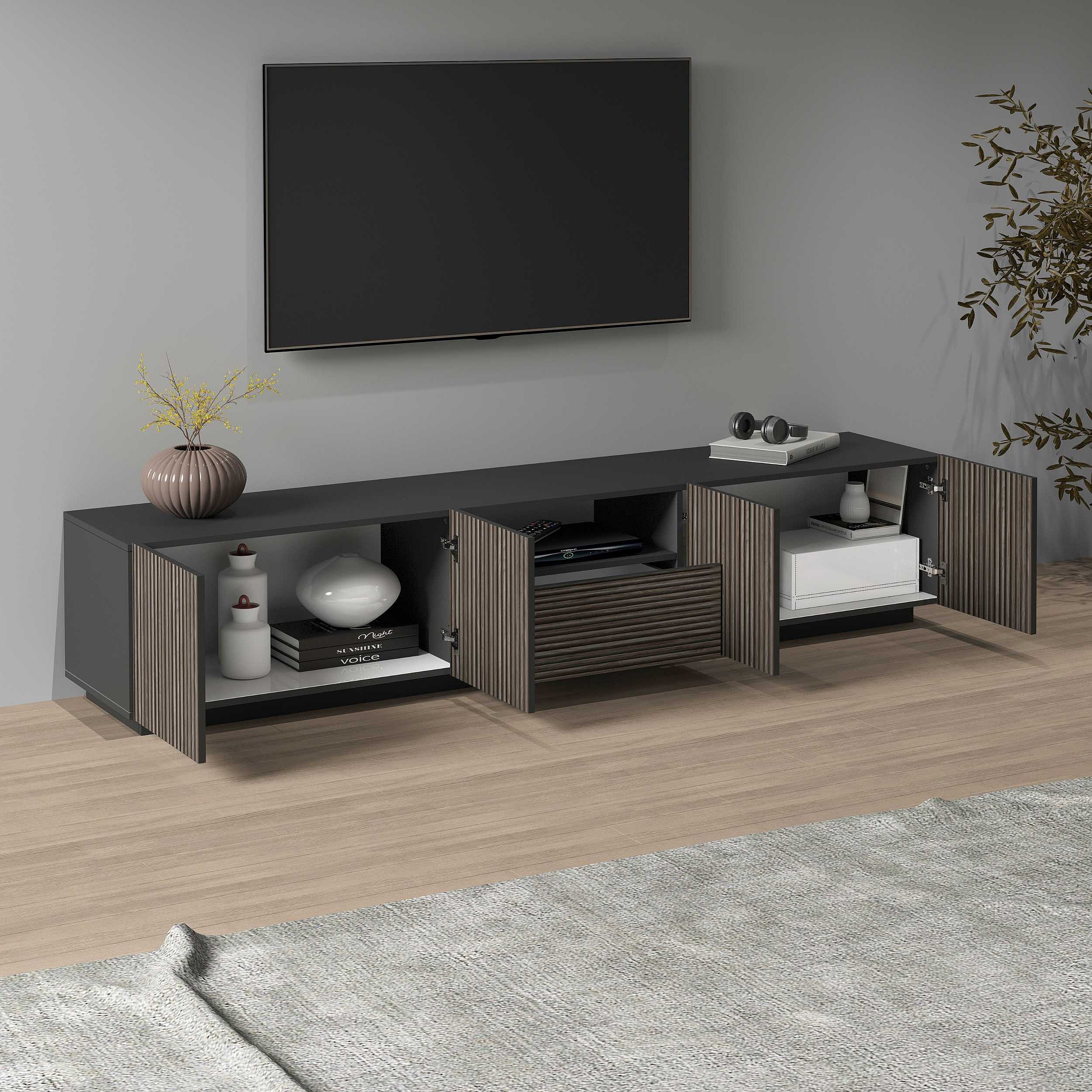 Mobile porta tv Coste a 4 ante 1 cassetto e 1 vano antracite/legno scuro 220,1x43x46 cm
