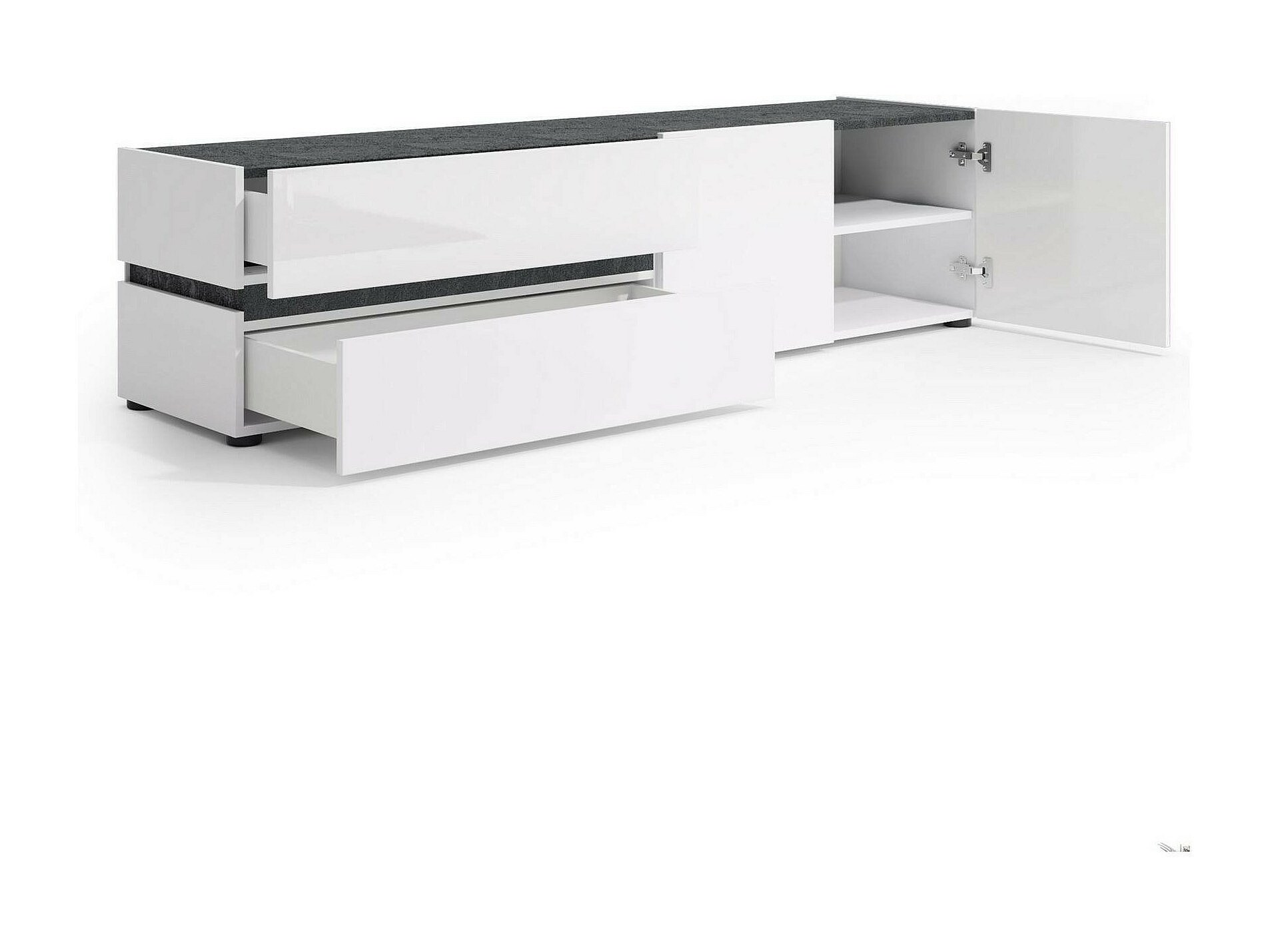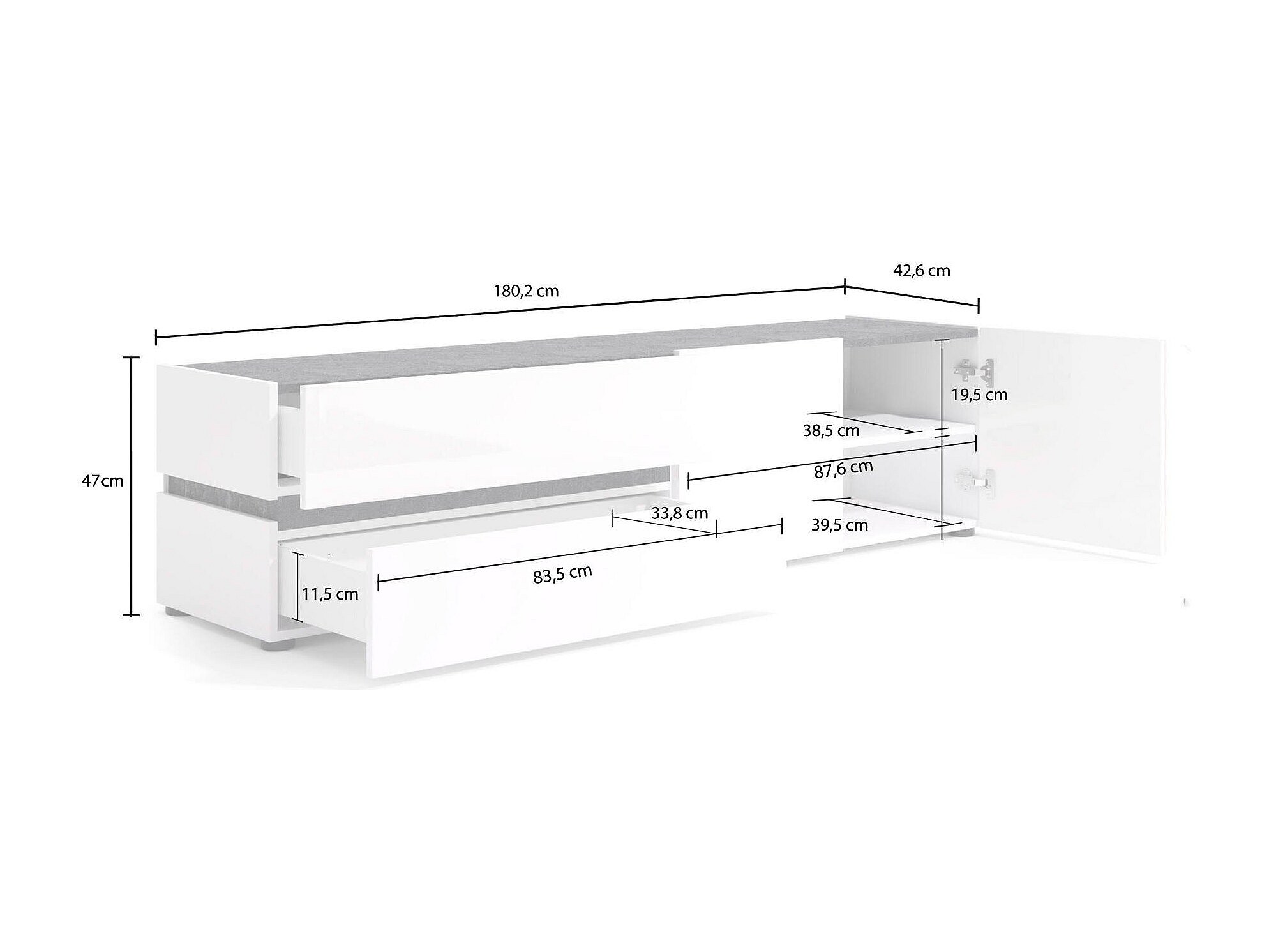 Dmora - Mobile porta TV Basico, 180x47h43 cm, Bianco lucido e Antracite