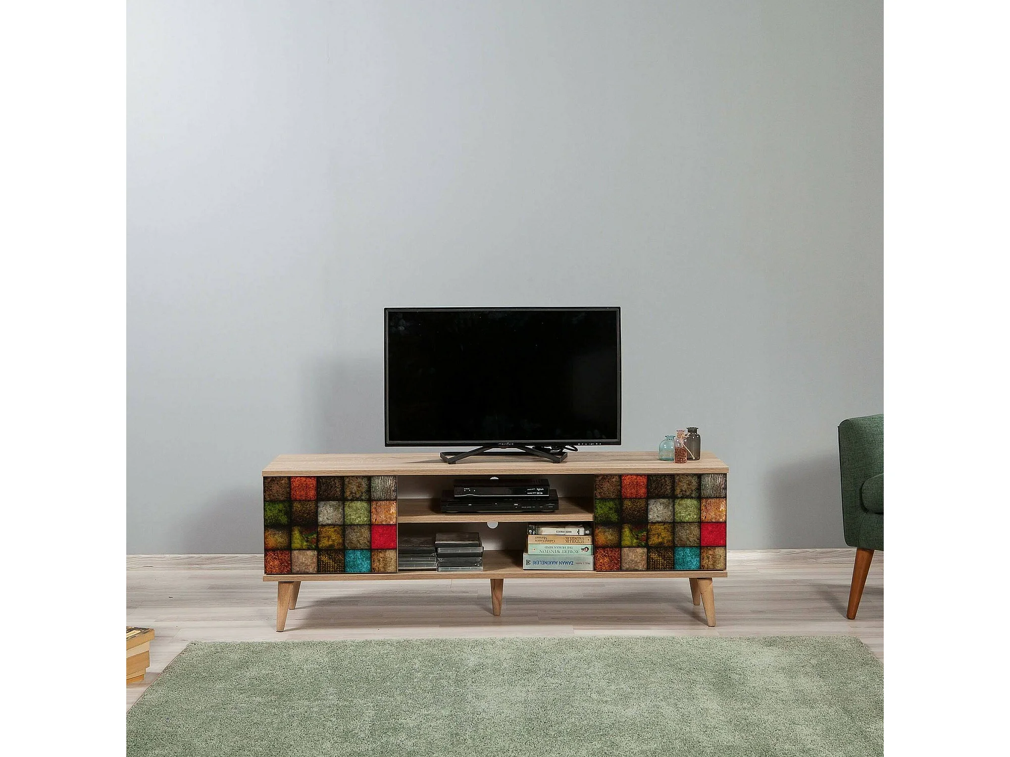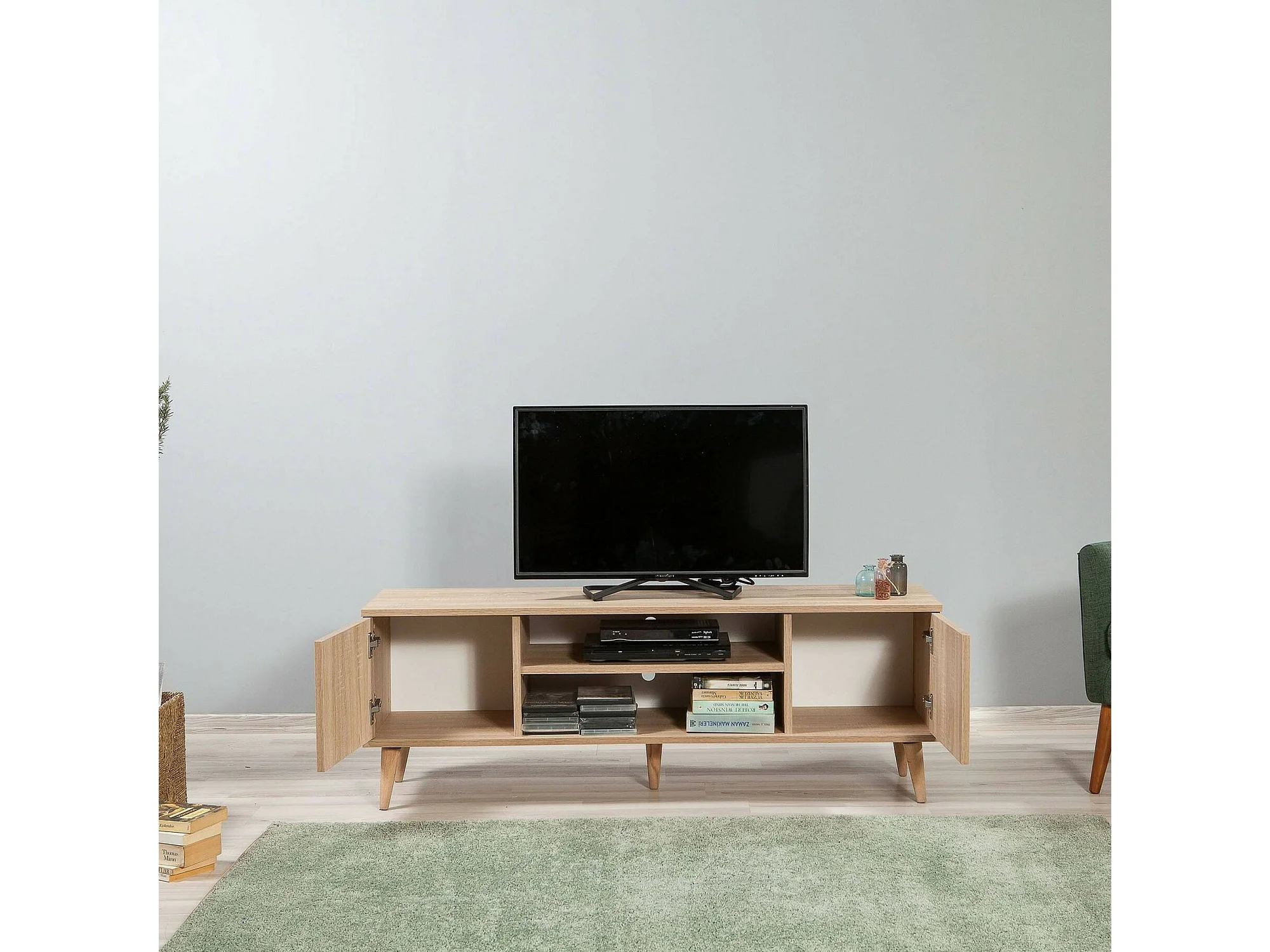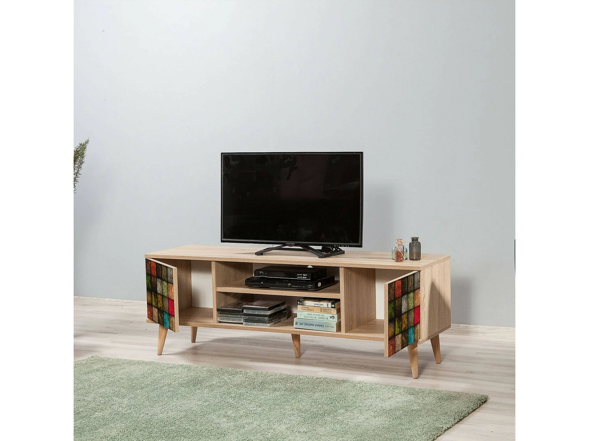 Mobile Porta tv Enrica, un Ripiano, 40x140x50h cm Marrone Quercia