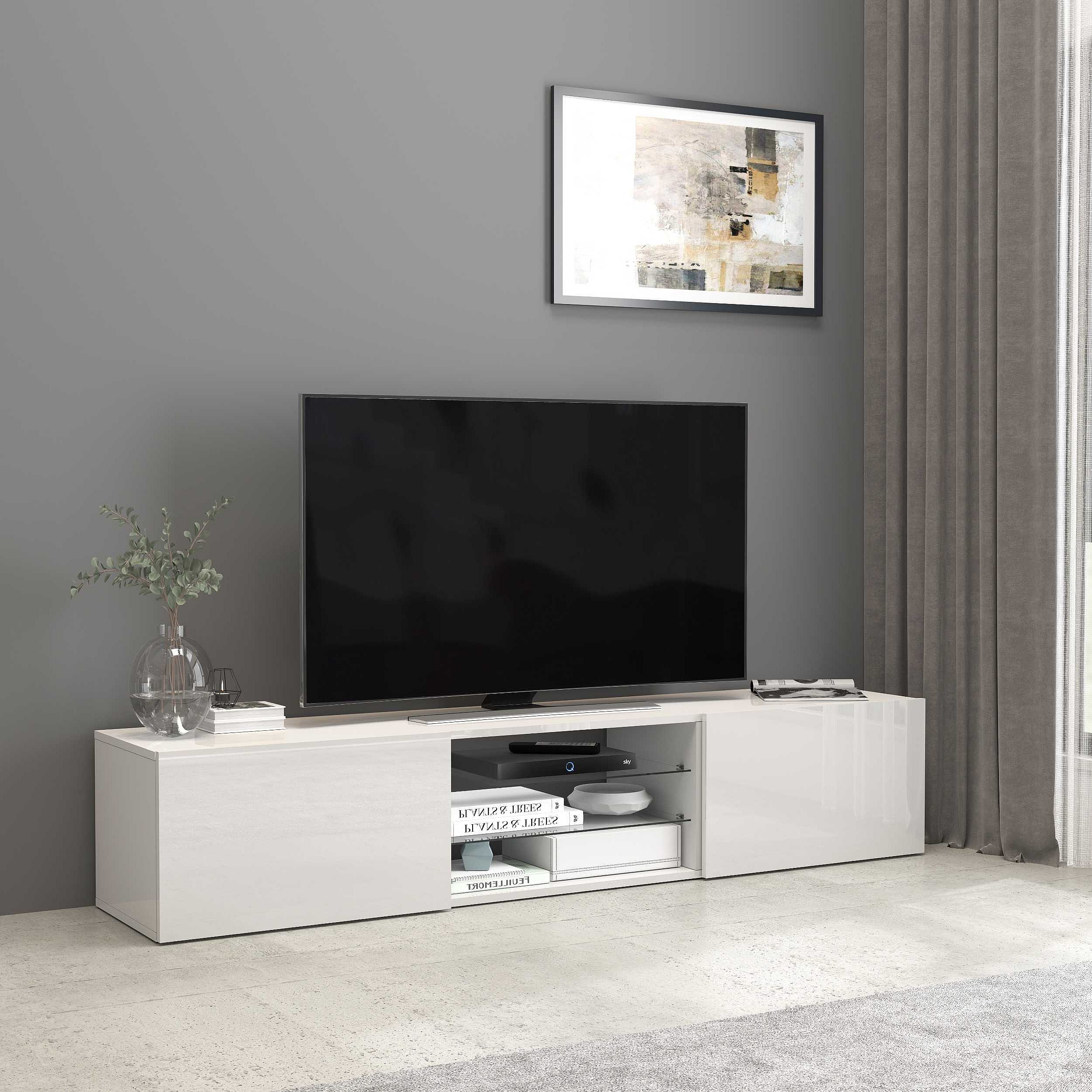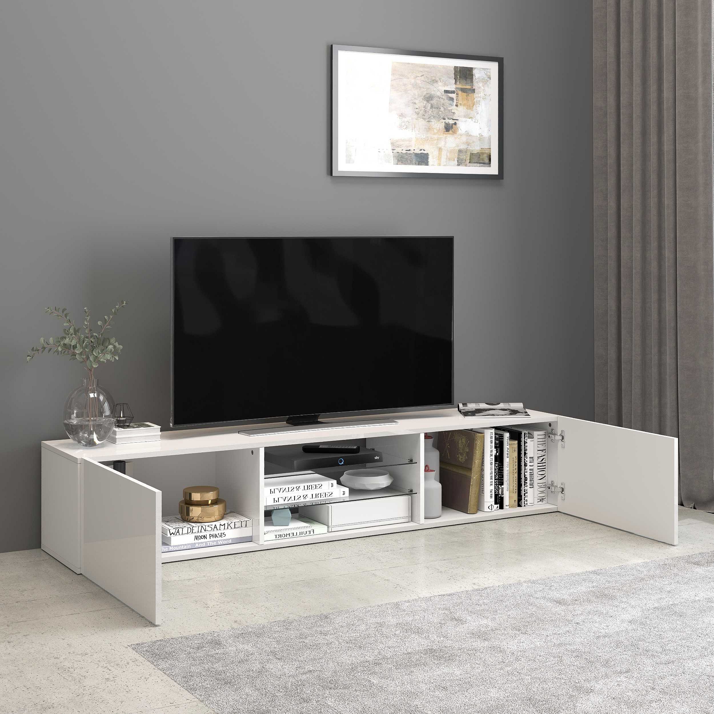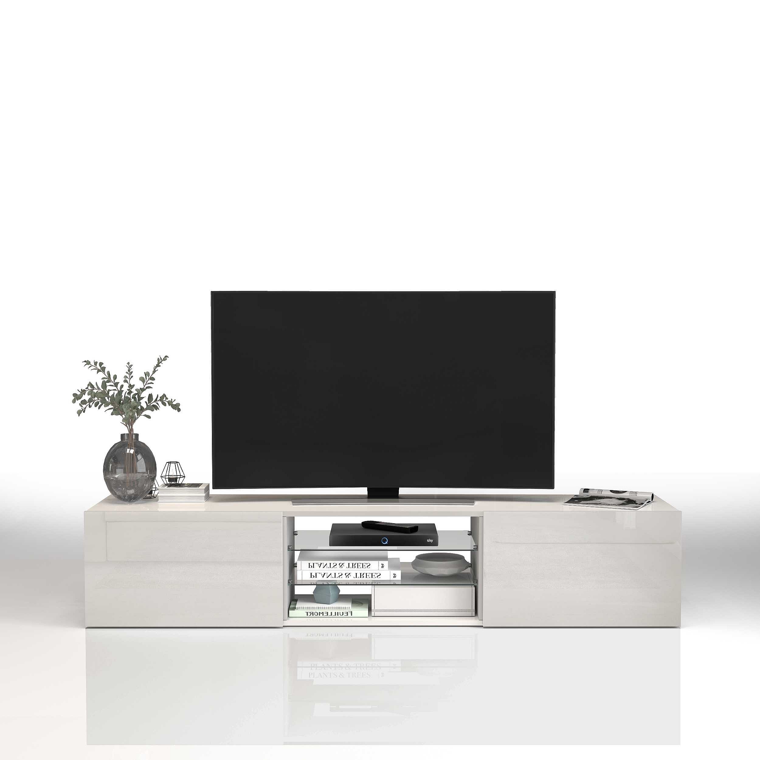 Mobile porta tv Egypt a 2 ante e 2 ripiani in vetro bianco lucido 180x38x35 cm