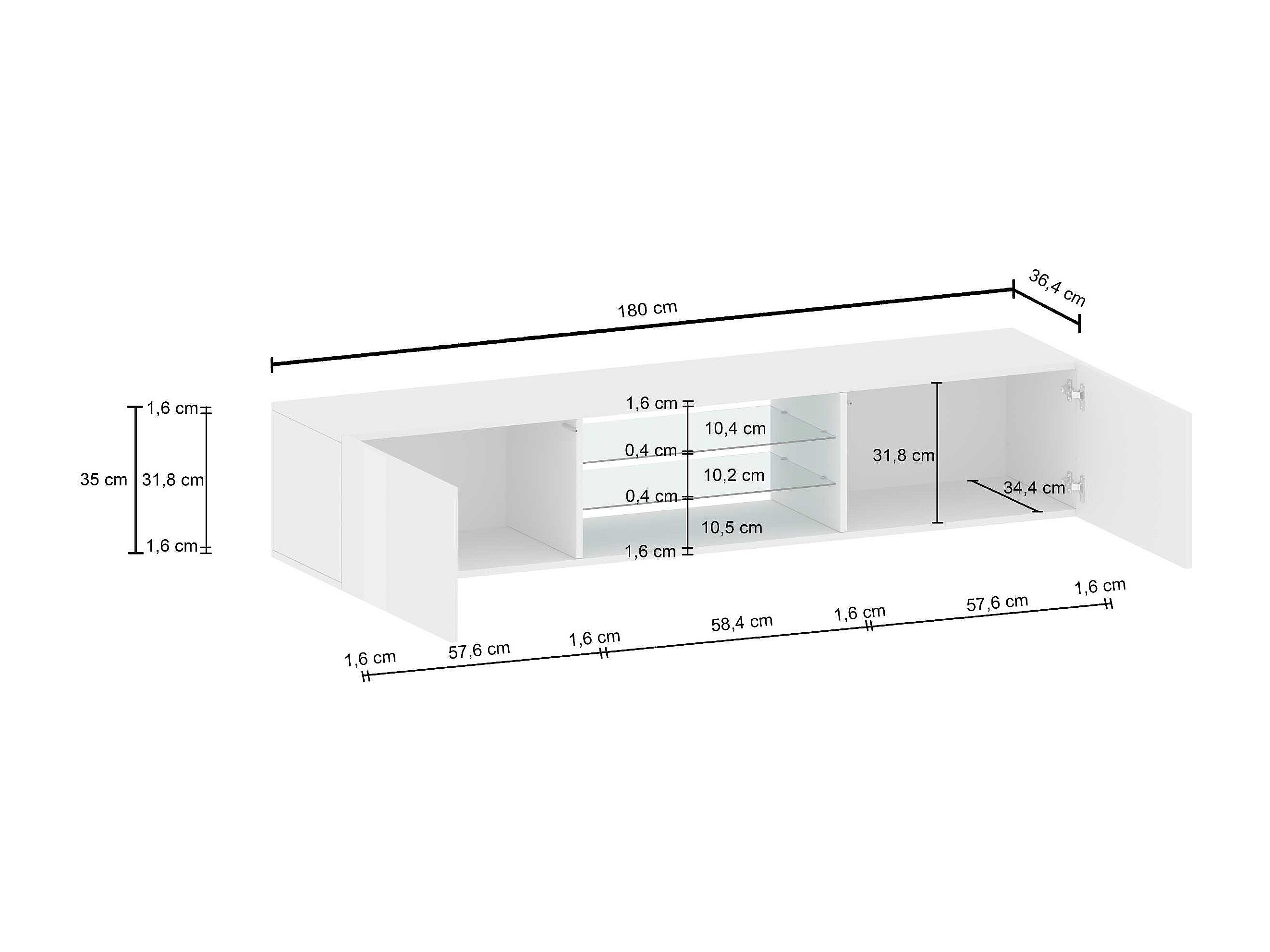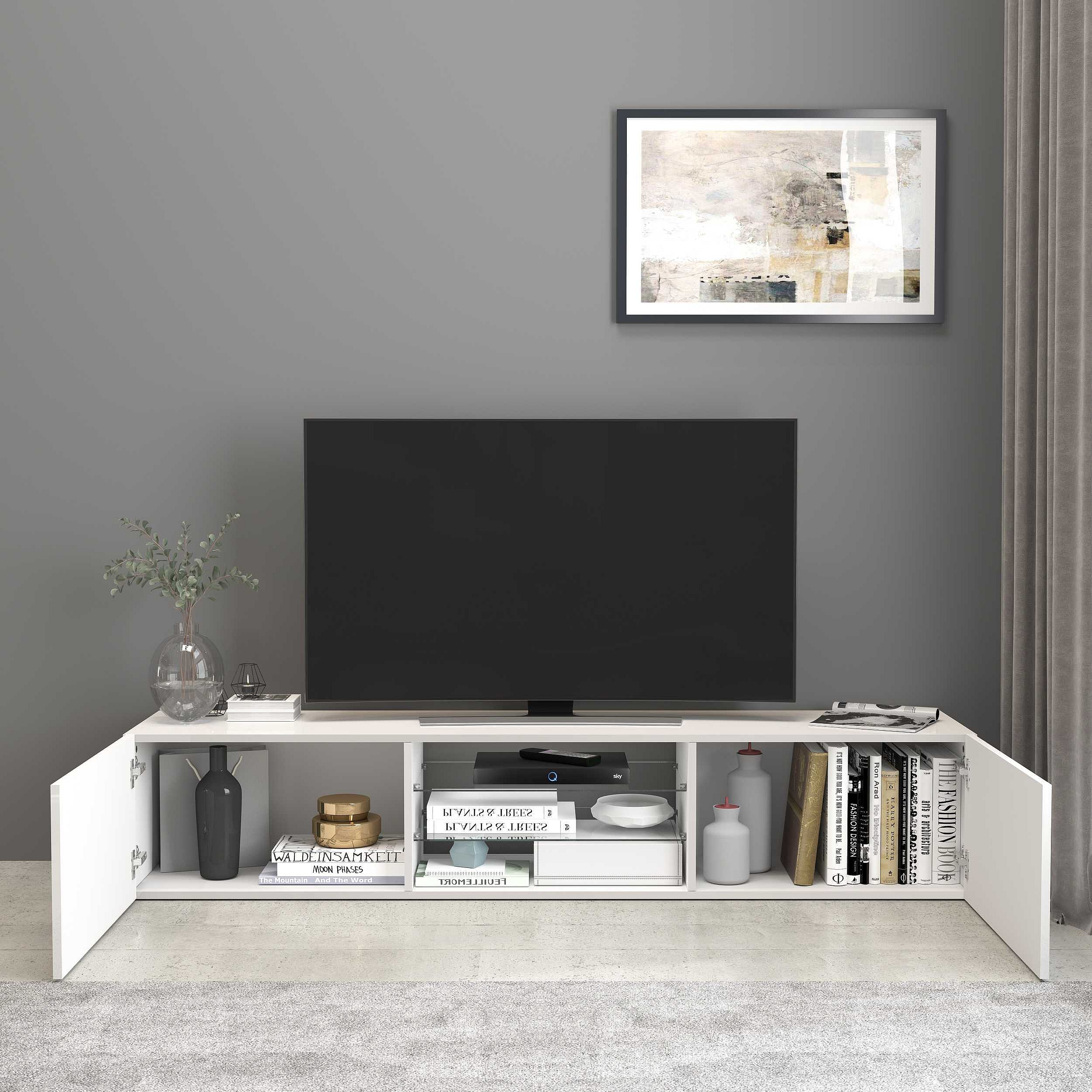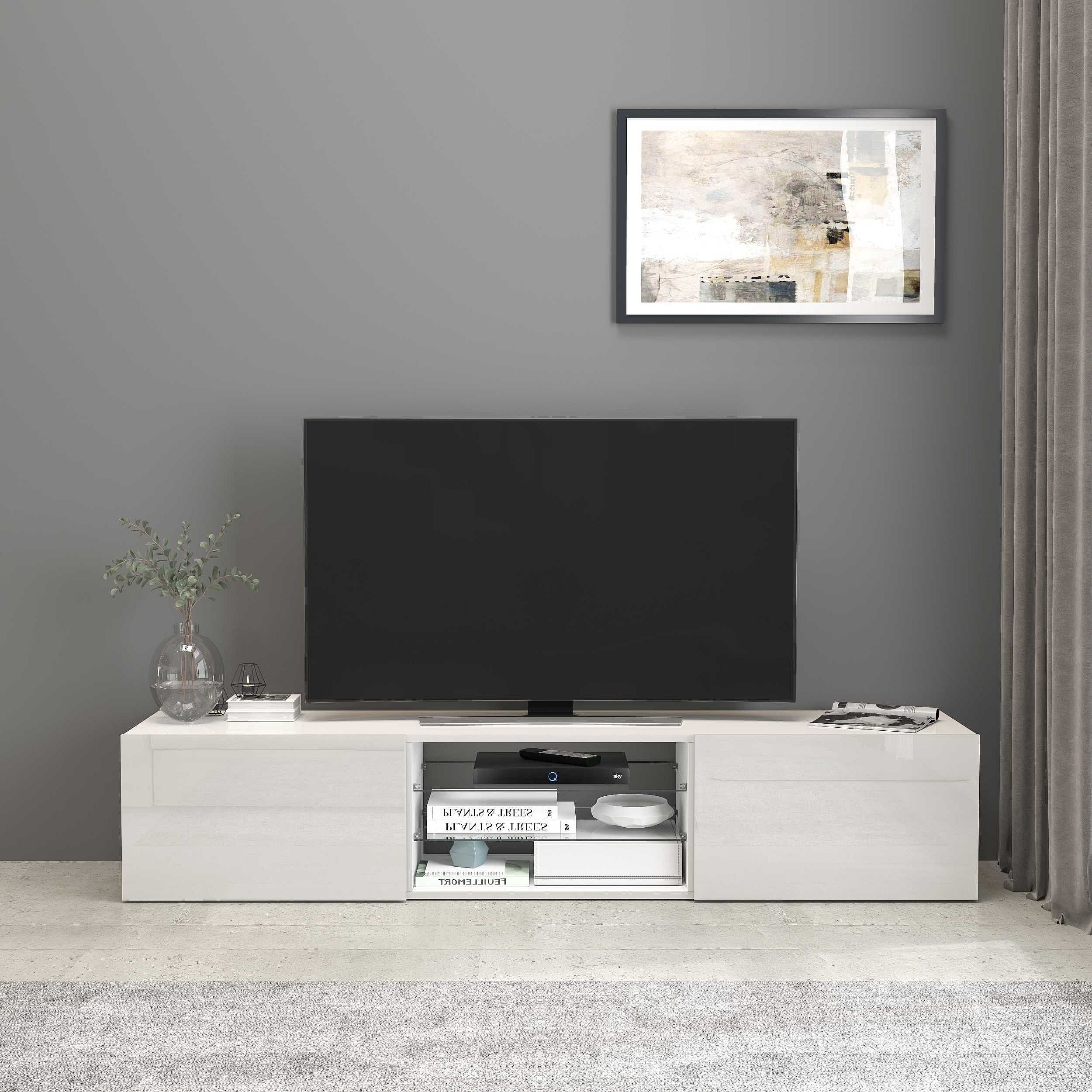 Mobile porta tv Egypt a 2 ante e 2 ripiani in vetro bianco lucido 180x38x35 cm