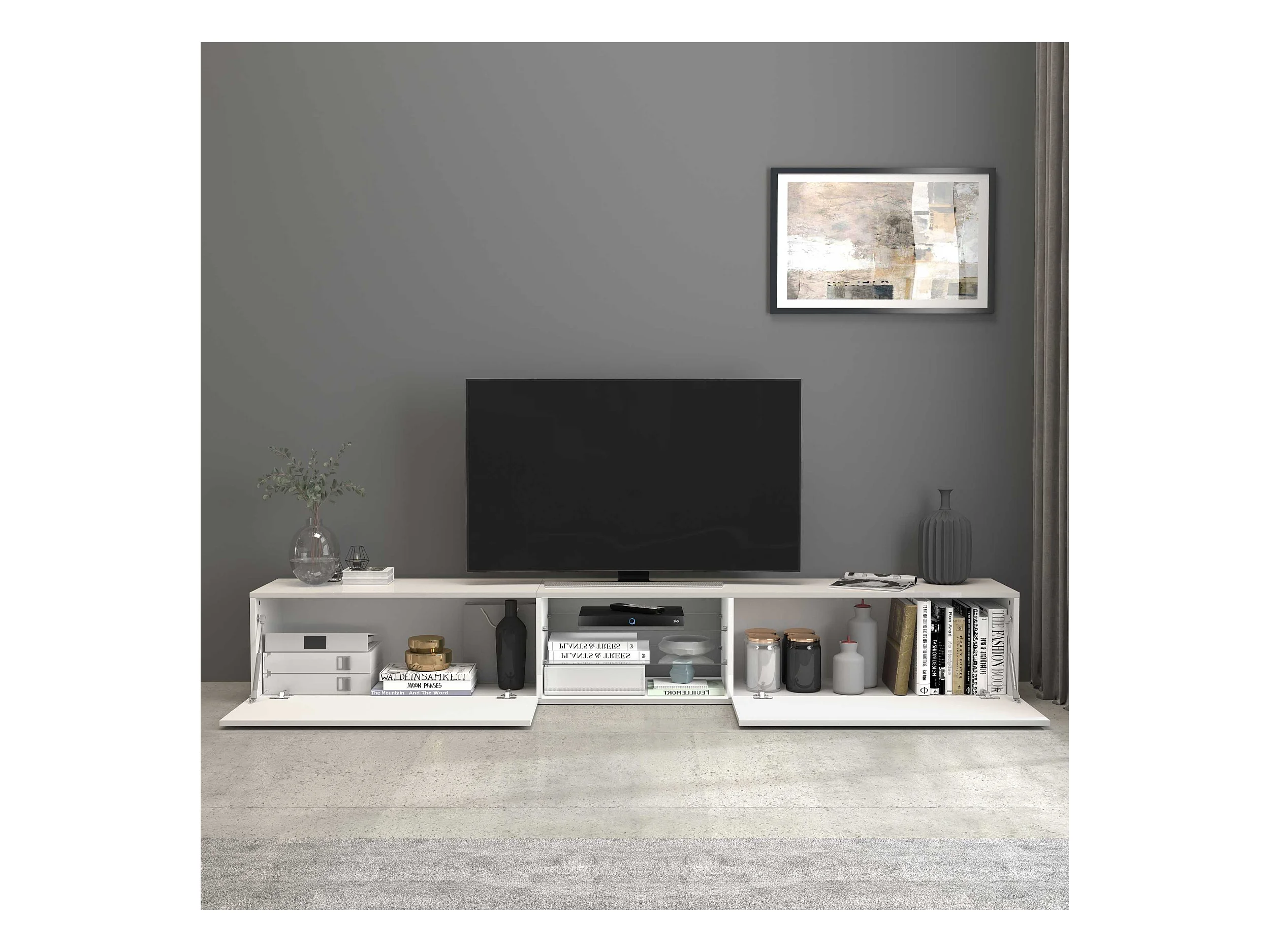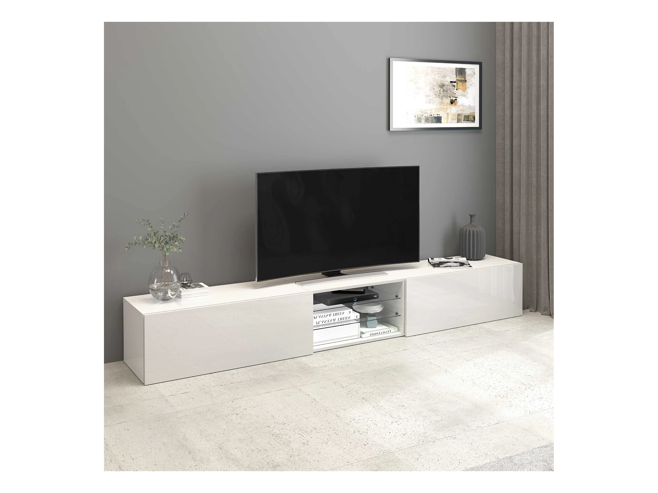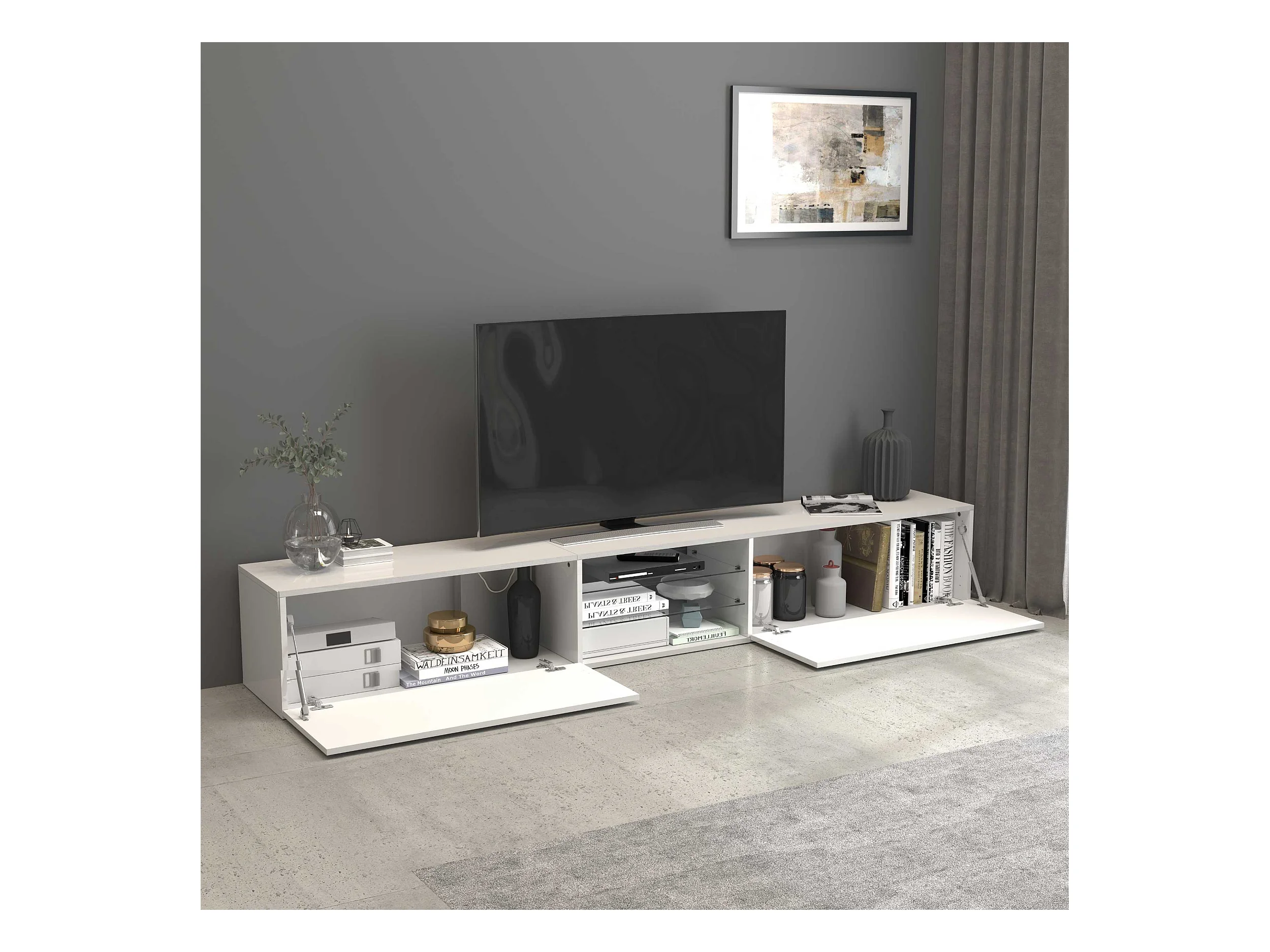 Mobile porta tv Potenza con 4 ante e 2 vani aperti bianco lucido 260x40x36 cm