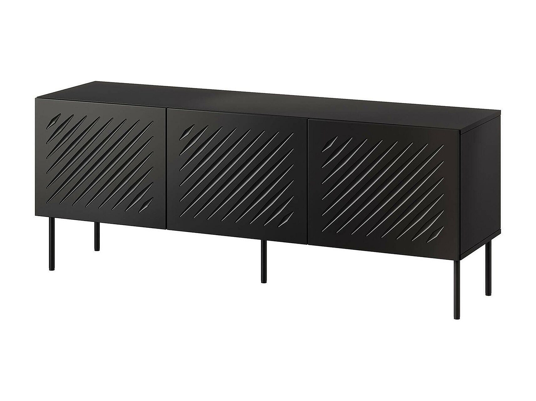 MOBILE PORTA TV - Madia da salotto con tre ante battenti e ripiani interni, Perfetta per contenere oggetti, documenti e libri - Il suo stile minimalista e il design moderno lo rende ideale per arredare qualsiasi ambiente - 151x42 h60 cm, Nero. STRUTTURA E UTILIZZO - Rendi la tua area living elegante e ordinata con questo mobile TV dal design essenziale e contemporaneo - Linee pulite e finitura moderna lo rendono perfetto per ambienti raffinati - Offre ampio spazio per riporre dispositivi multimediali, telecomandi, console o altri accessori, mantenendo l'ambiente sempre in perfetto ordine - Mobile multifunzione ideale per arredare ambienti con esigenze di spazio, salotto, soggiorno, camera, stanza. DIMENSIONI IN CM - Mobile porta TV: Lunghezza: 150,5 Larghezza: 42 Altezza: 60. CARATTERISTICHE TECNICHE - Questo armadio funzionale ha una finitura effetto liscio con linee geometriche, con tre ante battenti e tre vani interni spaziosi - Pratico: Le ante battenti sono dotate di sistema push pull, per facilitare l'apertura del mobile - I piedini alti color nero donano stabilità e consentono una facile pulizia - Solido e robusto: il prodotto viene realizzato interamente in Mdf - Imballaggio resistente, progettato per l'eCommerce. QUALITÀ E DESIGN - Arricchisci la tua casa con questo mobile, perfetto per arredare un ambiente contemporaneo e luminoso - Ideale per chi cerca funzionalità, questo prodotto è perfetto per appartamenti di ogni dimensione - Garanzia di due anni dalla data di acquisto