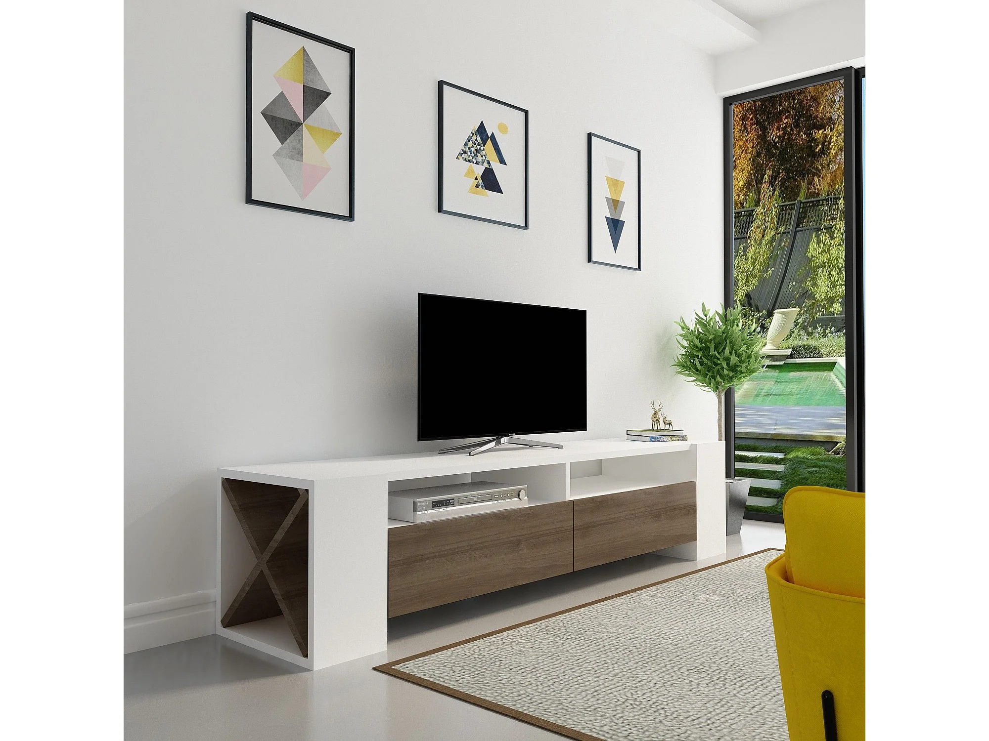 Mobile porta TV Kailua 1240, Noce|Bianco, 155x35x35cm