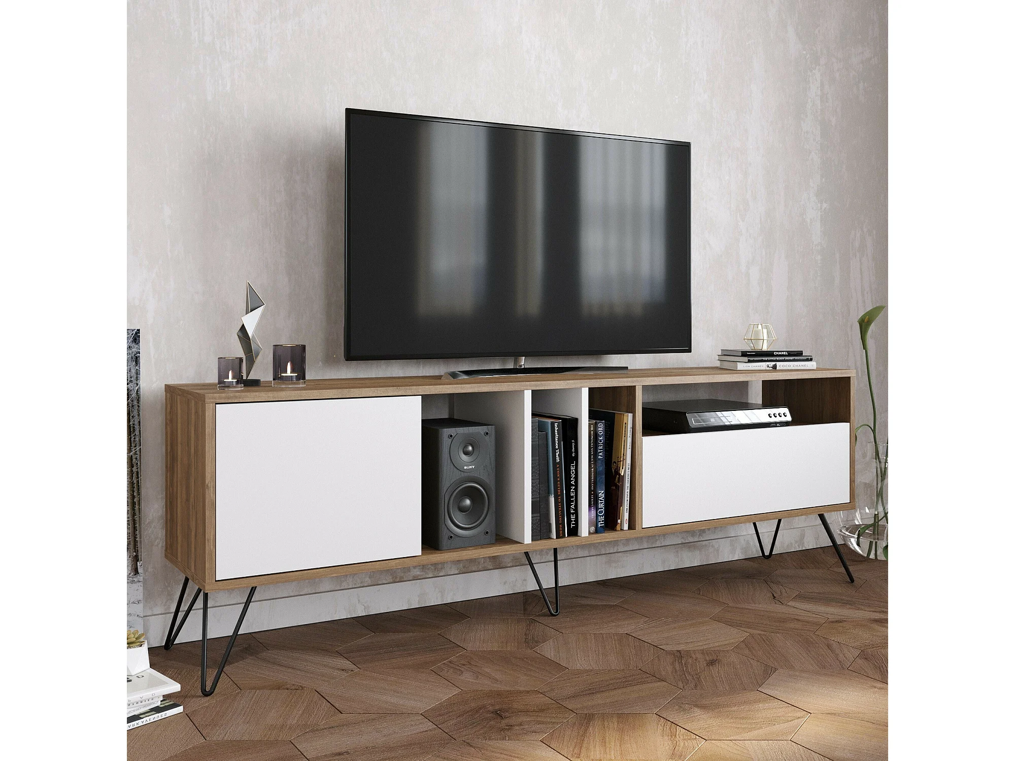 Mobile porta TV Kailua 1275, Noce|Bianco, 140x59x36cm