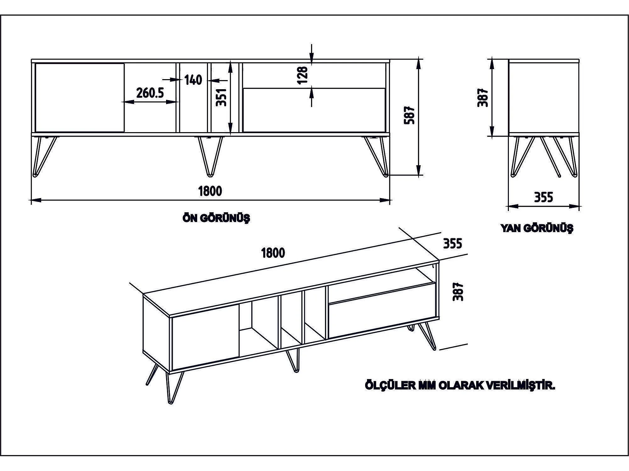 Mobile porta TV – Larghezza 180 cm – Nero – Pannello truciolare rivestito in melaminico