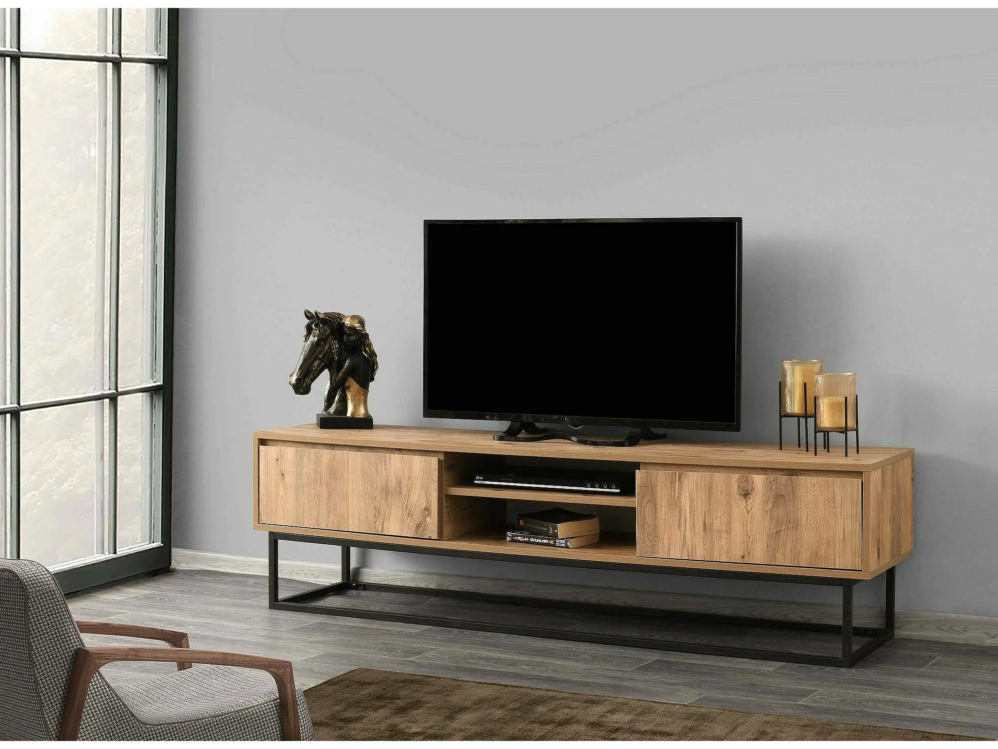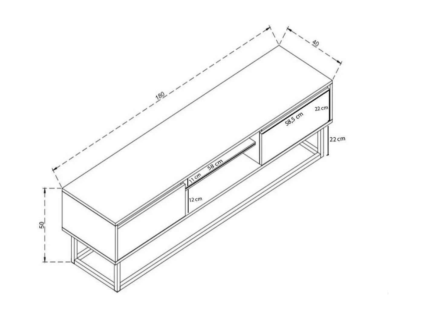 Mobile Porta tv Kira, un Ripiano, 40x180x50h cm Nero