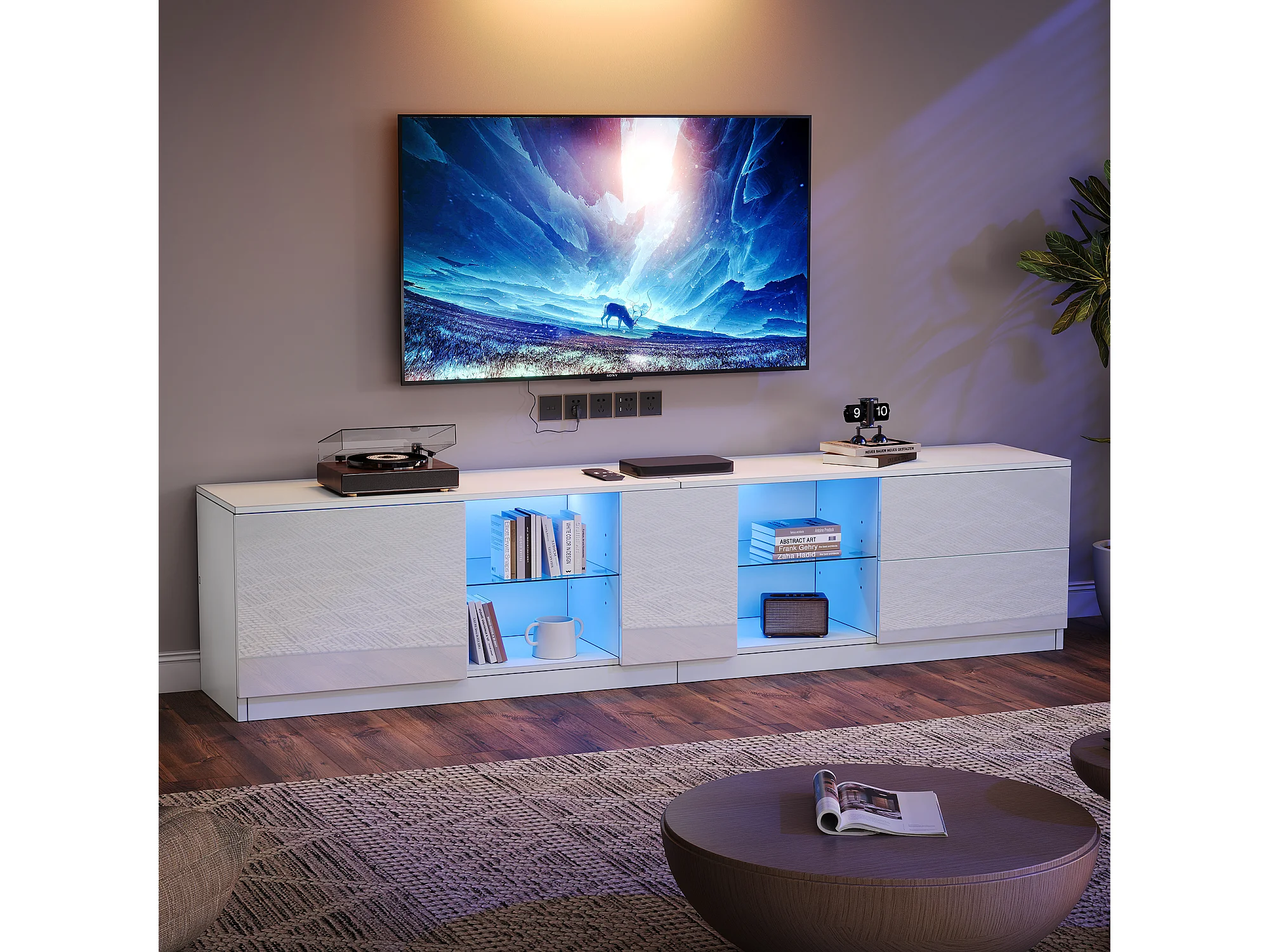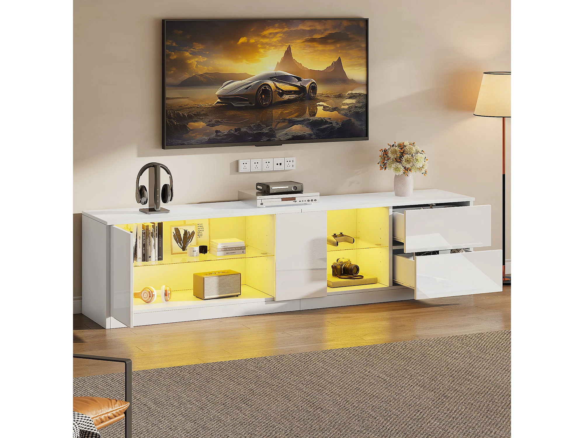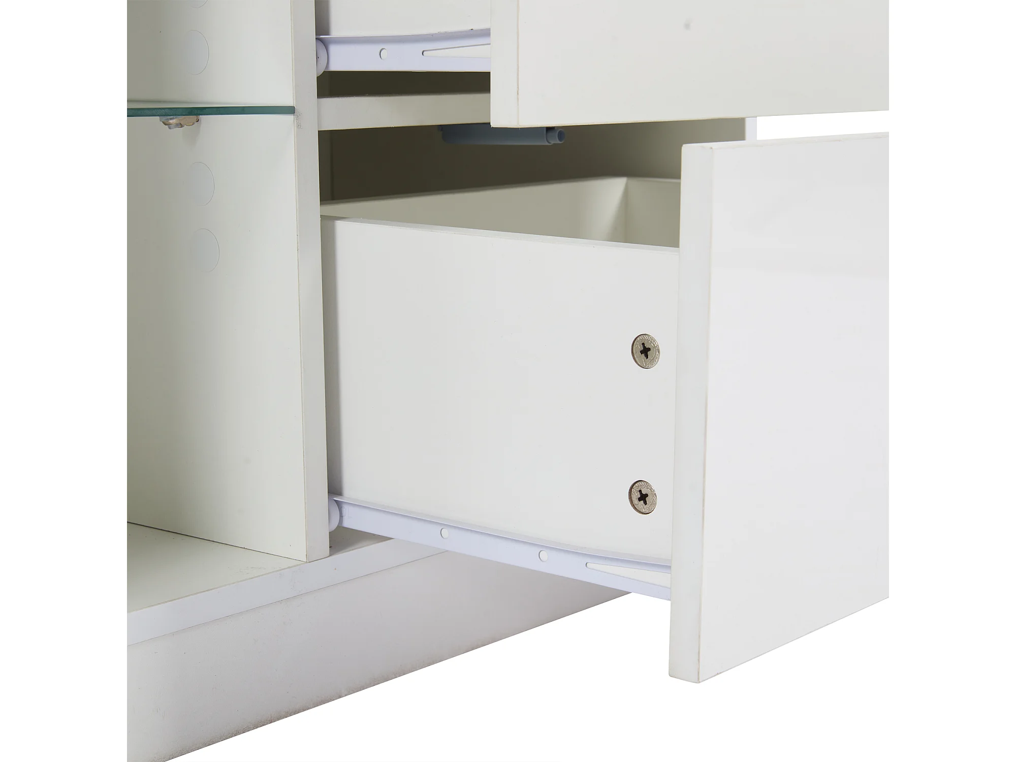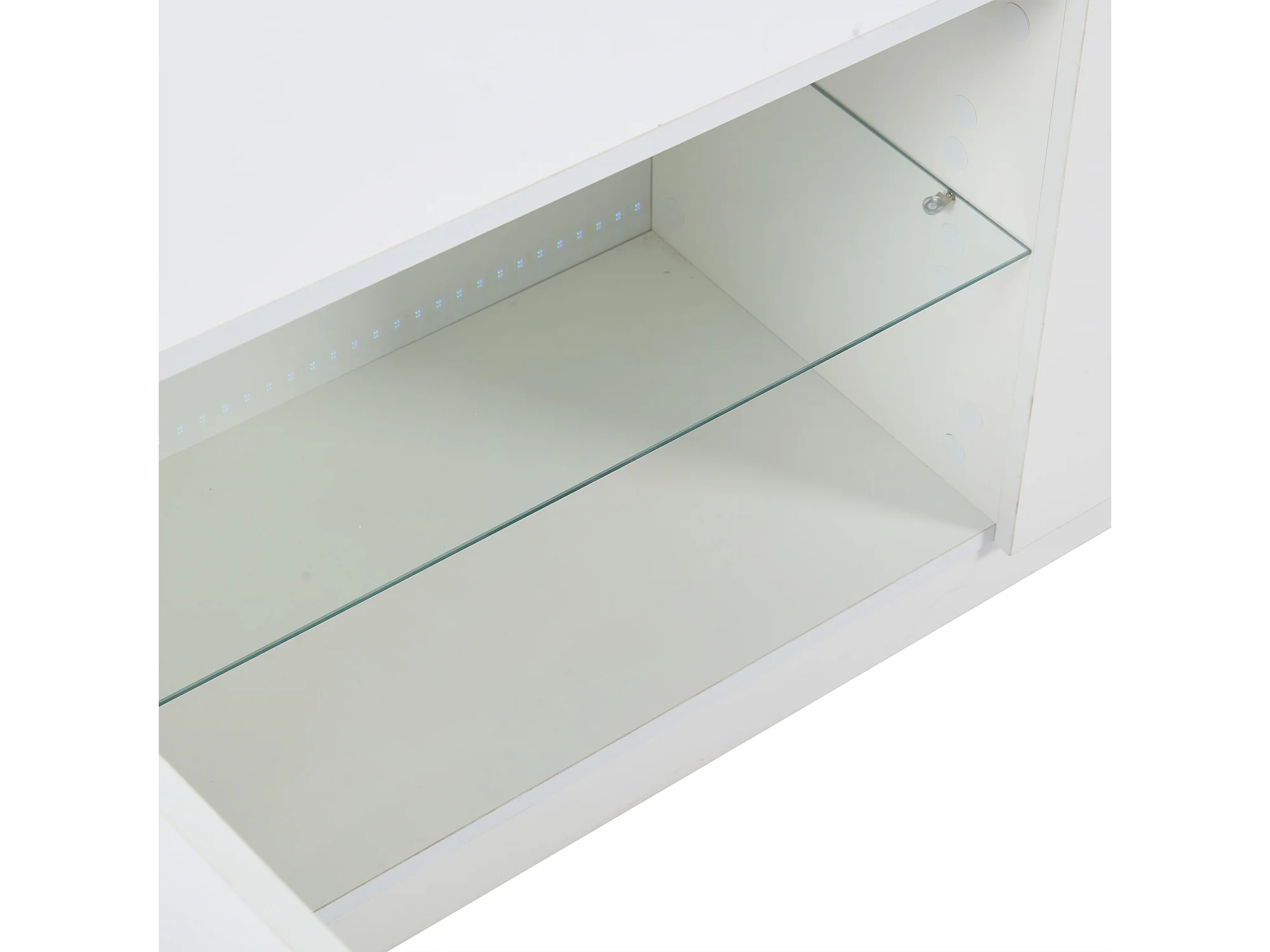 Mobile porta TV LED soggiorno 1 anta 2 cassetti contenitore in legno - ripiani in vetro - bianco (160x40x52 cm)