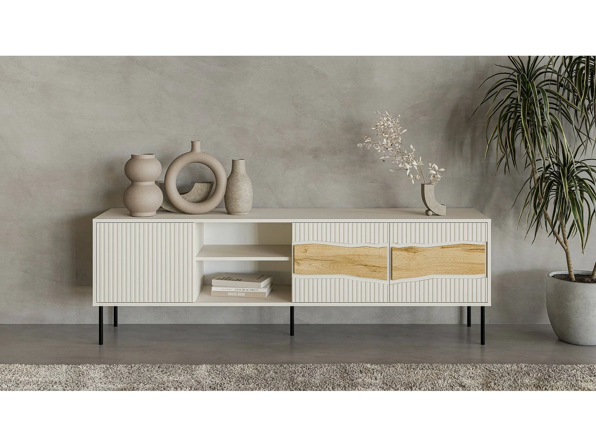 Mobile Porta tv Feira, 2 Ripiani, 40x190x61.5h cm Beige